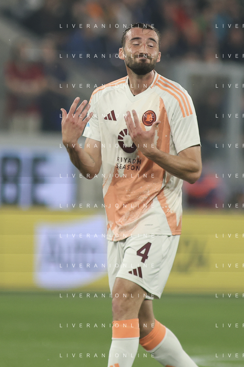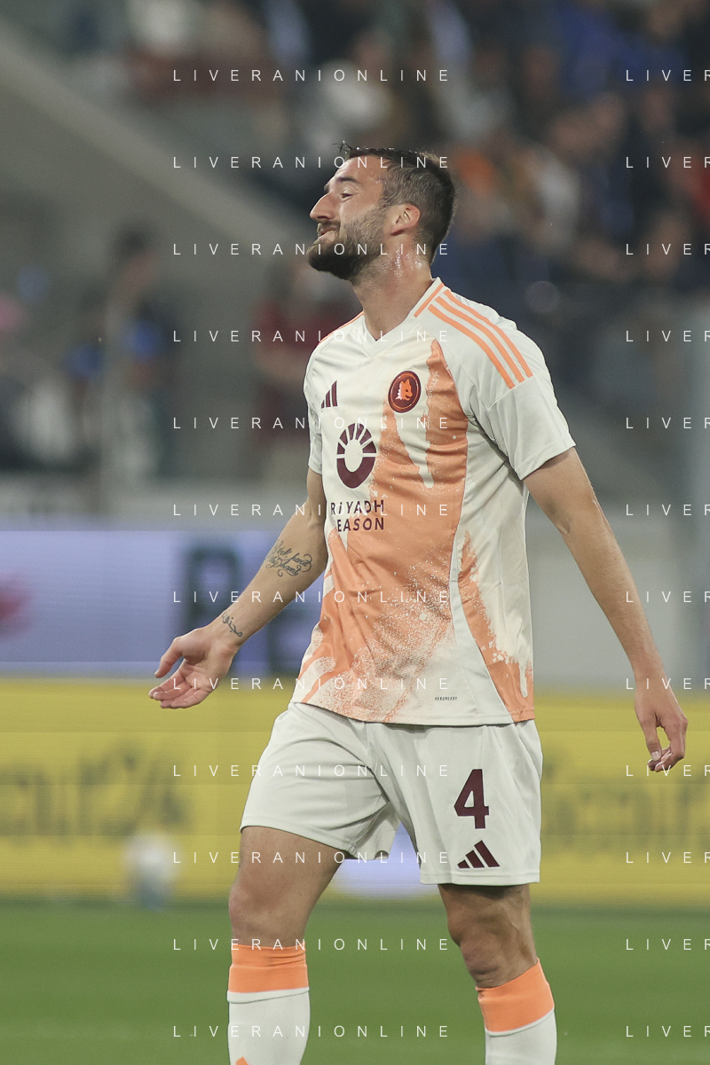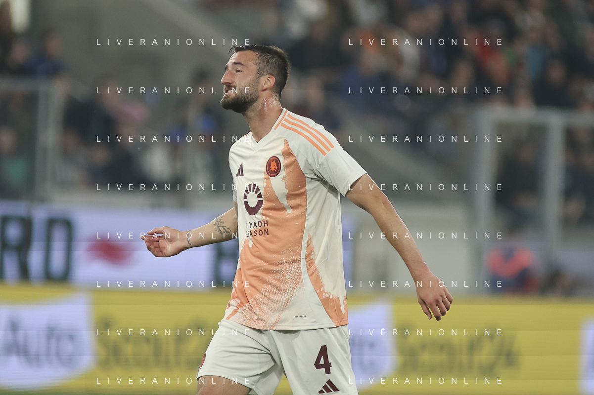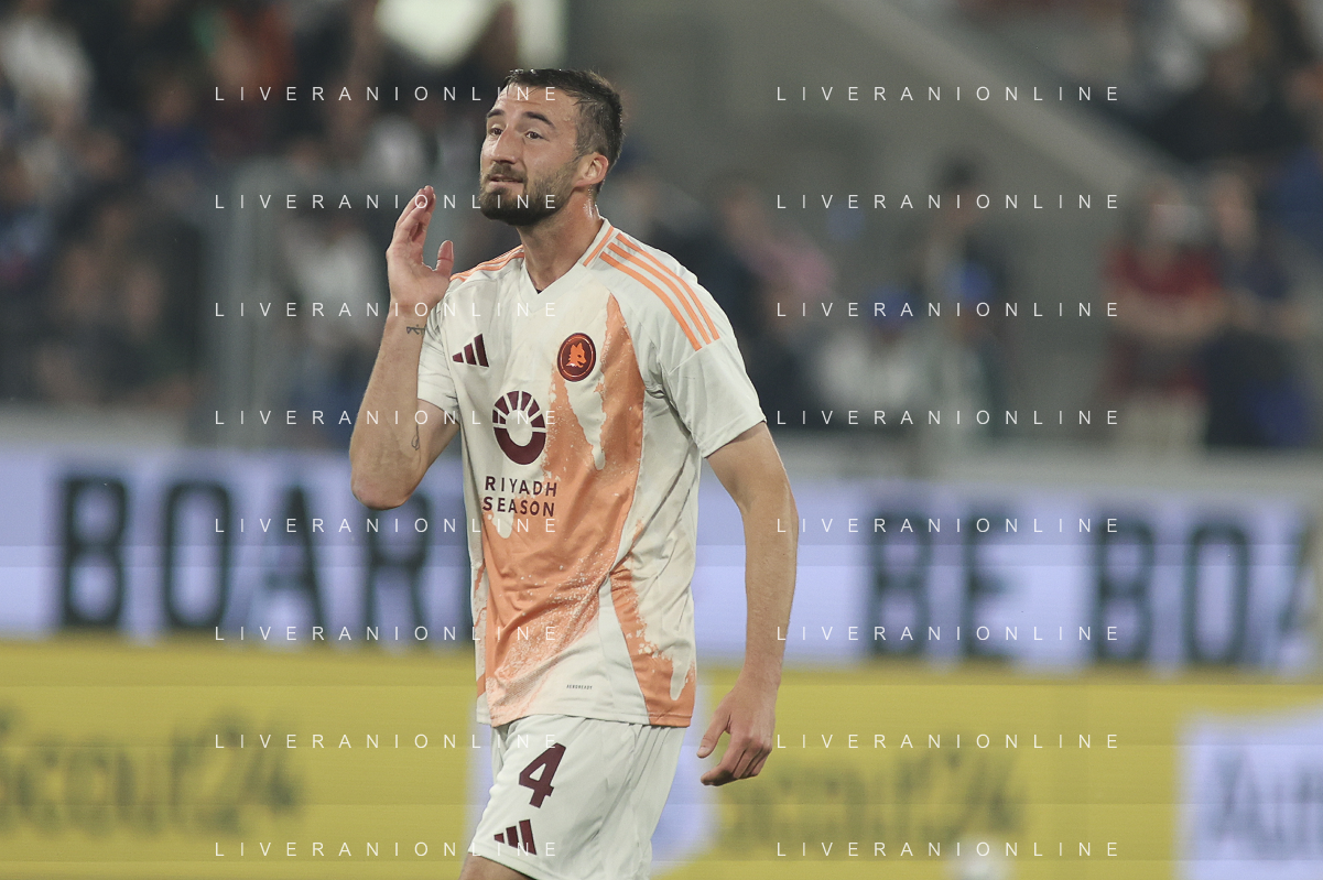 Bryan Cristante of AS Roma play the ball during Atalanta BC vs AS Roma, 36° Serie A Enilive 2024-25 game at Gewiss stadium in Bergamo (BG), Italy, on May 12, 2025. (Photo by Davide Casentini)- AGENZIA ALDO LIVERANI SAS