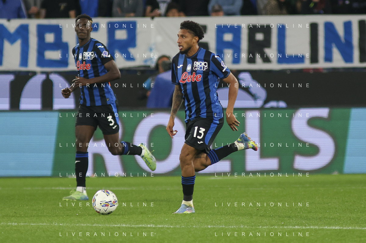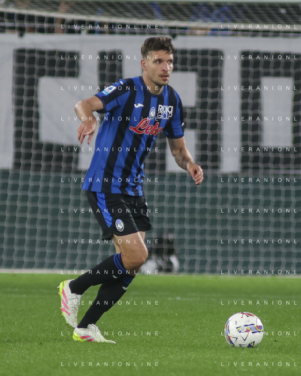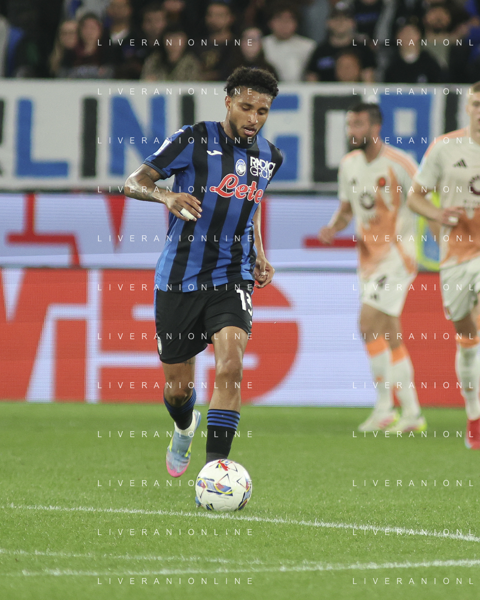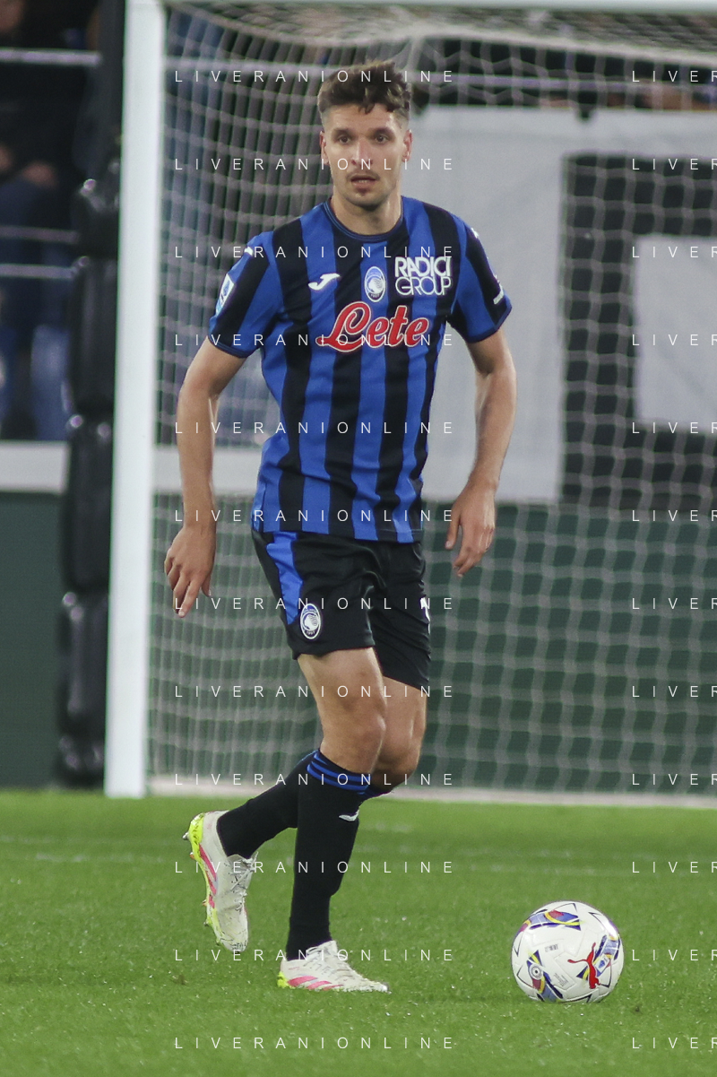 Berat Djimsiti of Atalanta BC play the ball during Atalanta BC vs AS Roma, 36° Serie A Enilive 2024-25 game at Gewiss stadium in Bergamo (BG), Italy, on May 12, 2025. (Photo by Davide Casentini)- AGENZIA ALDO LIVERANI SAS