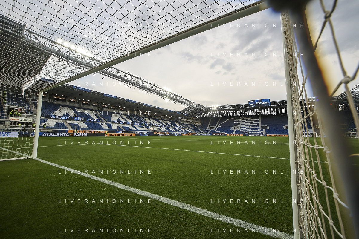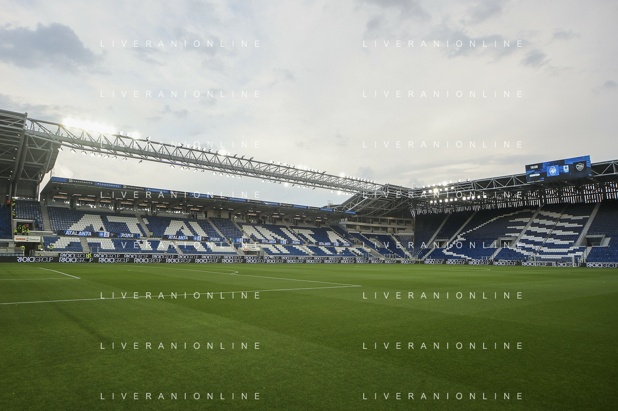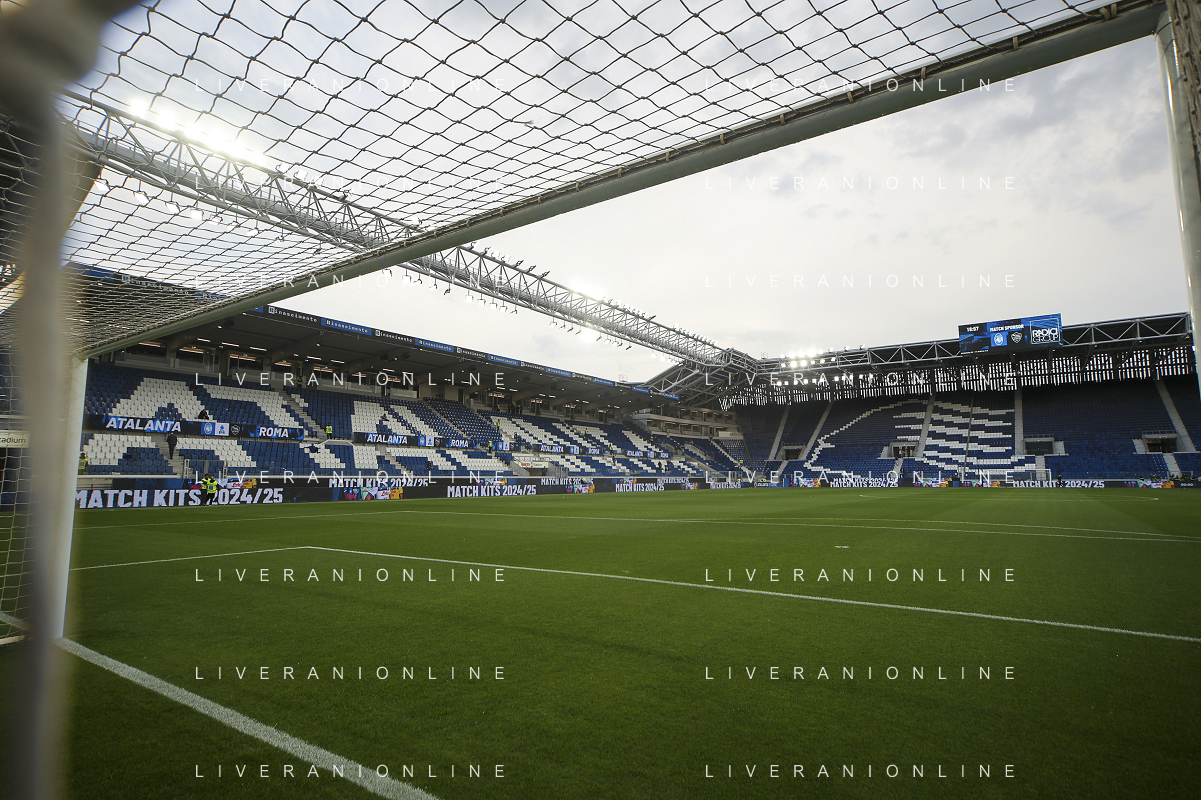 Veduta interno stadio spalti - pich view before Atalanta BC vs AS Roma, 36° Serie A Enilive 2024-25 game at Gewiss stadium in Bergamo (BG), Italy, on May 12, 2025. (Photo by Davide Casentini)- AGENZIA ALDO LIVERANI SAS