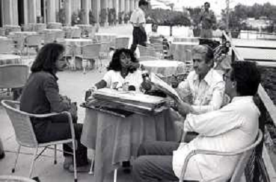NEG-RETROSPETTIVA MAURIZIO NICHETTI ATTORE NELLA FOTO MAURIZIO NICHETTI CON ZEUDY ARAYA E FRANCO CRISTALDI A VENEZIA NELL'ANNO 1979 AG ALDO LIVERANI SAS