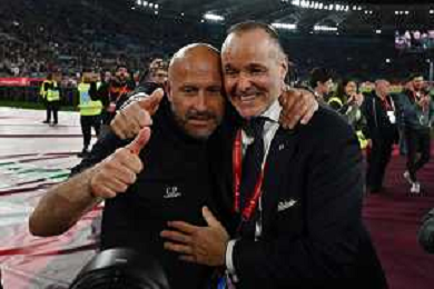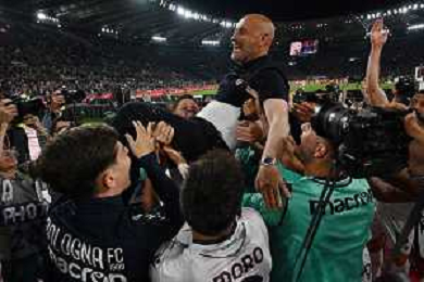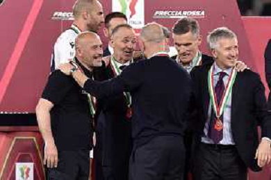 Milan vs Bologna Coppa Italia Frecciarossa - Finale Stadio Olimpico - Roma 14-05-2025 nella foto vincenzo Italiano con la dirigenza del Bologna ©FEDERICO GAETANO - AGENZIA ALDO LIVERANI SAS