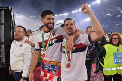 Milan vs Bologna Coppa Italia Frecciarossa - Finale Stadio Olimpico - Roma 14-05-2025 nella foto Cesare Cremonini e Orsolini ©FEDERICO GAETANO - AGENZIA ALDO LIVERANI SAS