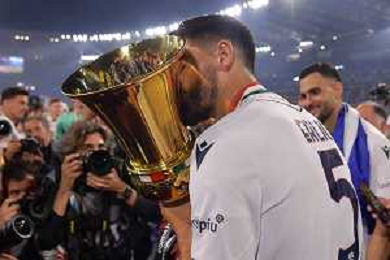 Milan vs Bologna Coppa Italia Frecciarossa - Finale Stadio Olimpico - Roma 14-05-2025 nella foto Erlic bacia la coppa ©FEDERICO GAETANO - AGENZIA ALDO LIVERANI SAS