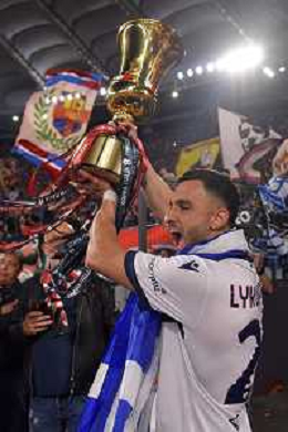 Milan vs Bologna Coppa Italia Frecciarossa - Finale Stadio Olimpico - Roma 14-05-2025 nella foto Lykoggianis con la coppa ©FEDERICO GAETANO - AGENZIA ALDO LIVERANI SAS