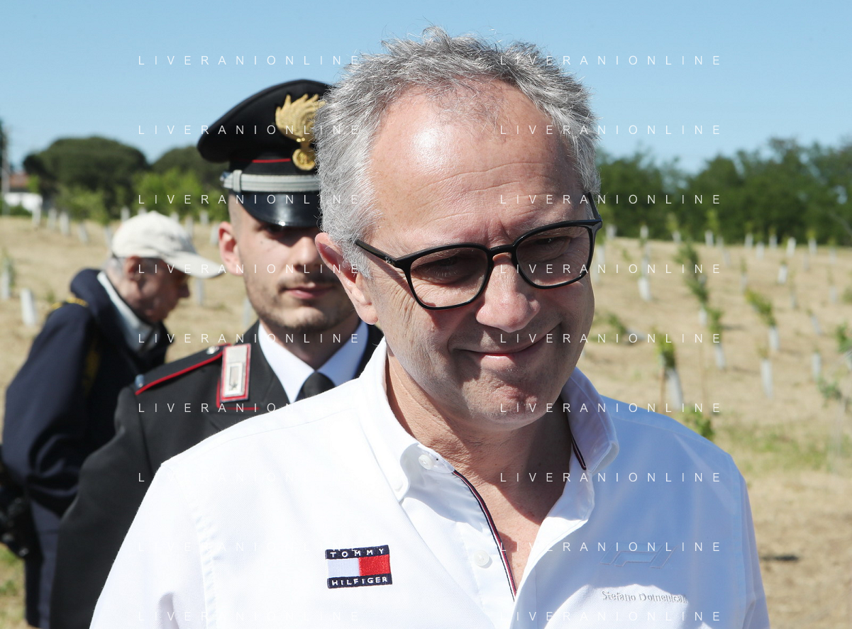 IMOLA 16 05 2025 BOSCO DELL'AUTODROMO PIANTUMAZIONE ALBERI OGNI PILOTA UN ALBERO PRESENTI STEFANO DOMAENICALI SINDACO DI IMOLA MARCO PANIERI GENEREALE TULLIO DEL SETTE COMMISARIO STRAORDINARIO ACI,GIANCARLO MINARDI PRESIDENTE AUTODROMO DI IMOLA NELLA FOTO STEFANO DOMENICALI PRESIDENTE FORMULA 1 FOTO GIANNI SANNA-AG ALDO LIVERANI SAS