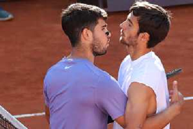 Internazionali d’Italia 2025 16 Maggio 2025 Nella foto: Lorenzo Musetti e Carlos Alcaraz ©ROSITO ANDREA - AGENZIA ALDO LIVERANI SAS