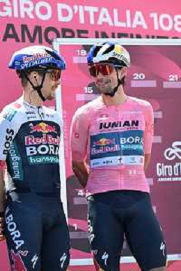 17-05-2025 Giro D'italia; Tappa 08 Giulianova - Castelraimondo; 2025, Red Bull - Bora Hansgrohe; Roglic, Primoz; Denz, Nico; Giulianova; ©SIROTTI - AGENZIA ALDO LIVERANI SAS