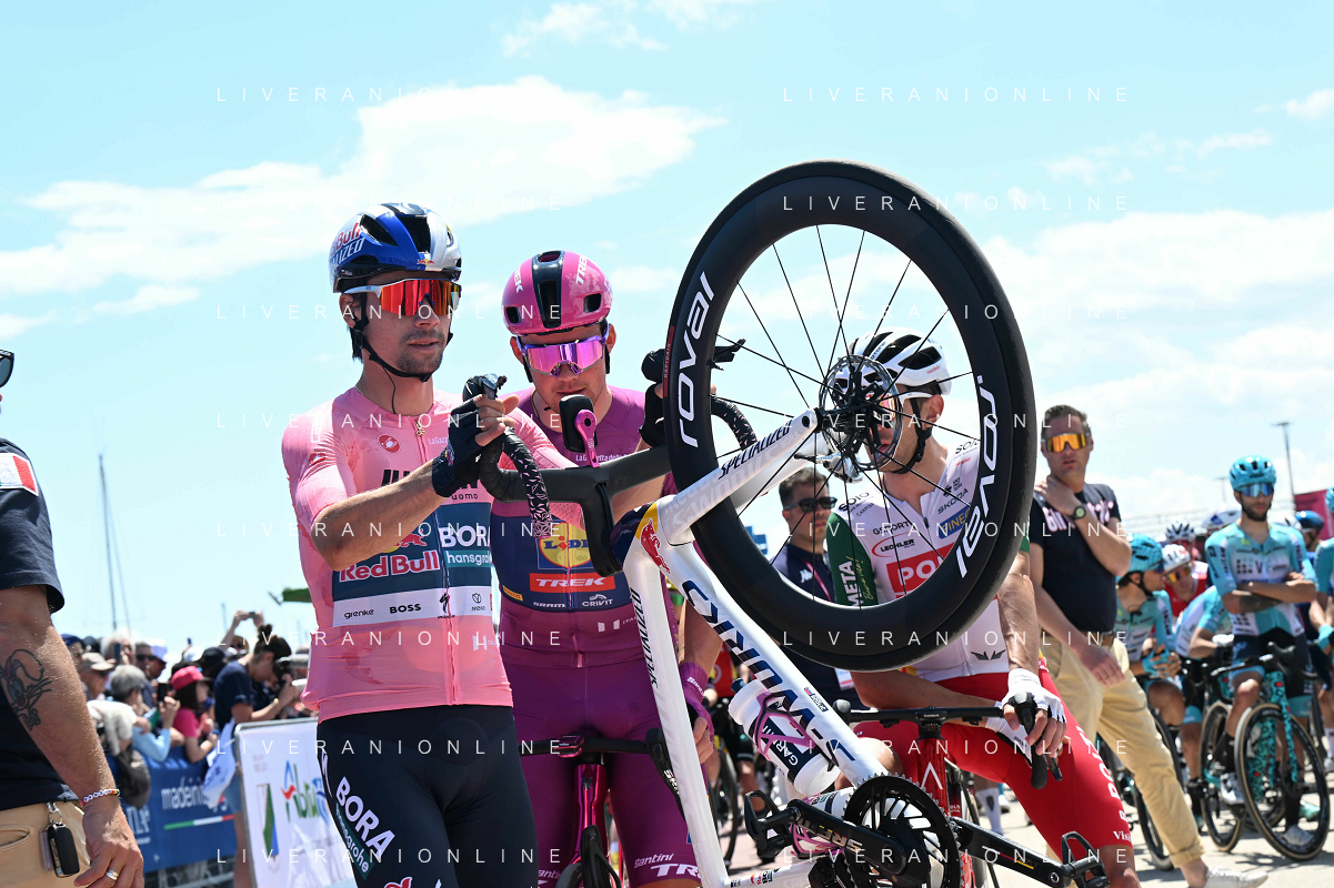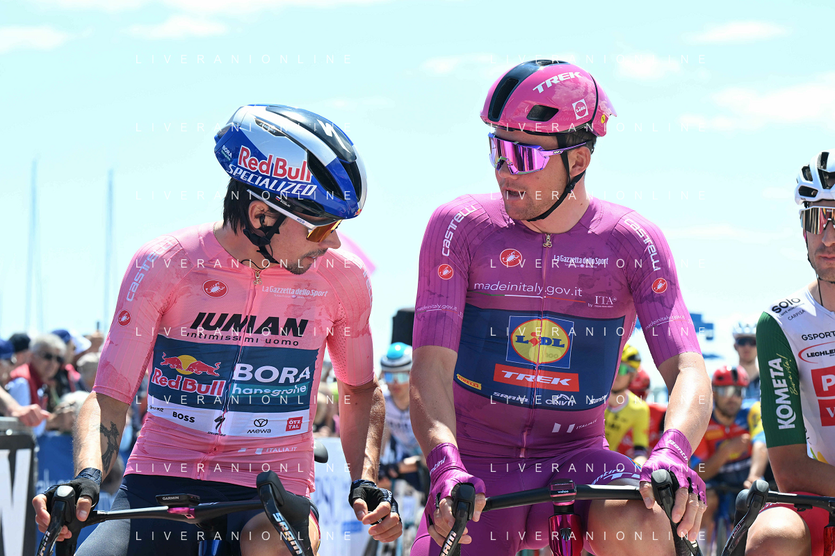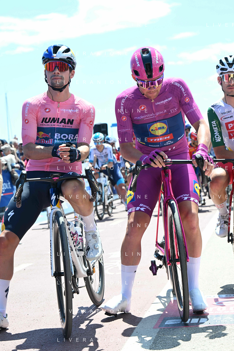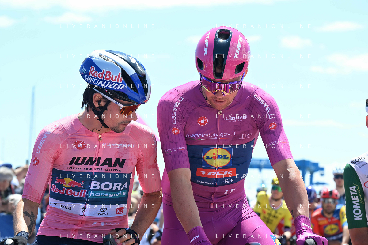 17-05-2025 Giro D'italia; Tappa 08 Giulianova - Castelraimondo; 2025, Red Bull - Bora Hansgrohe; 2025, Lidl - Trek; Roglic, Primoz; Pedersen, Mads; Giulianova; ©SIROTTI - AGENZIA ALDO LIVERANI SAS