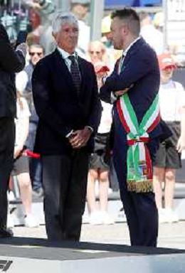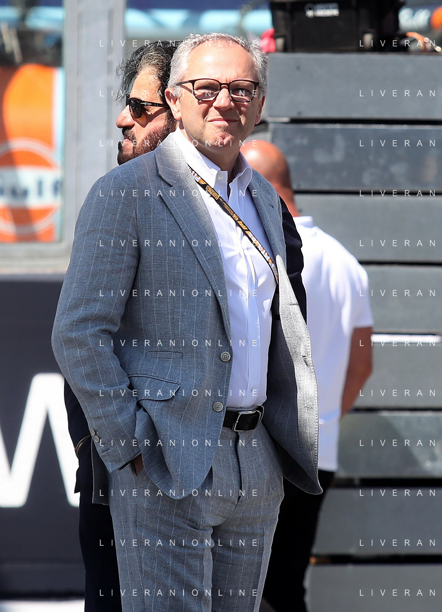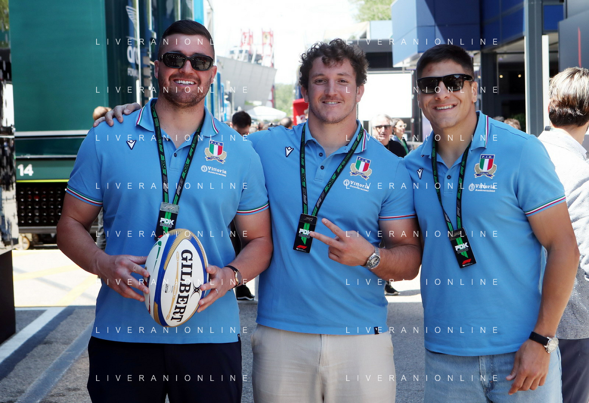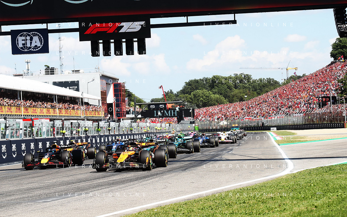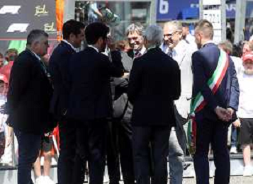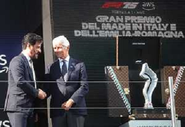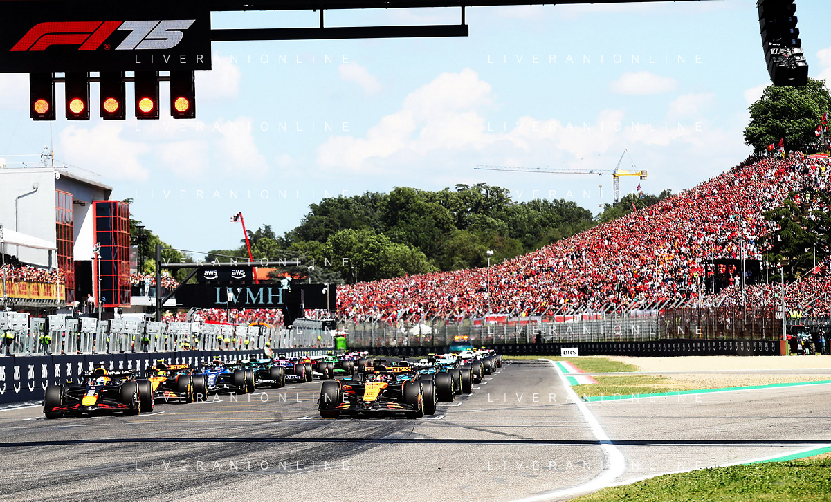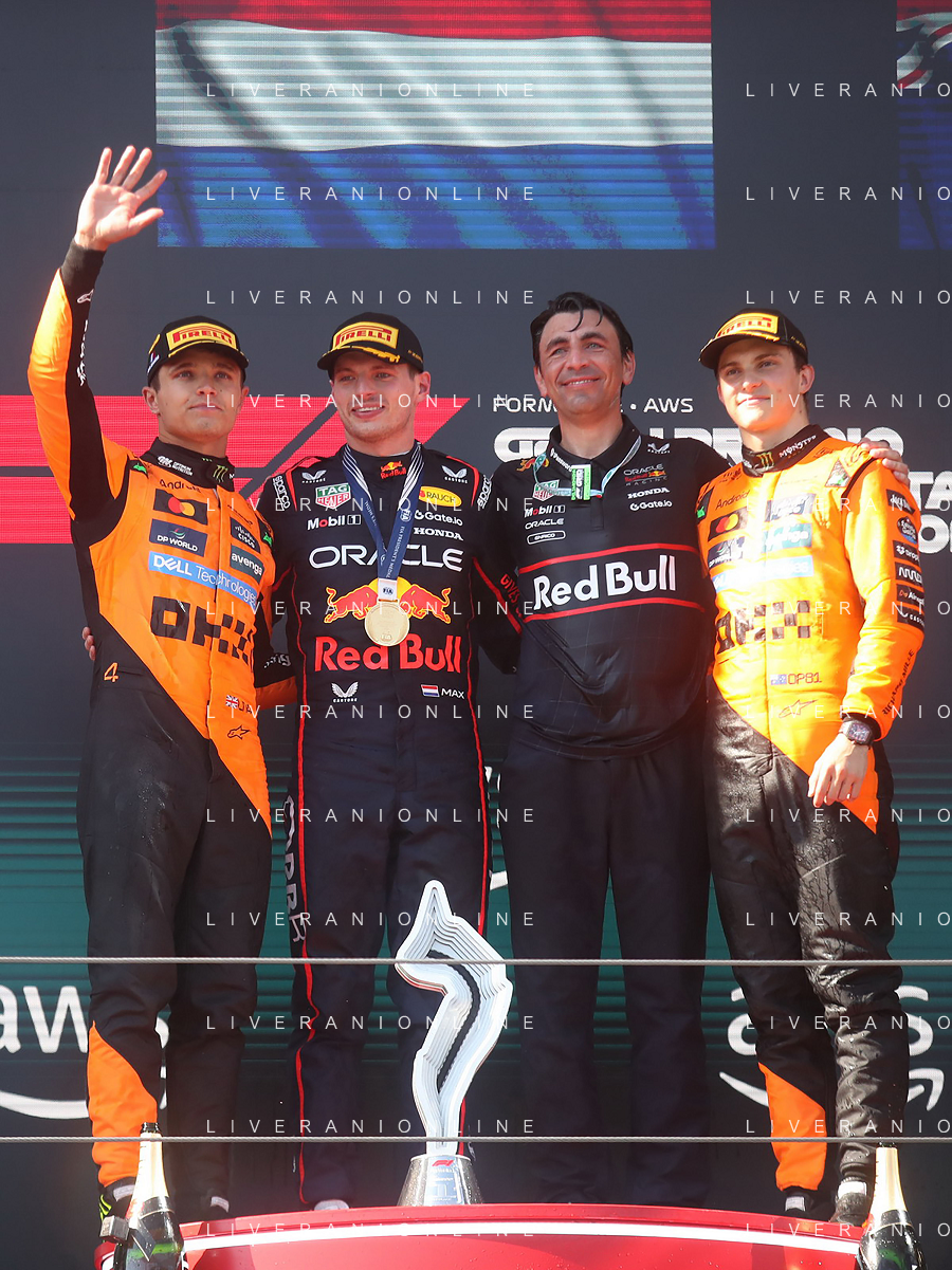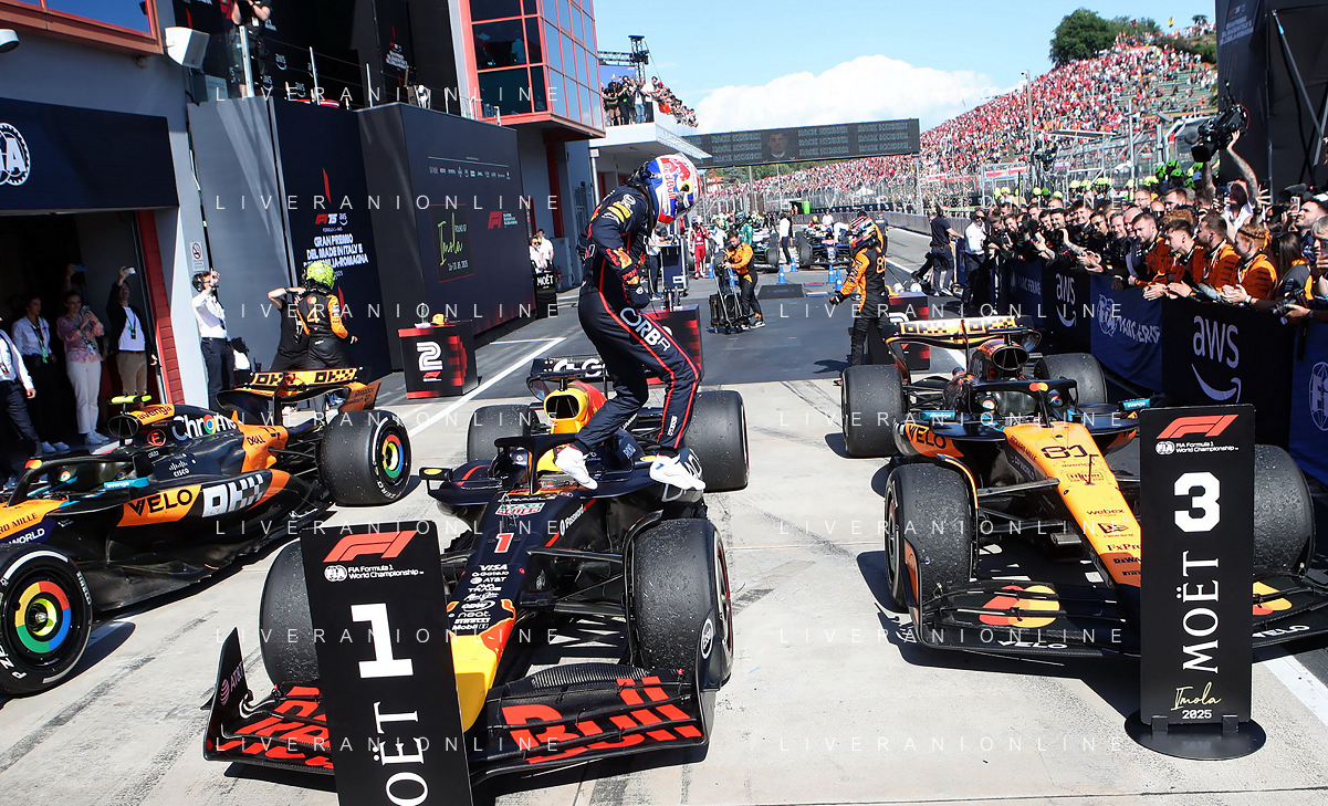 IMOLA 18 05 2025 DOMENICA AUTODROMO ENZO E DINO FERRARI DOMENICA FORMULA 1 GRAN PREMIO DEL MADE IN ITALY E DELL'EMILIA ROMAGNA - INNO NAZIONALE NELLA FOTO DA DX MATTEO ZOPPAS PRESIDENTE AGENZIA ICE, SINDACO DI IMOLA MARCO PANIERI, MINISTRO ALLO SPORT ANDREA ABODI, STEFANO DOMENICALI PRESIDENTE F1, MOHAMMED BEN SULAYEM PRESIDENTE FIA,TULLIO DEL SETTE COMMISSARIO STRAORDINARIO ACI E MICHELE DE PASCALE PRESIDENTE REGIONE EMILIA ROMAGNA ©SANNA - AGENZIA ALDO LIVERANI SAS