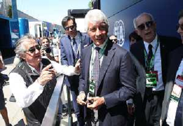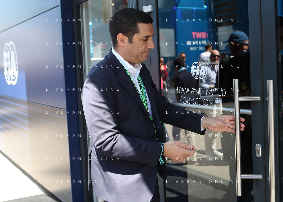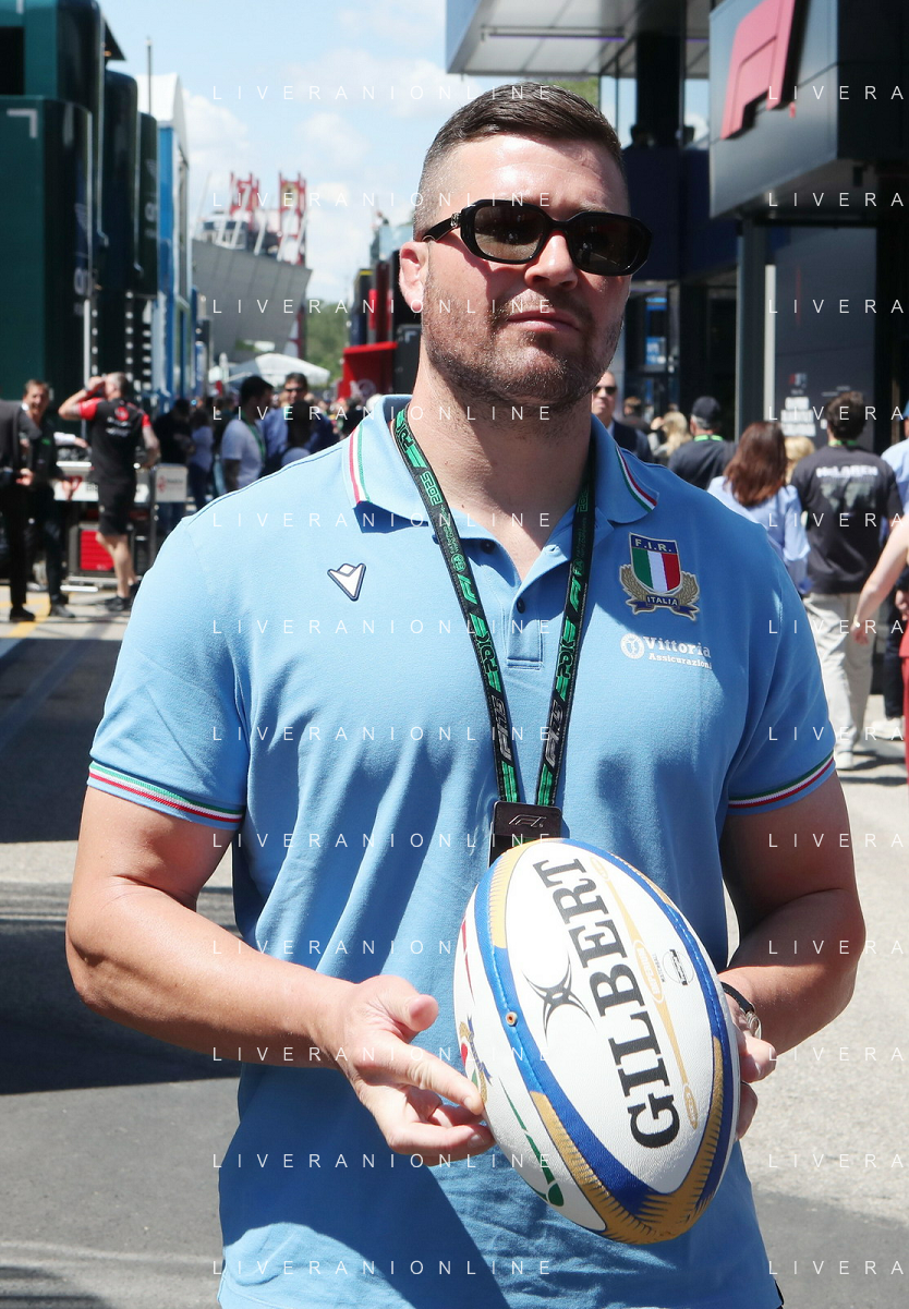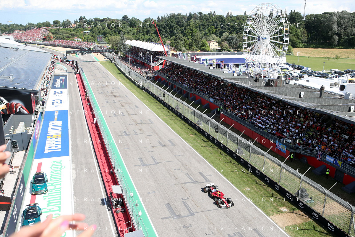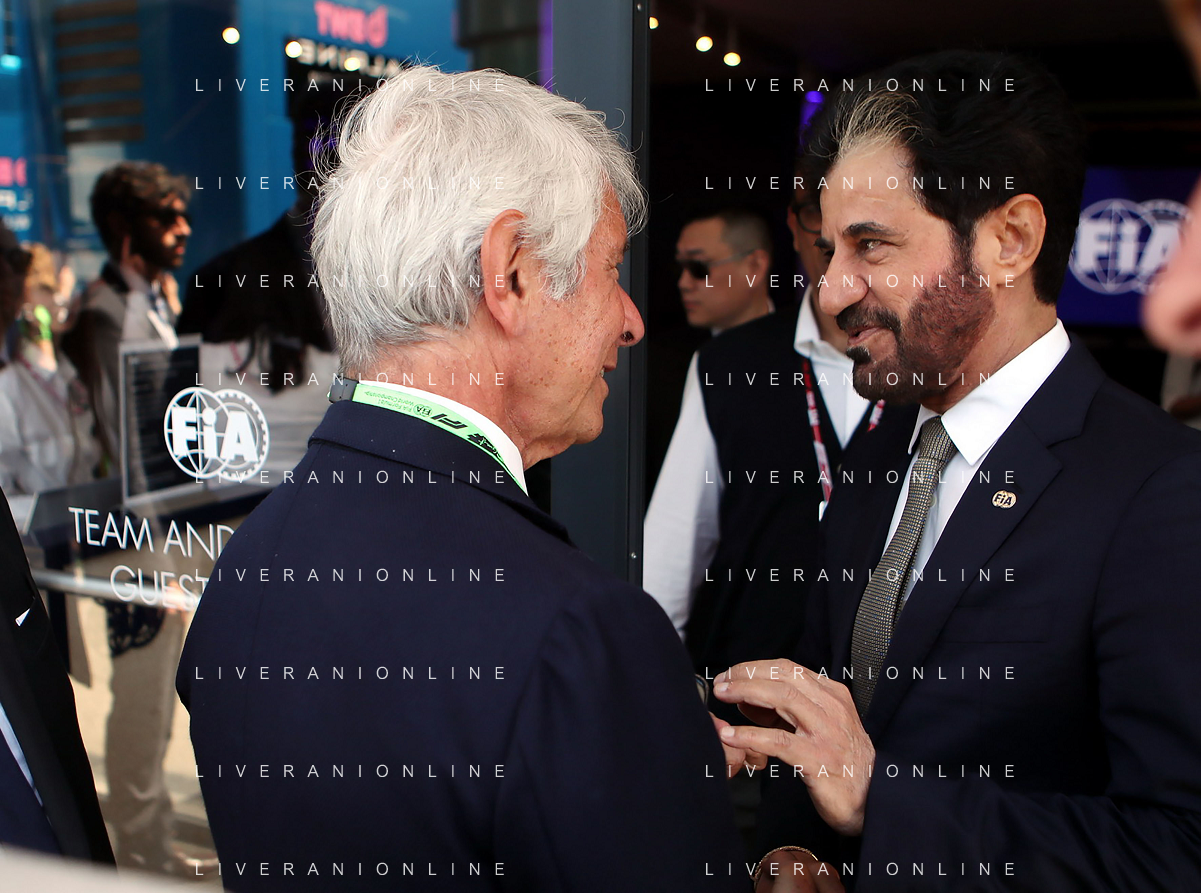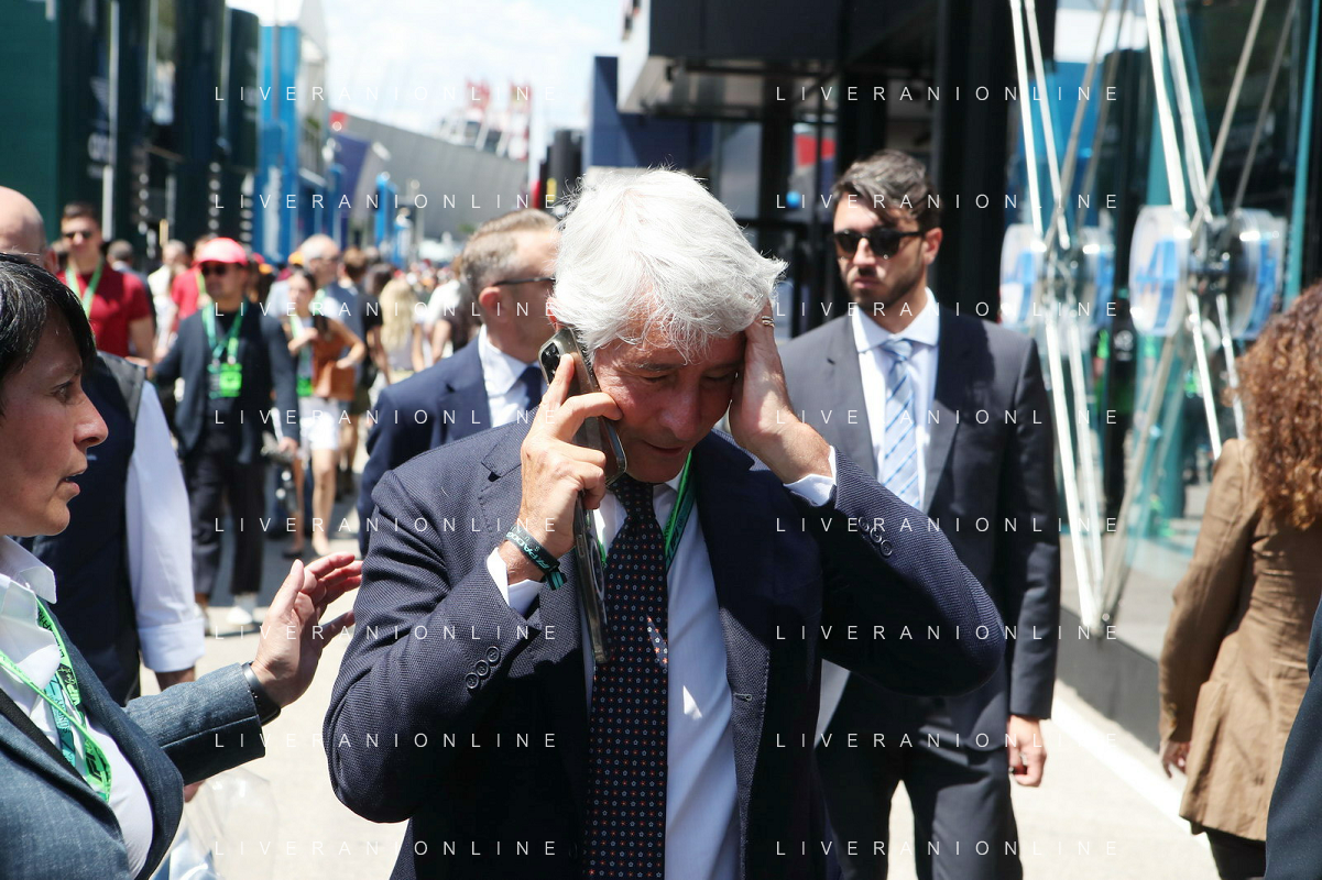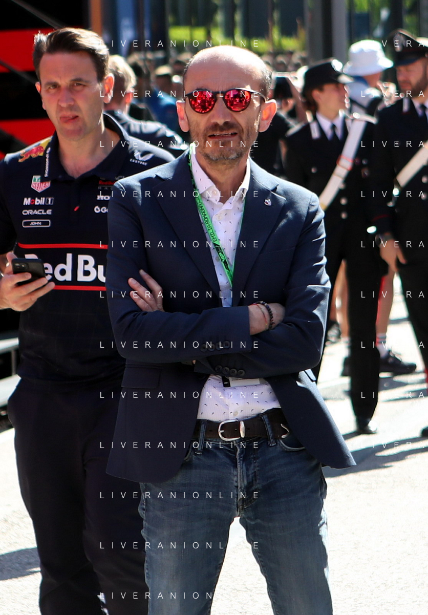 IMOLA 18 05 2025 DOMENICA AUTODROMO ENZO E DINO FERRARI DOMENICA FORMULA 1 GRAN PREMIO DEL MADE IN ITALY E DELL'EMILIA ROMAGNA - INNO NAZIONALE NELLA FOTO DA DX MATTEO ZOPPAS PRESIDENTE AGENZIA ICE, SINDACO DI IMOLA MARCO PANIERI, MINISTRO ALLO SPORT ANDREA ABODI, STEFANO DOMENICALI PRESIDENTE F1, MOHAMMED BEN SULAYEM PRESIDENTE FIA,TULLIO DEL SETTE COMMISSARIO STRAORDINARIO ACI E MICHELE DE PASCALE PRESIDENTE REGIONE EMILIA ROMAGNA ©SANNA - AGENZIA ALDO LIVERANI SAS
