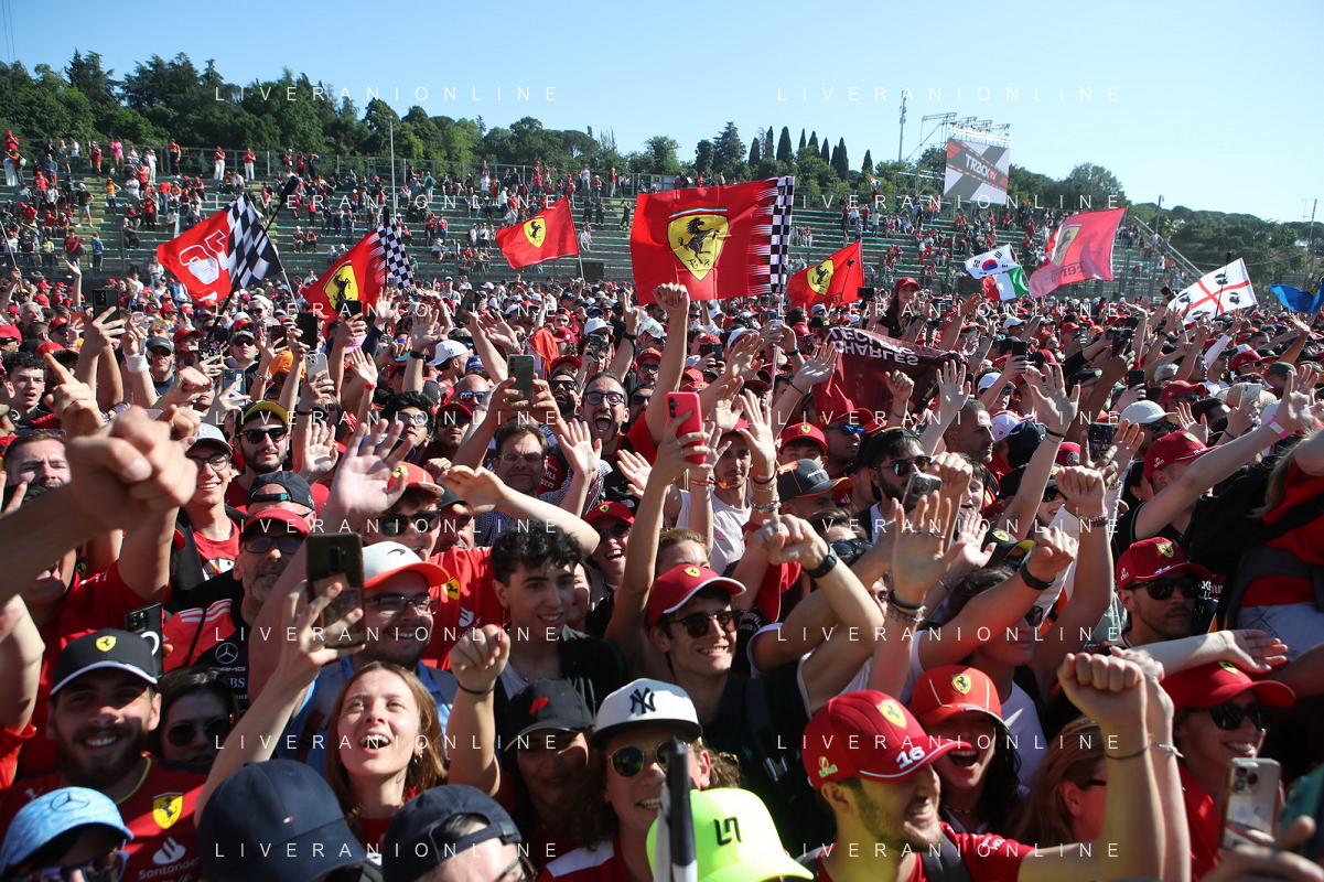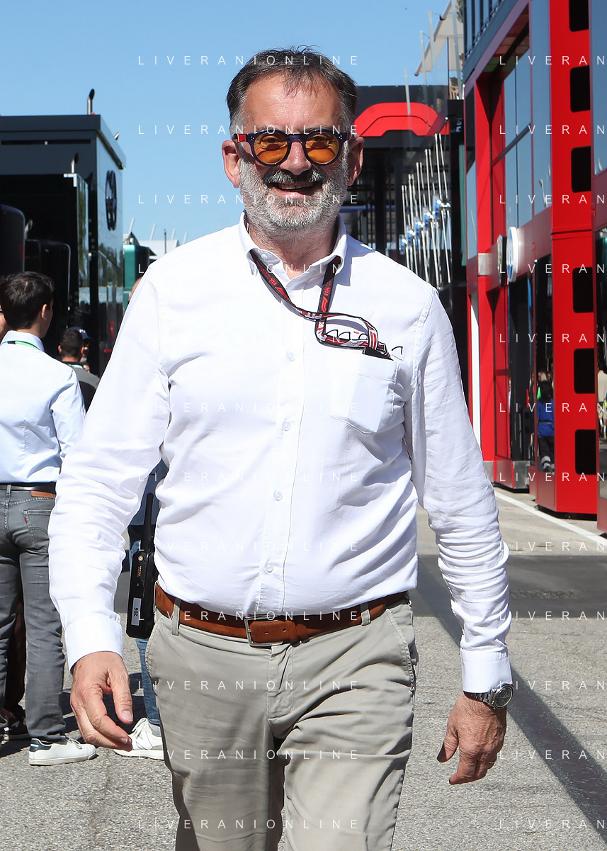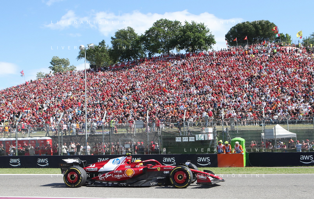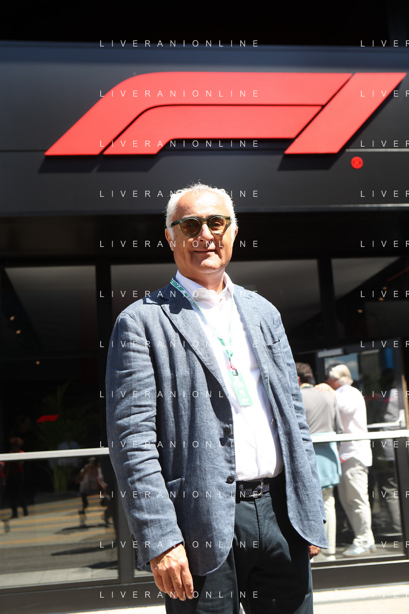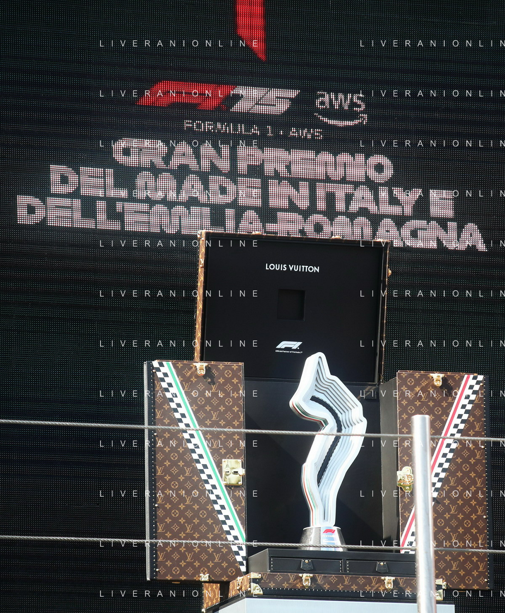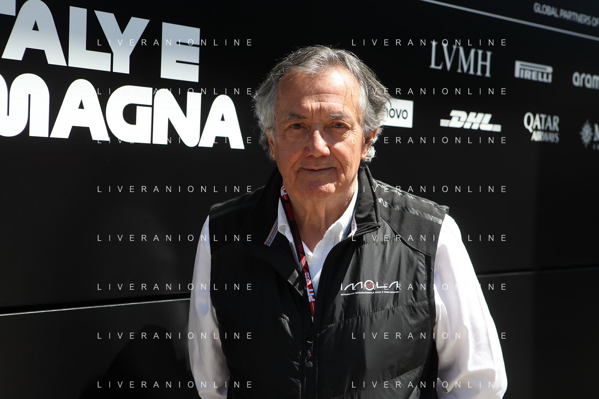 IMOLA 18 05 2025 DOMENICA AUTODROMO ENZO E DINO FERRARI DOMENICA FORMULA 1 GRAN PREMIO DEL MADE IN ITALY E DELL'EMILIA ROMAGNA - INNO NAZIONALE NELLA FOTO DA DX MATTEO ZOPPAS PRESIDENTE AGENZIA ICE, SINDACO DI IMOLA MARCO PANIERI, MINISTRO ALLO SPORT ANDREA ABODI, STEFANO DOMENICALI PRESIDENTE F1, MOHAMMED BEN SULAYEM PRESIDENTE FIA,TULLIO DEL SETTE COMMISSARIO STRAORDINARIO ACI E MICHELE DE PASCALE PRESIDENTE REGIONE EMILIA ROMAGNA ©SANNA - AGENZIA ALDO LIVERANI SAS