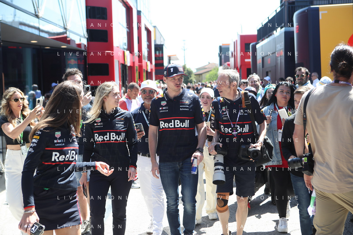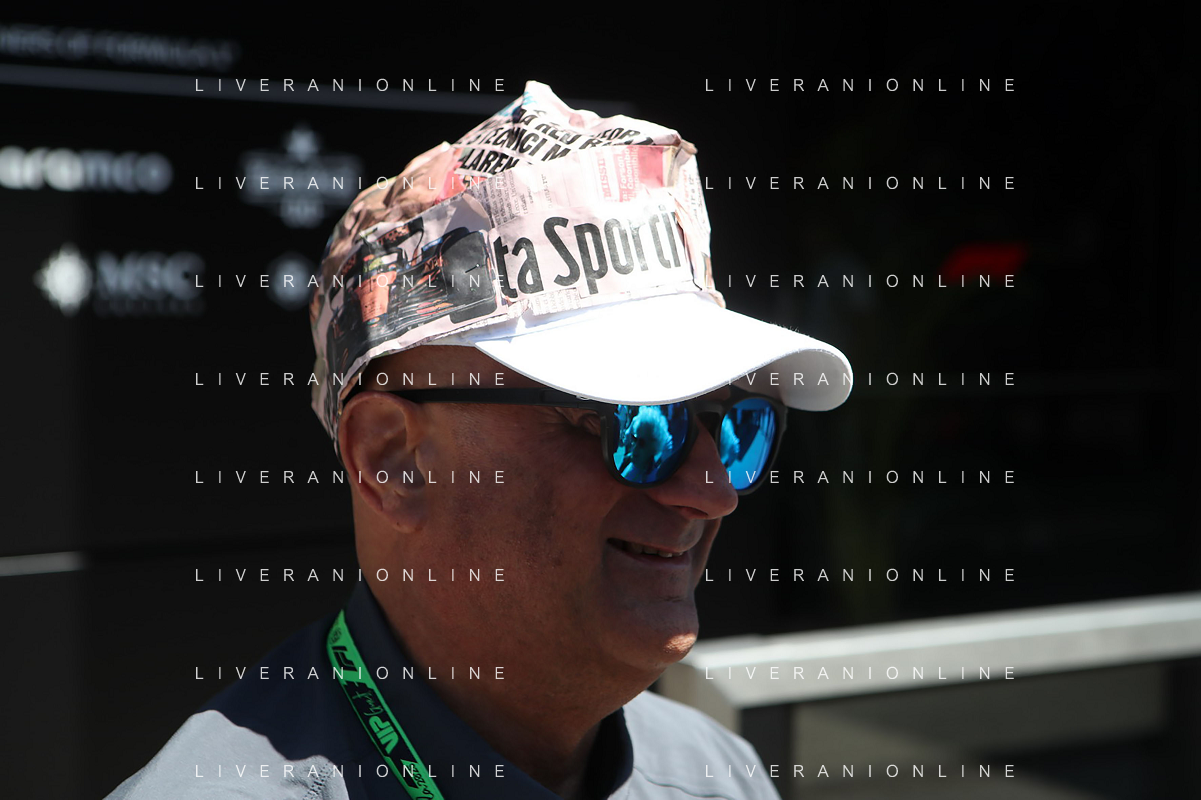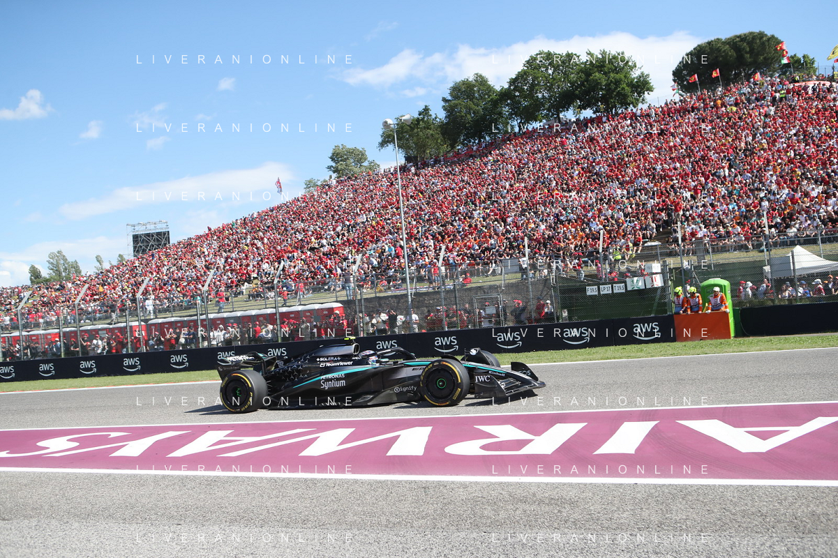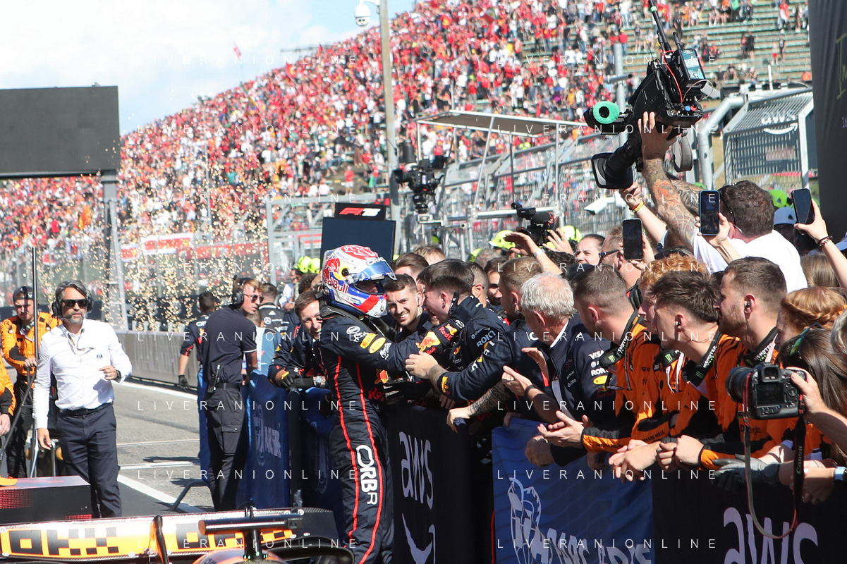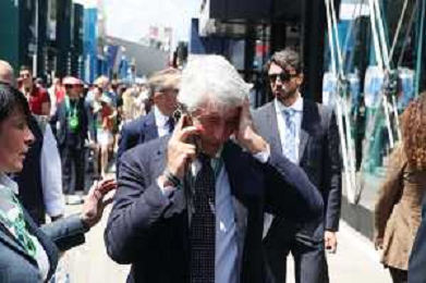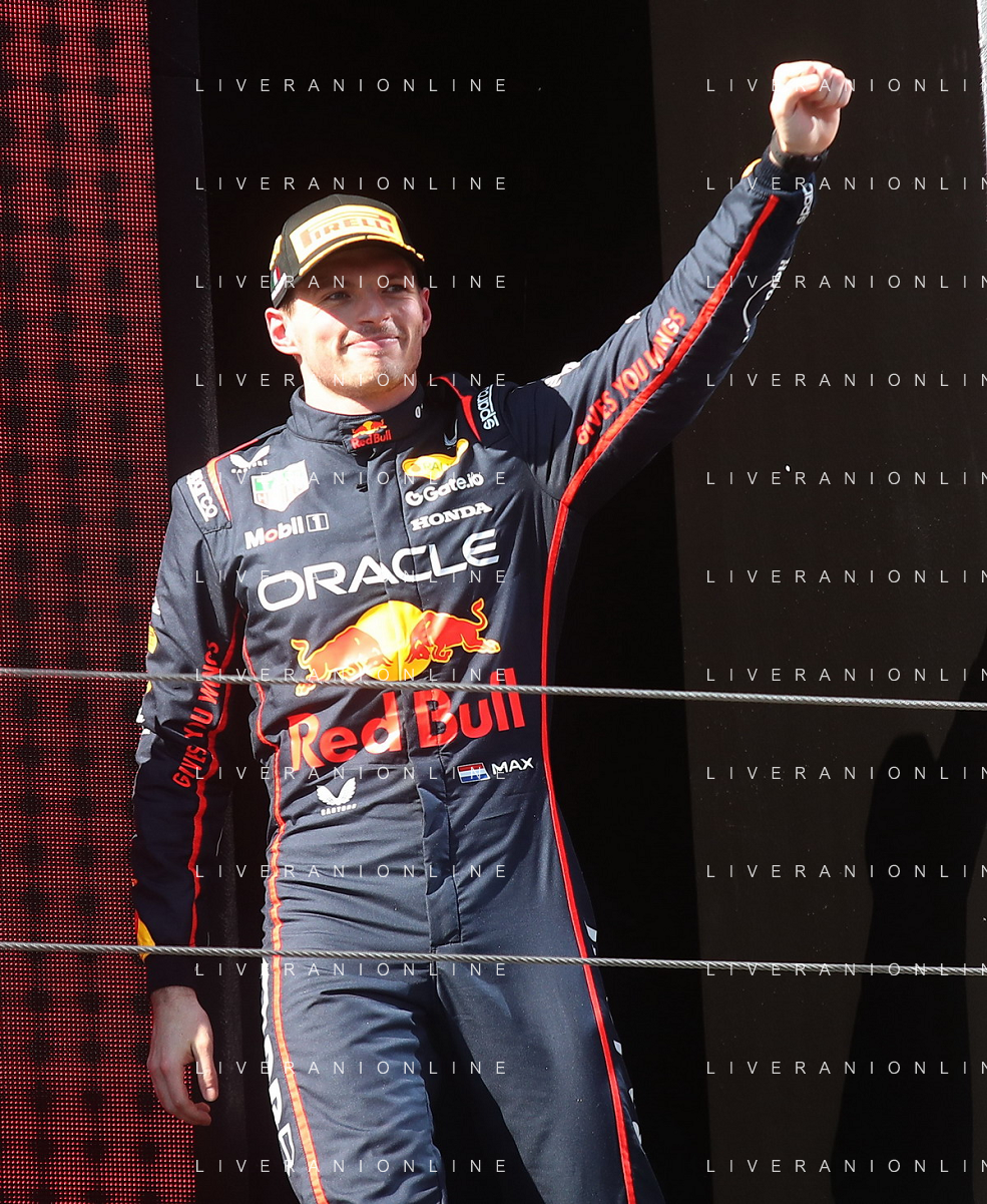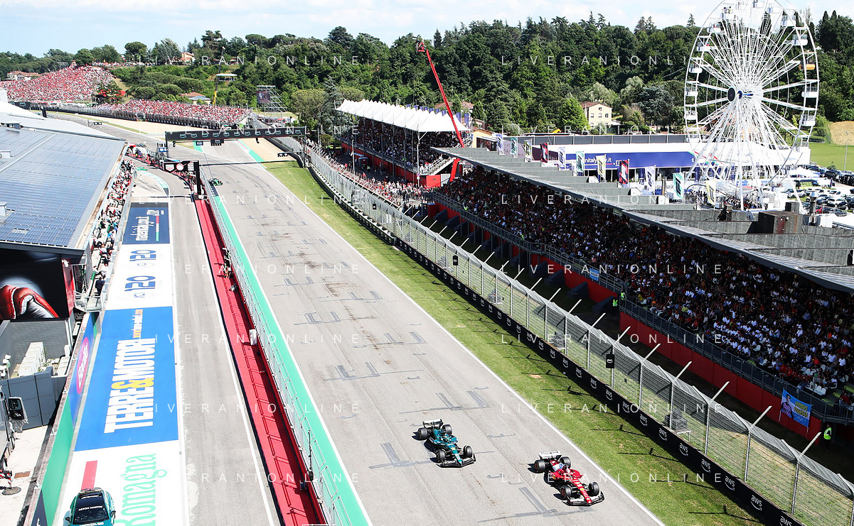 IMOLA 18 05 2025 DOMENICA AUTODROMO ENZO E DINO FERRARI DOMENICA FORMULA 1 GRAN PREMIO DEL MADE IN ITALY E DELL'EMILIA ROMAGNA - INNO NAZIONALE NELLA FOTO DA DX MATTEO ZOPPAS PRESIDENTE AGENZIA ICE, SINDACO DI IMOLA MARCO PANIERI, MINISTRO ALLO SPORT ANDREA ABODI, STEFANO DOMENICALI PRESIDENTE F1, MOHAMMED BEN SULAYEM PRESIDENTE FIA,TULLIO DEL SETTE COMMISSARIO STRAORDINARIO ACI E MICHELE DE PASCALE PRESIDENTE REGIONE EMILIA ROMAGNA ©SANNA - AGENZIA ALDO LIVERANI SAS