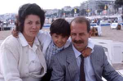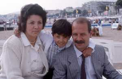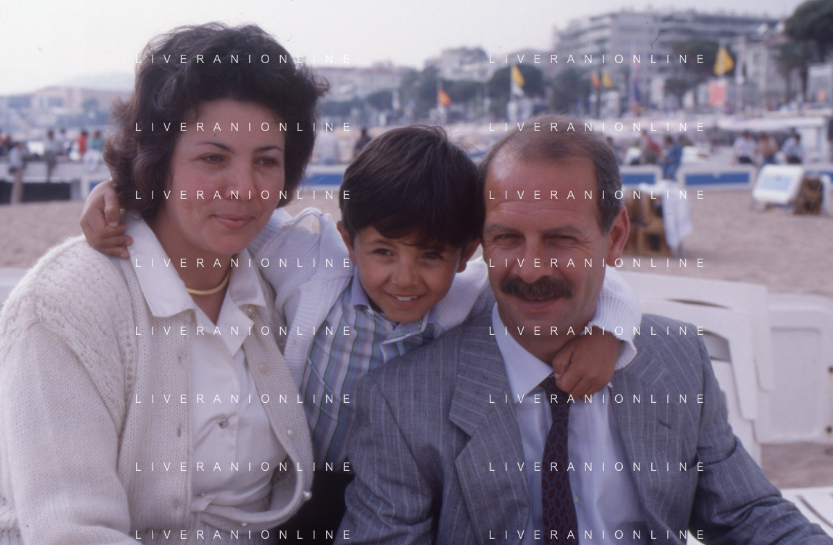 DIAP-RETROSPETTIVA SALVATORE CASCIO ATTORE NELLA FOTO SALVATORE CASCIO A CANNES NELL'ANNO 1989 CON IL PADRE E LA MADRE AG THEMA-AG ALDO LIVERANI SAS