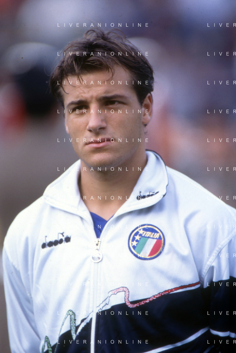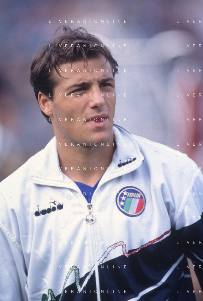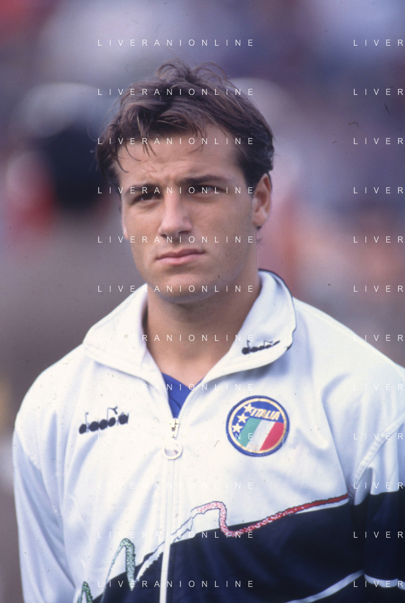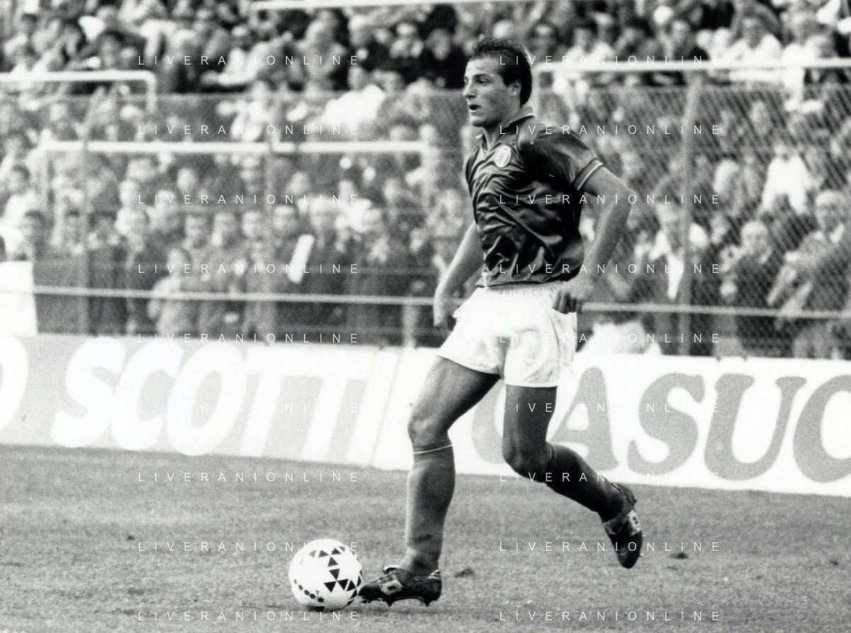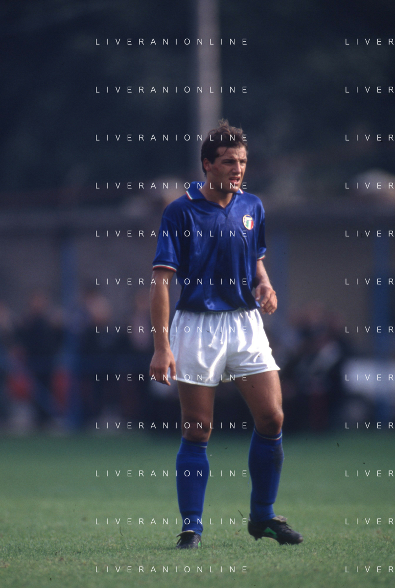 DIAP-RETROSPETTIVA CHRISTIAN LANTIGNOTTI CALCIATORE NELLA FOTO CHRISTIAN LANTIGNOTTI CON LA MAGLIA DELLA NAZIONALE ITALIANA DELL'UNDER 21 DI CALCIO NELL'ANNO 1990 AG ALDO LIVERANI SAS