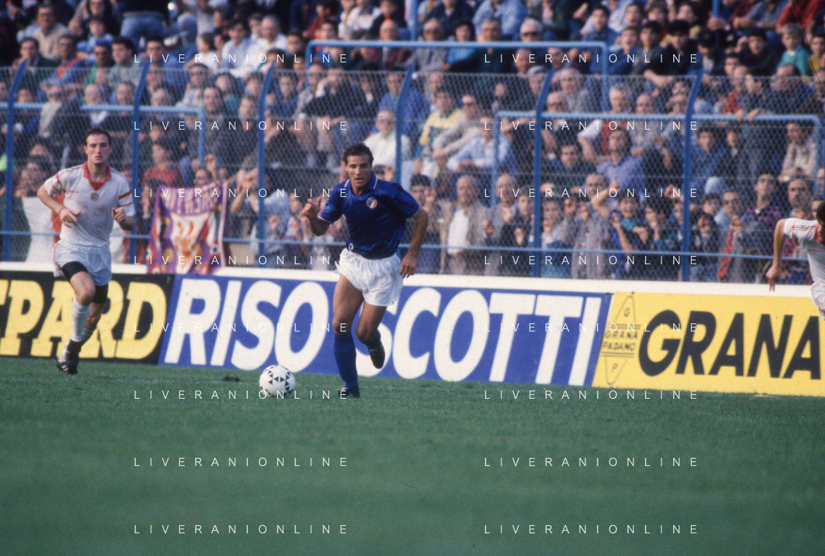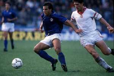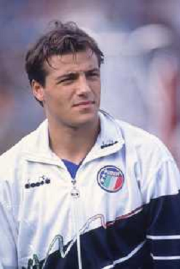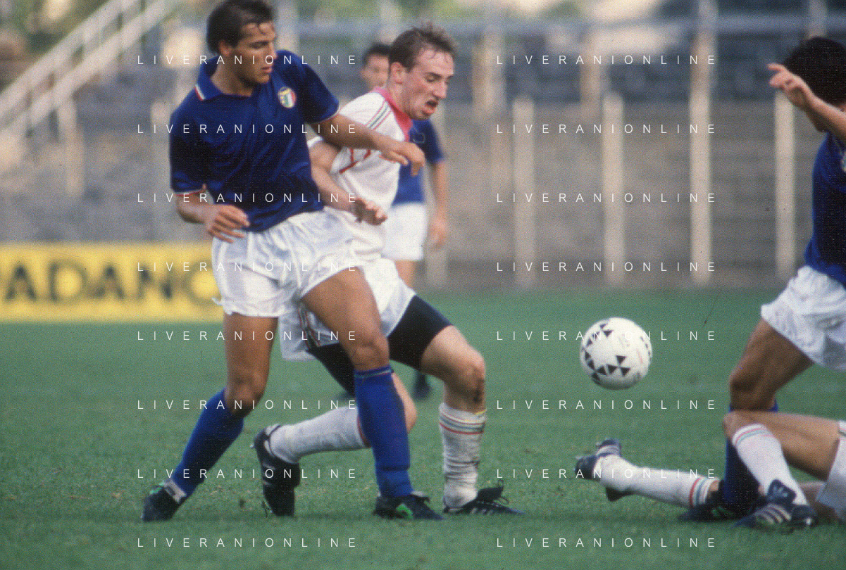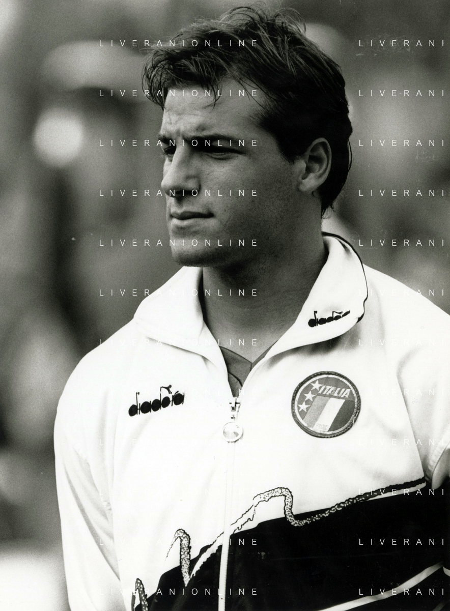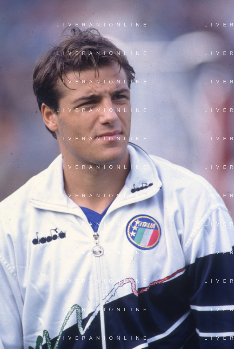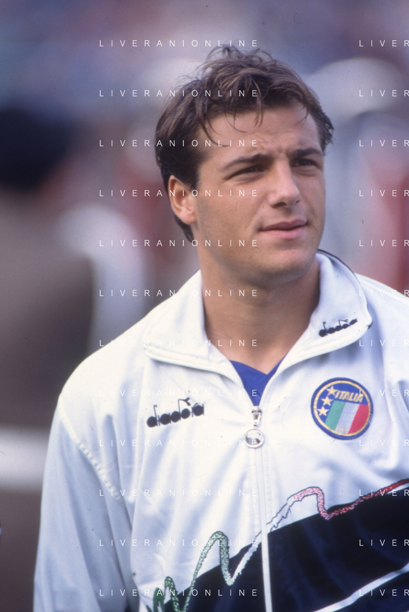 DIAP-RETROSPETTIVA CHRISTIAN LANTIGNOTTI CALCIATORE NELLA FOTO CHRISTIAN LANTIGNOTTI CON LA MAGLIA DELLA NAZIONALE ITALIANA DELL'UNDER 21 DI CALCIO NELL'ANNO 1990 AG ALDO LIVERANI SAS