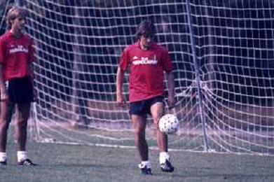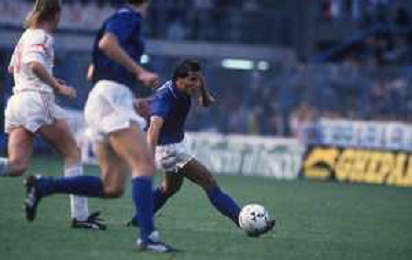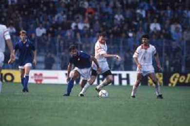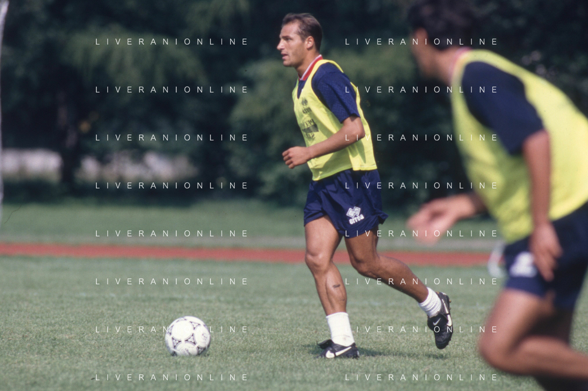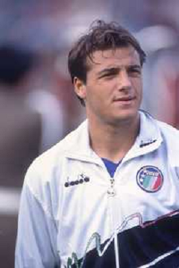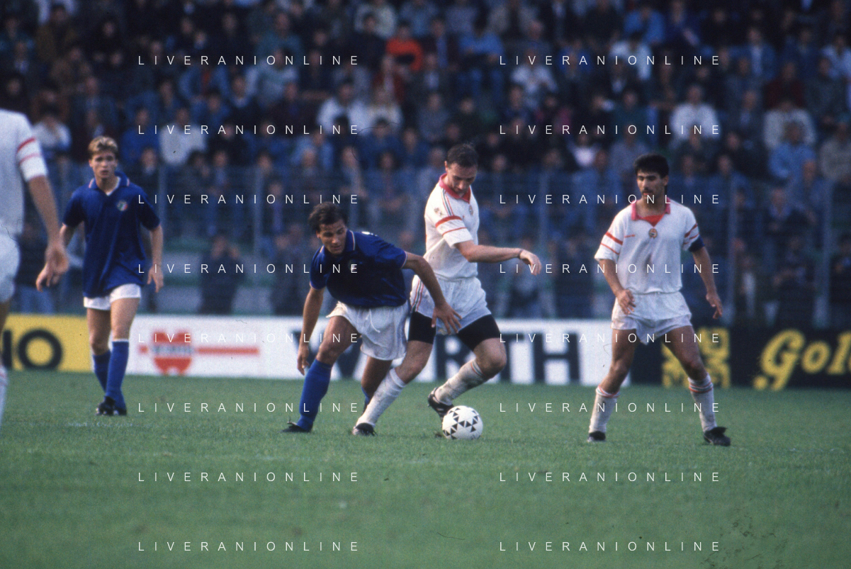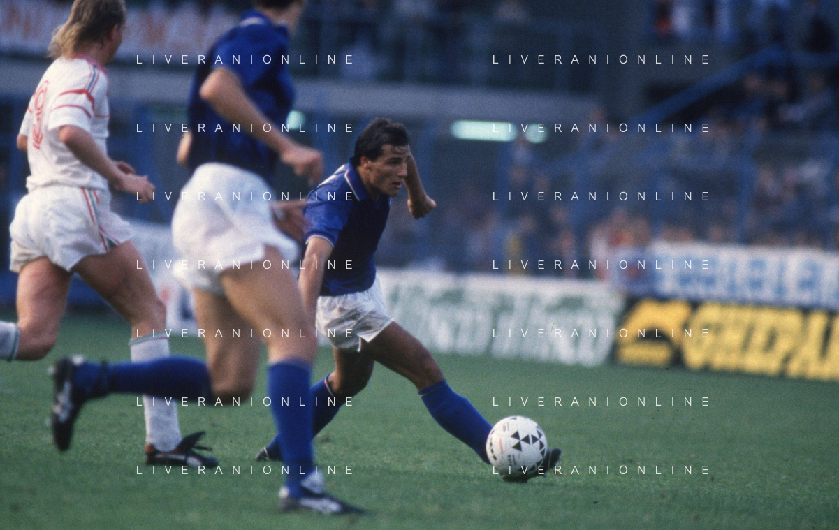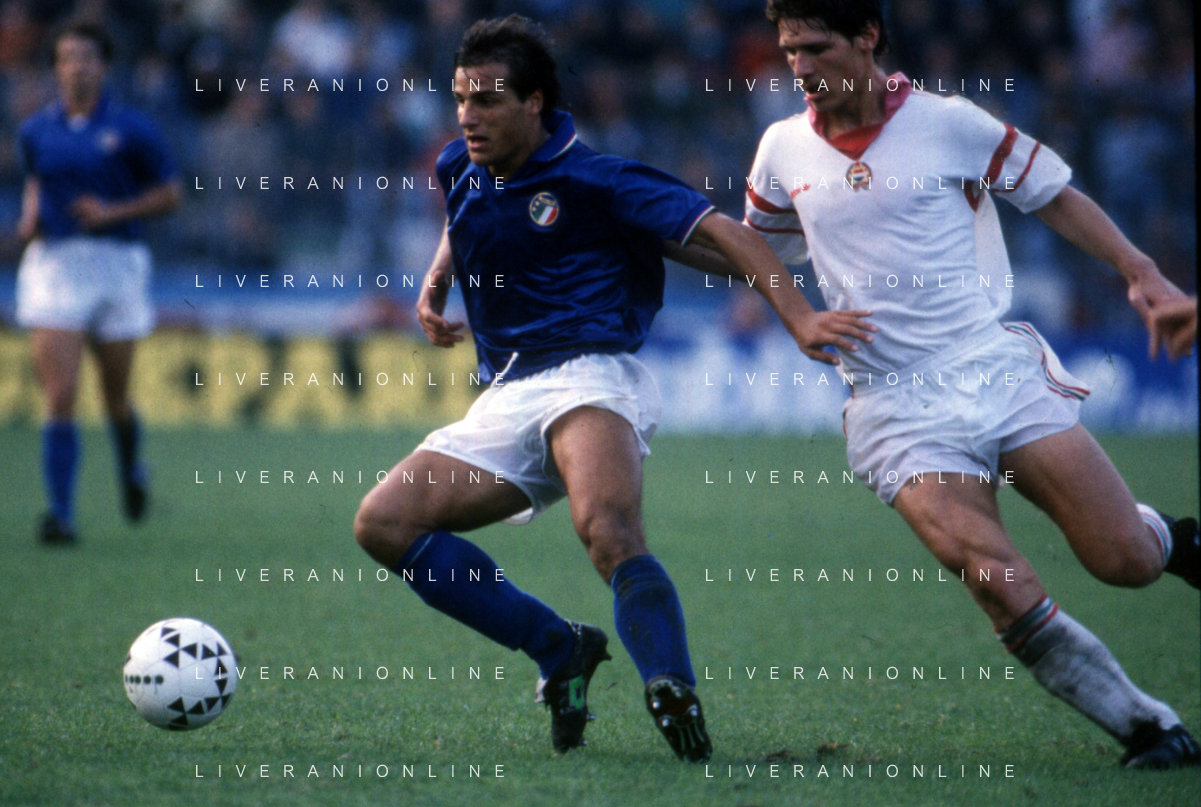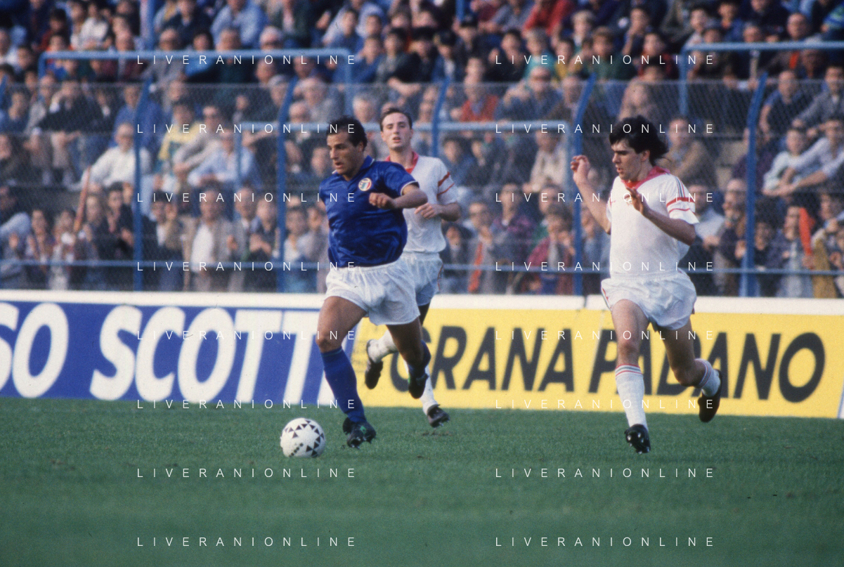 DIAP-RETROSPETTIVA CHRISTIAN LANTIGNOTTI CALCIATORE NELLA FOTO CHRISTIAN LANTIGNOTTI CON LA MAGLIA DELLA NAZIONALE ITALIANA DELL'UNDER 21 DI CALCIO NELL'ANNO 1990 AG ALDO LIVERANI SAS