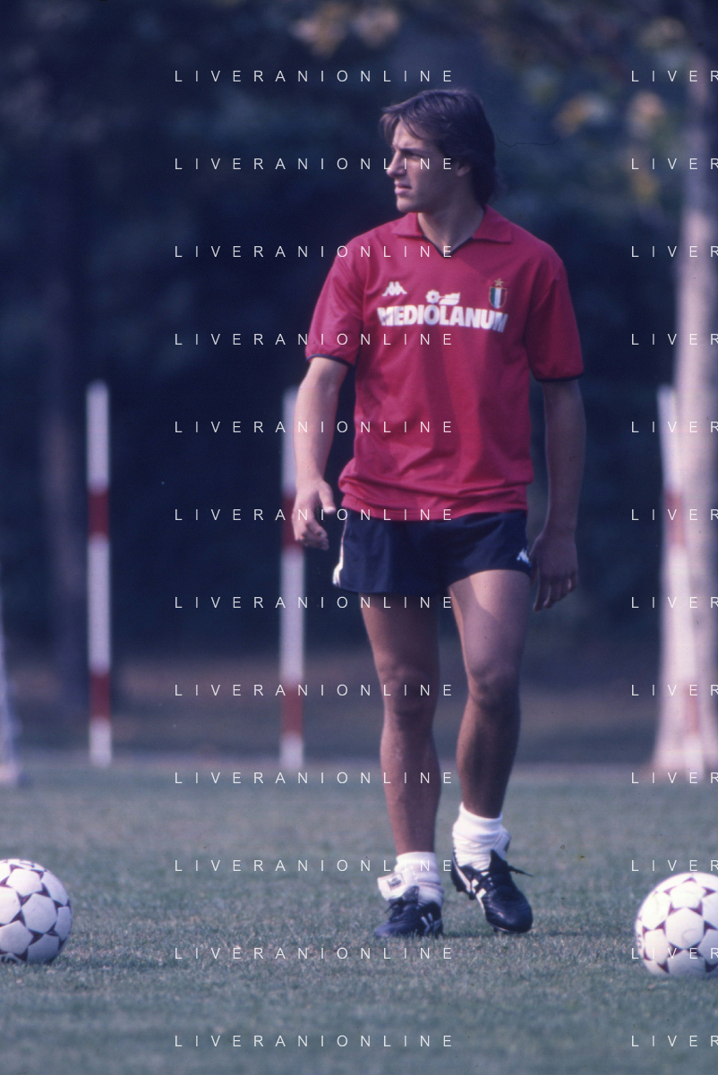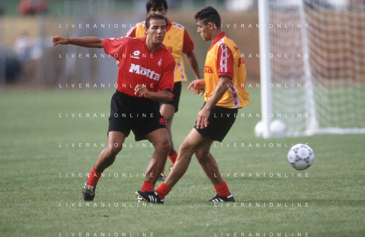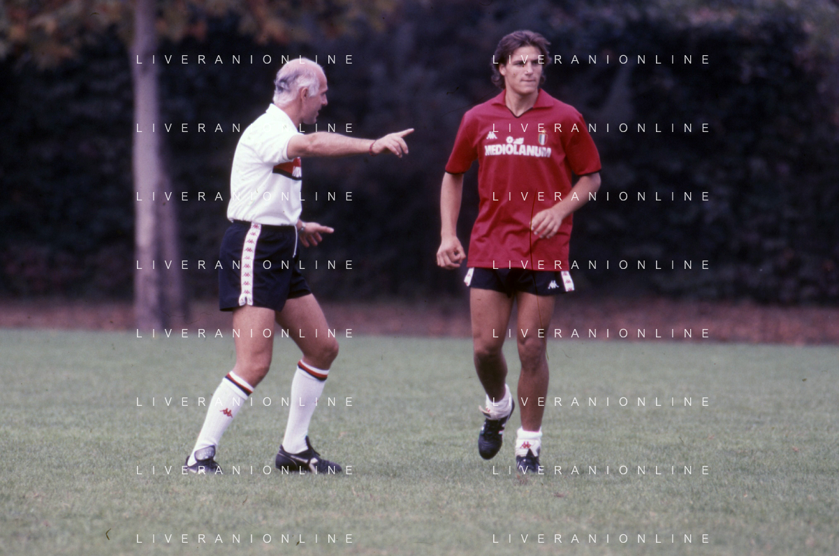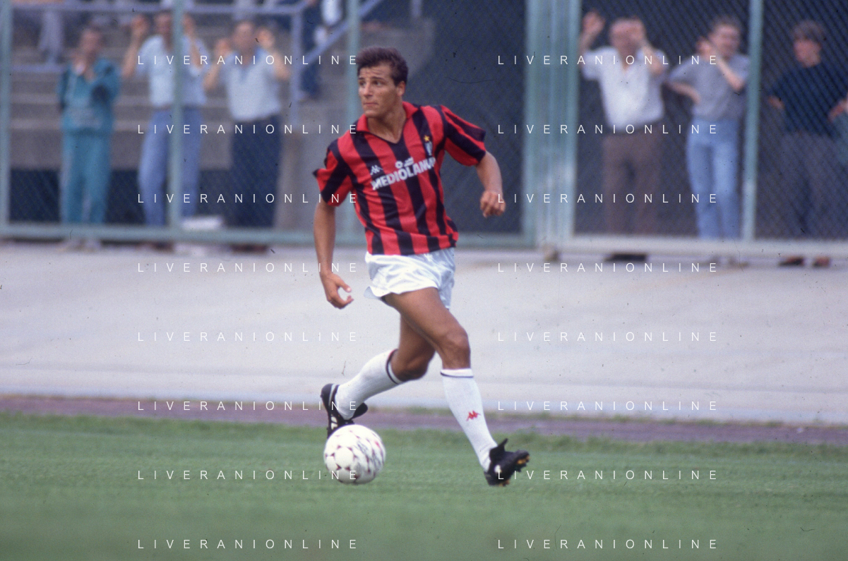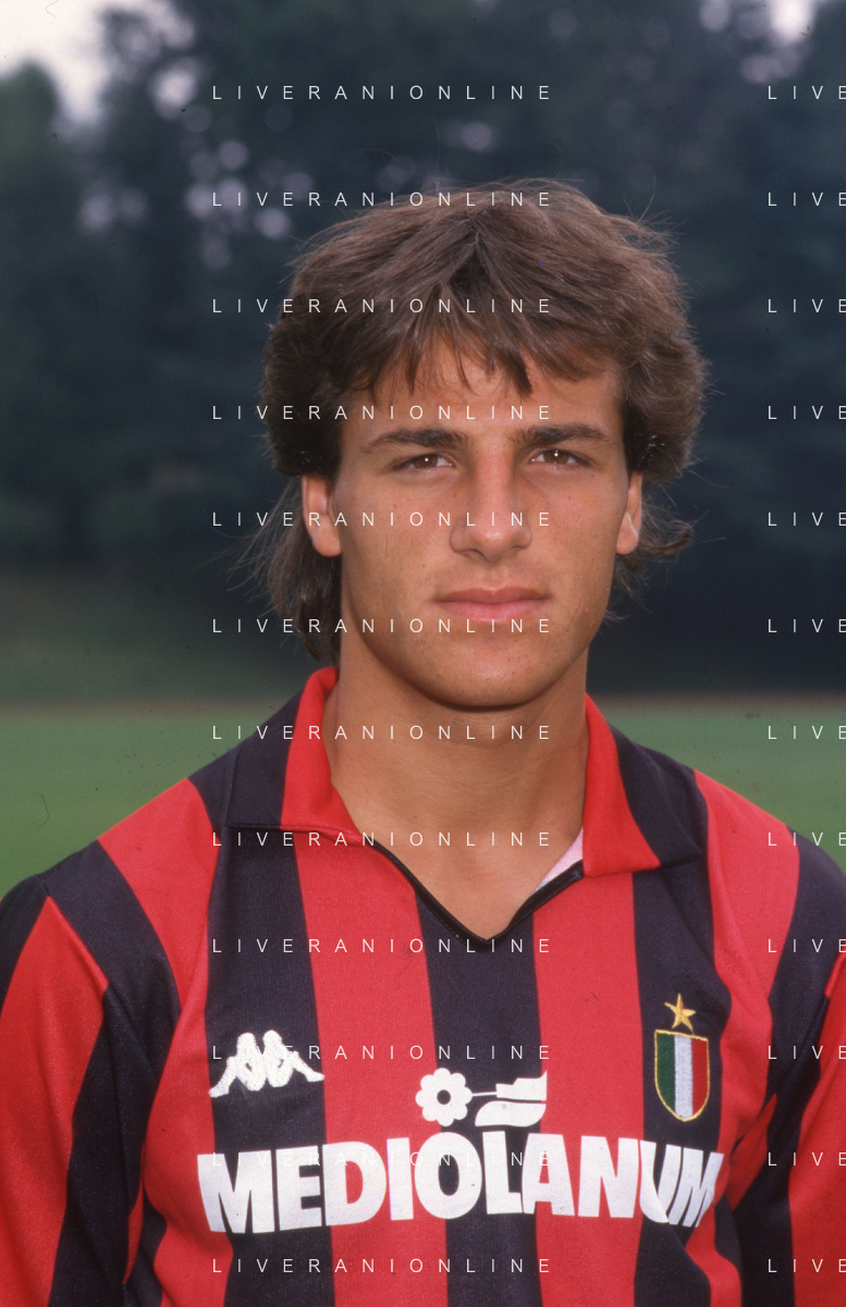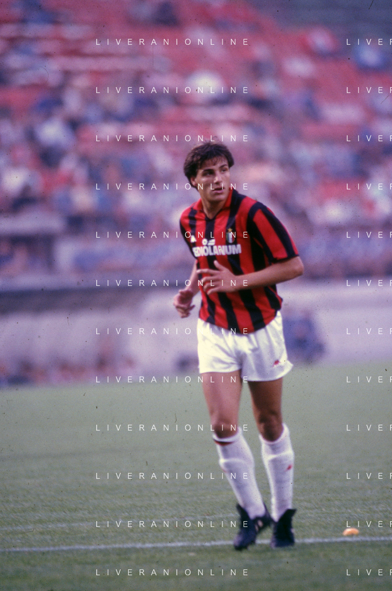 DIAP-RETROSPETTIVA CHRISTIAN LANTIGNOTTI CALCIATORE NELLA FOTO CHRISTIAN LANTIGNOTTI CON LA MAGLIA DEL MILAN NELL'ANNO 1988-1989 E ANGELO COLOMBO AG ALDO LIVERANI SAS