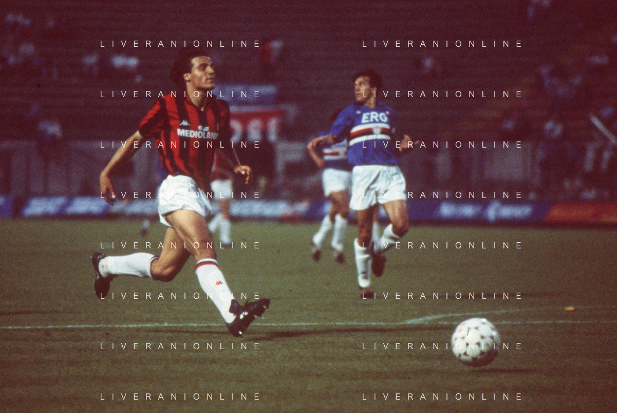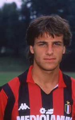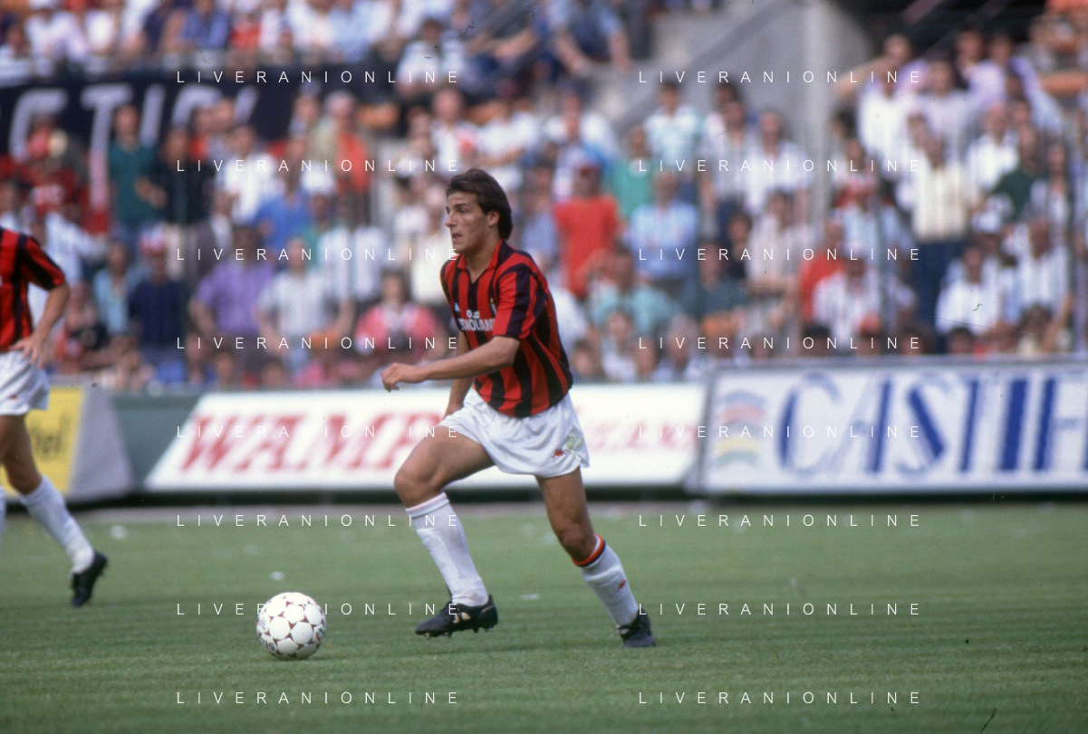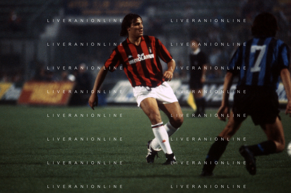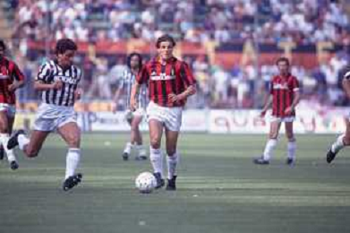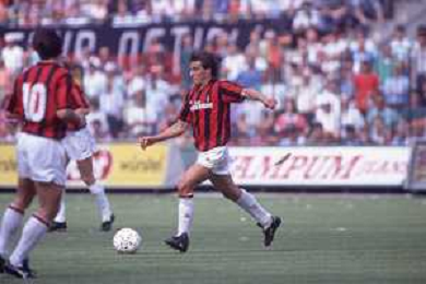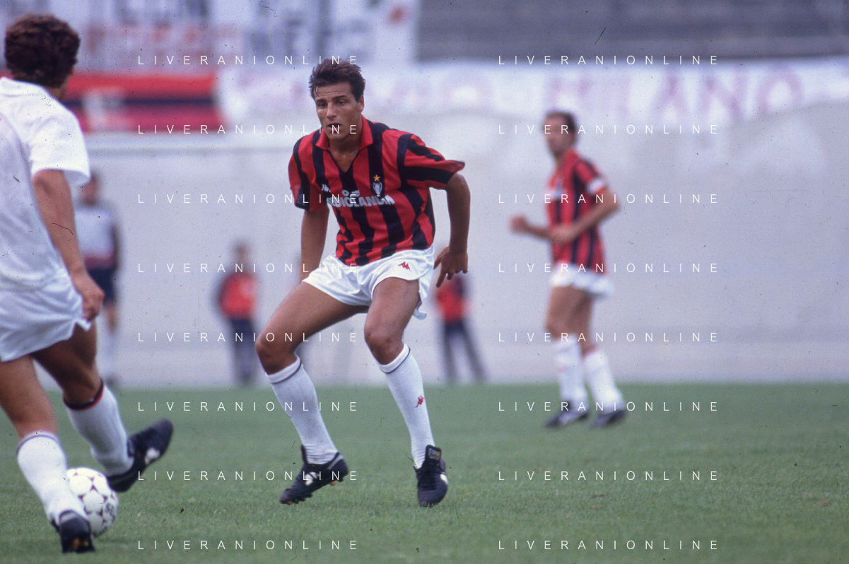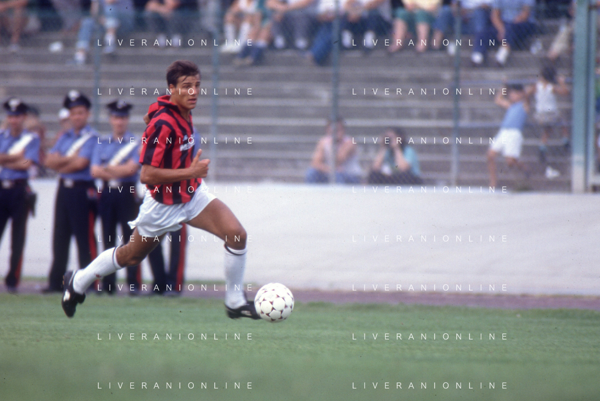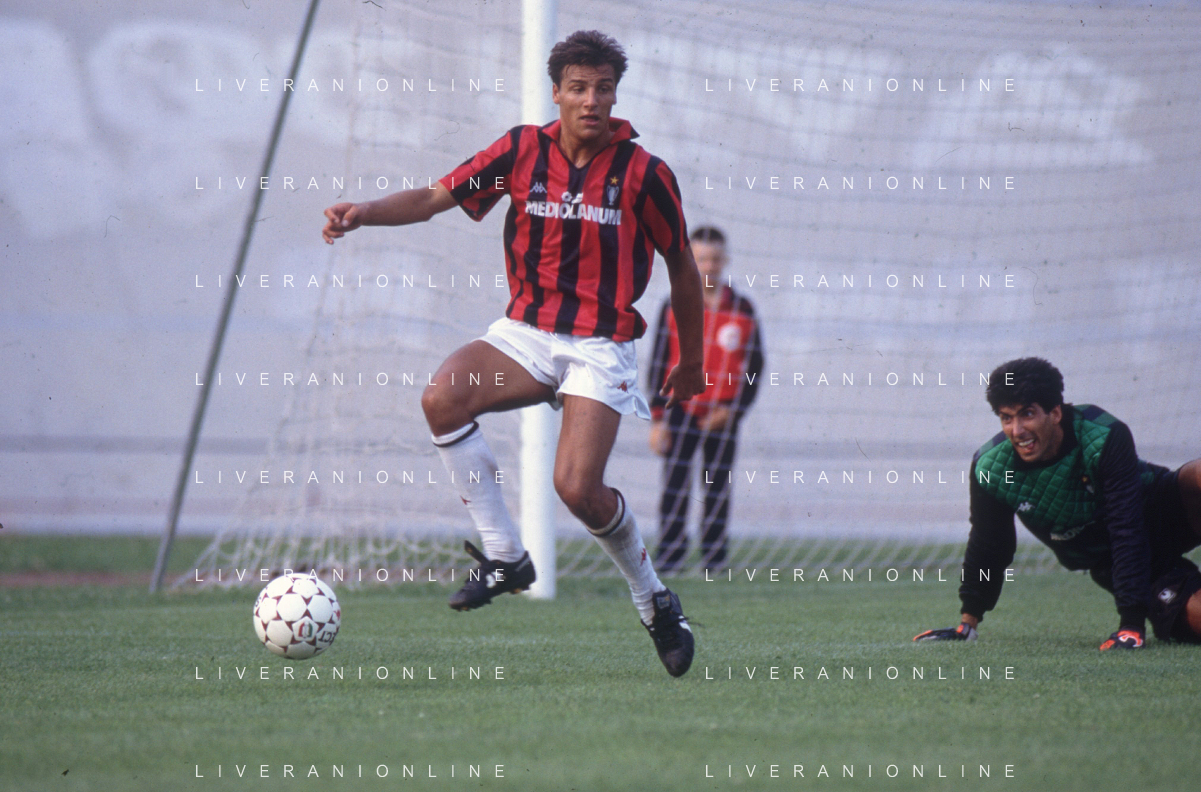 DIAP-RETROSPETTIVA CHRISTIAN LANTIGNOTTI CALCIATORE NELLA FOTO CHRISTIAN LANTIGNOTTI CON LA MAGLIA DEL MILAN NELL'ANNO 1988-1989 E ANGELO COLOMBO AG ALDO LIVERANI SAS