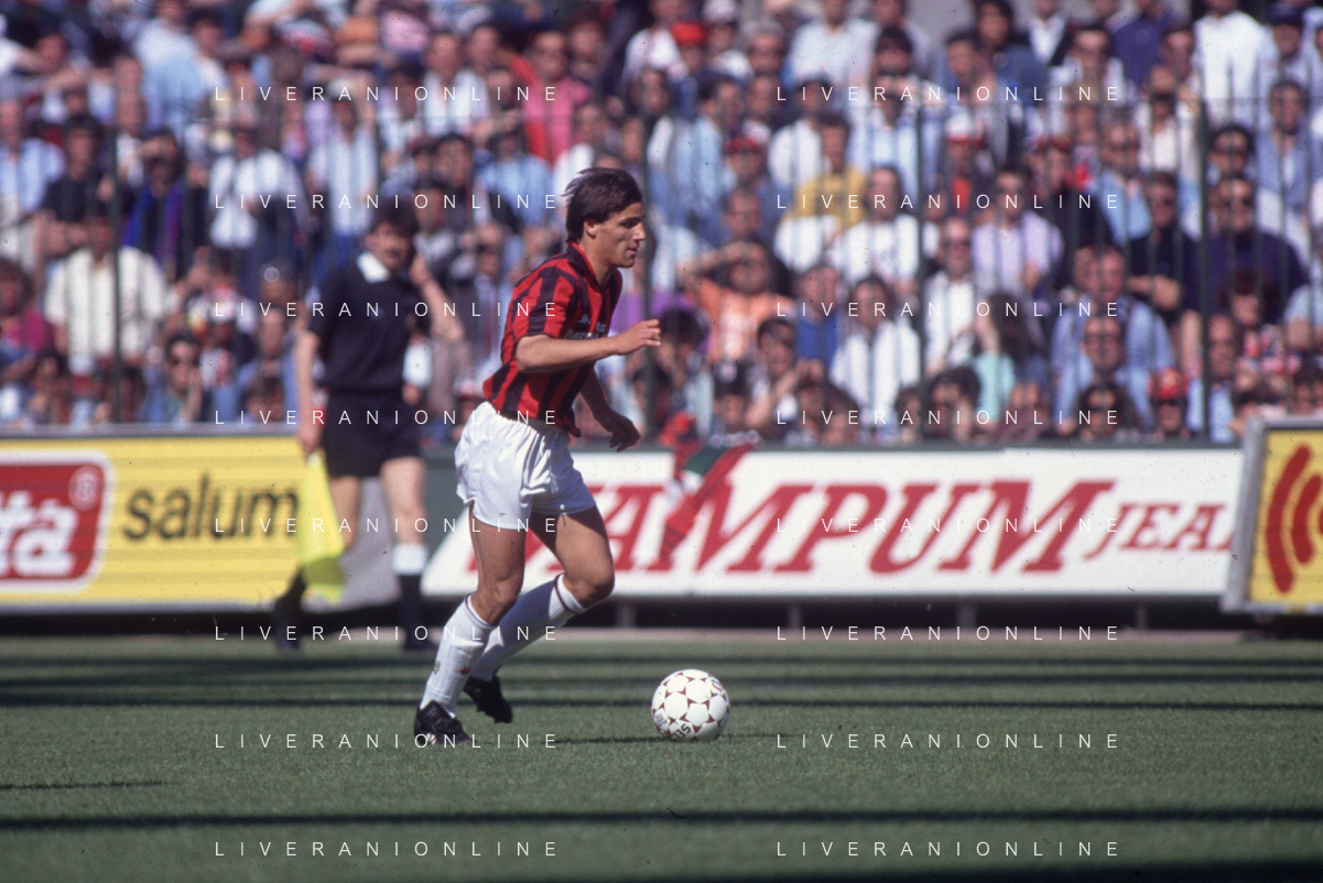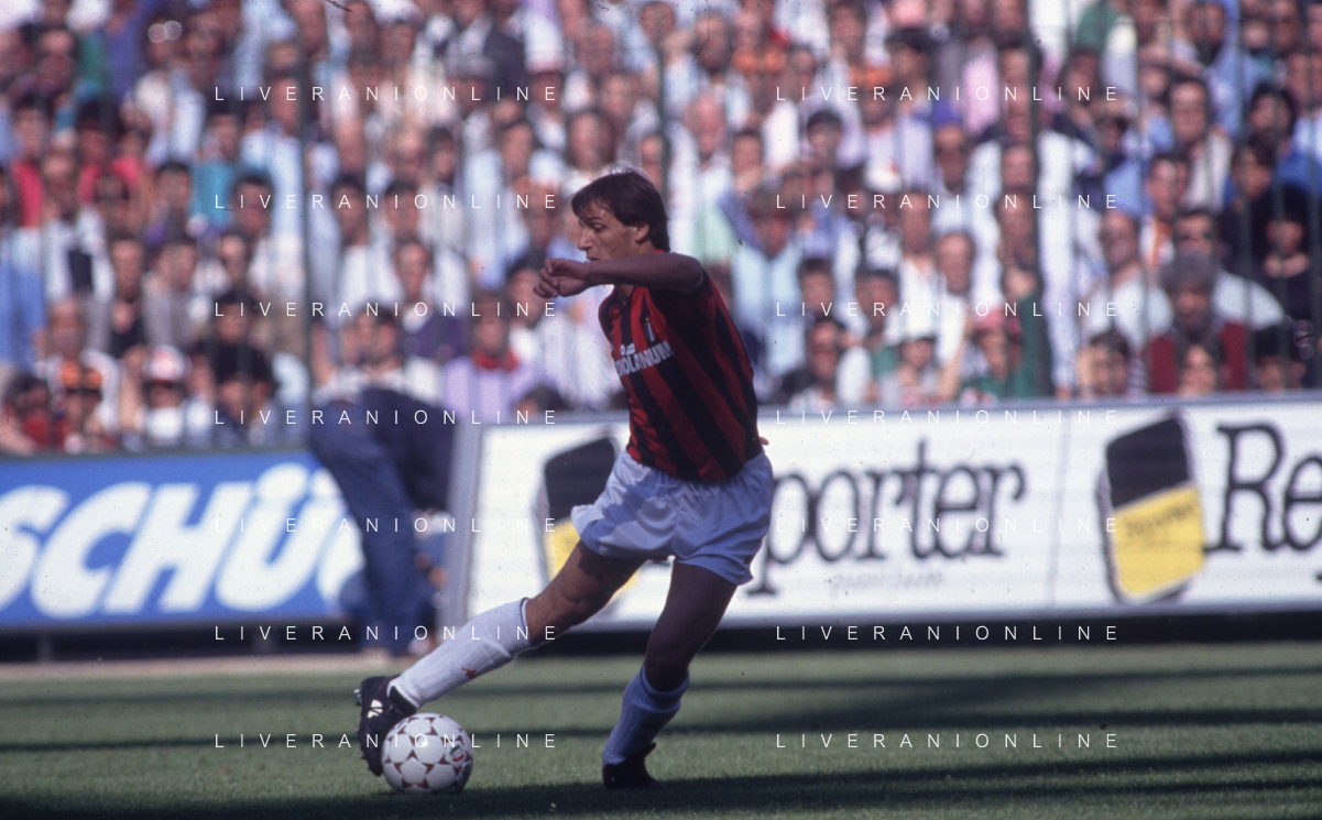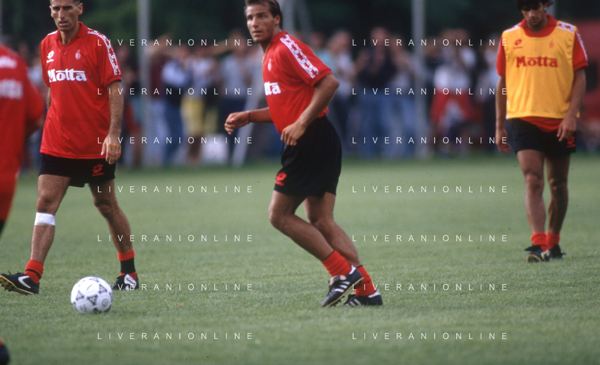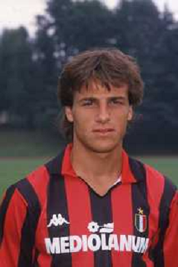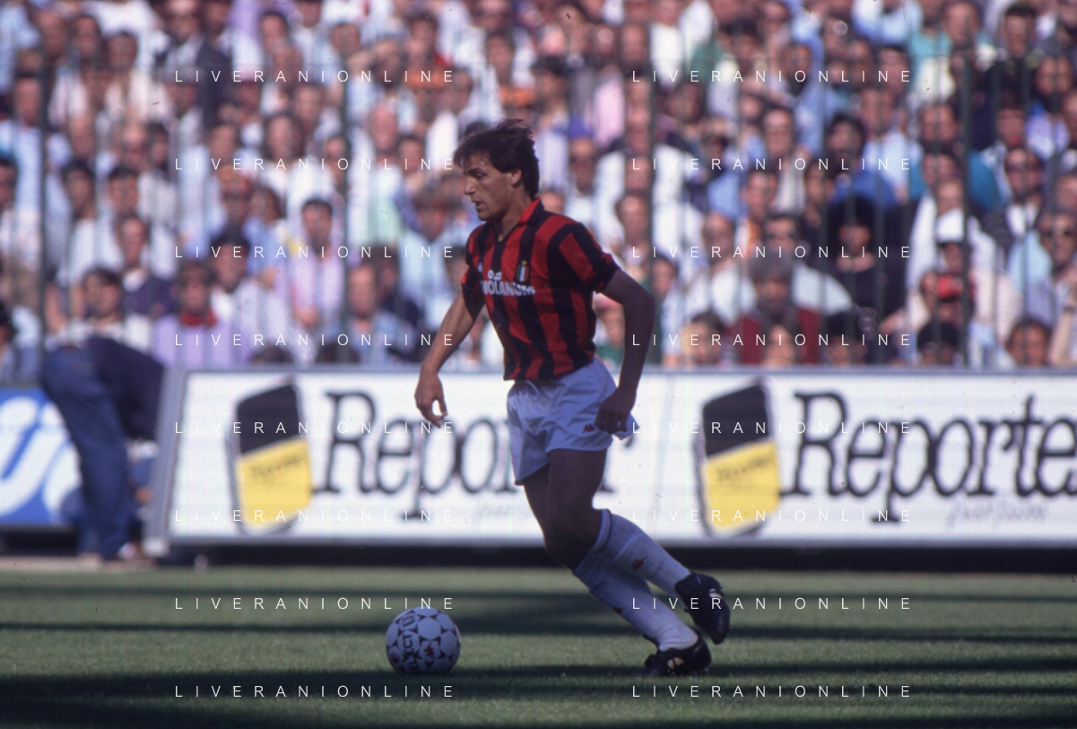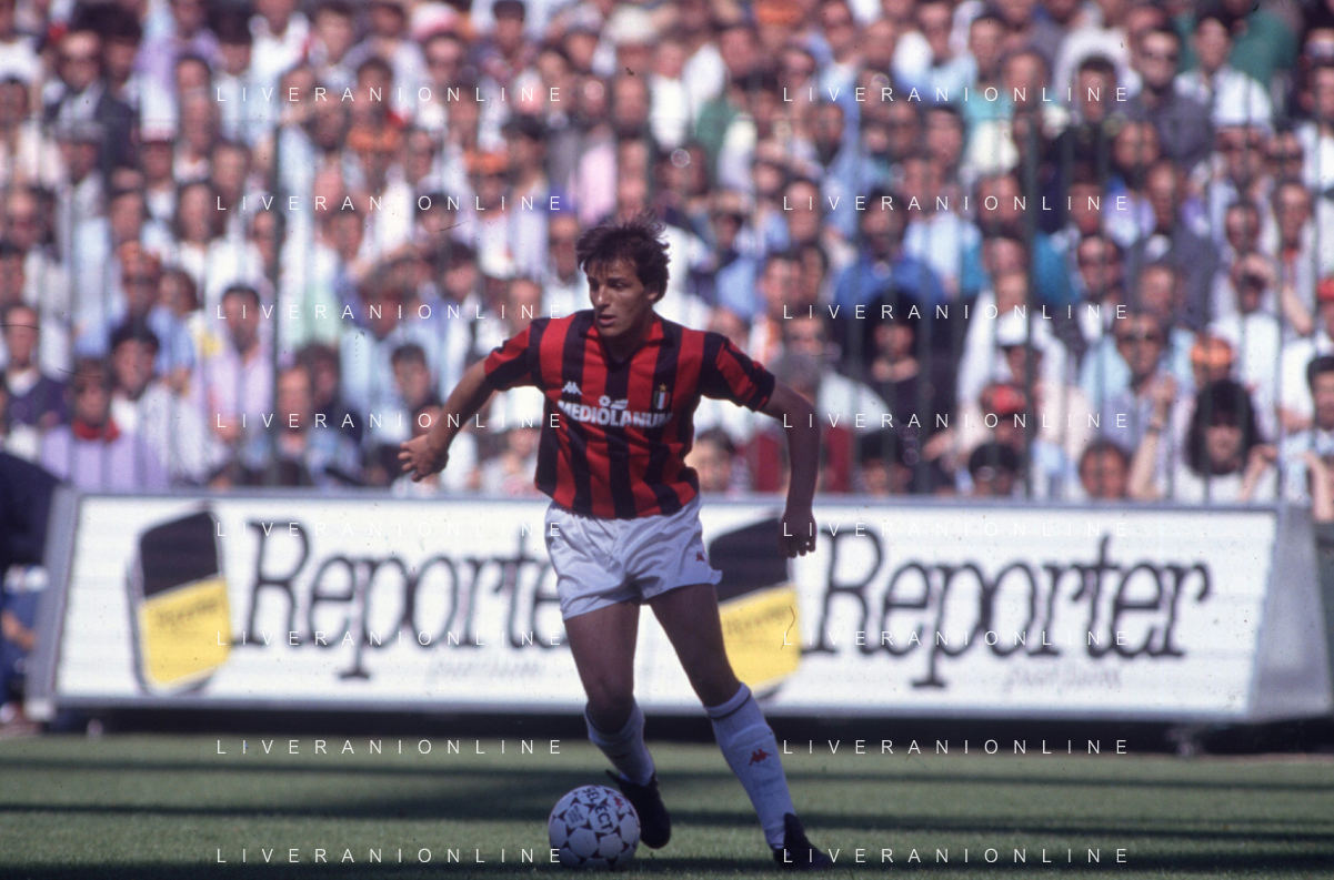 DIAP-RETROSPETTIVA CHRISTIAN LANTIGNOTTI CALCIATORE NELLA FOTO CHRISTIAN LANTIGNOTTI CON LA MAGLIA DEL MILAN NELL'ANNO 1988-1989 E ANGELO COLOMBO AG ALDO LIVERANI SAS