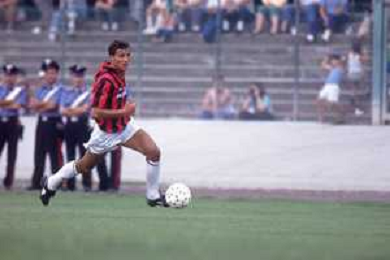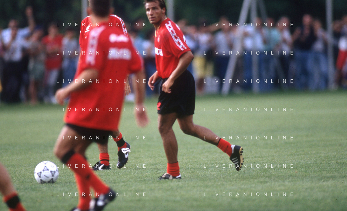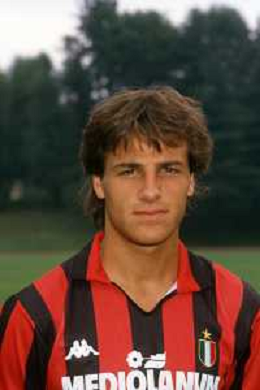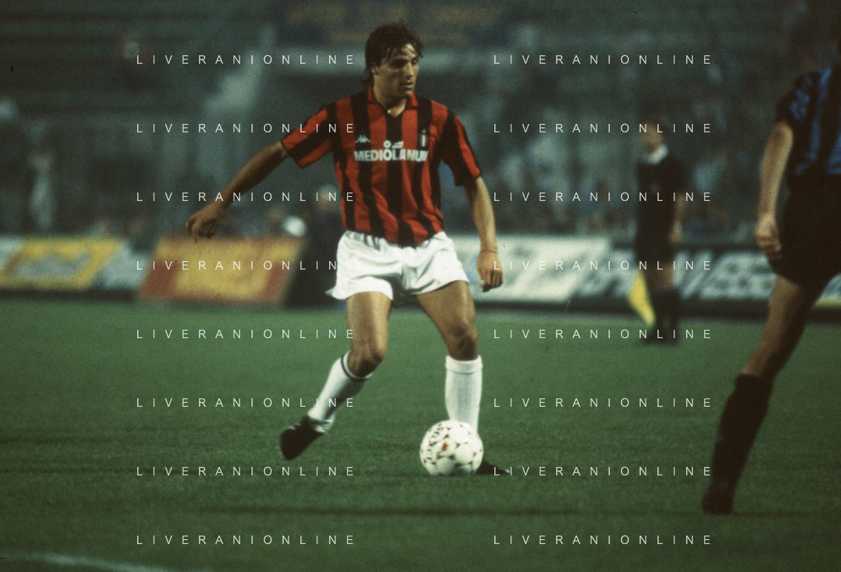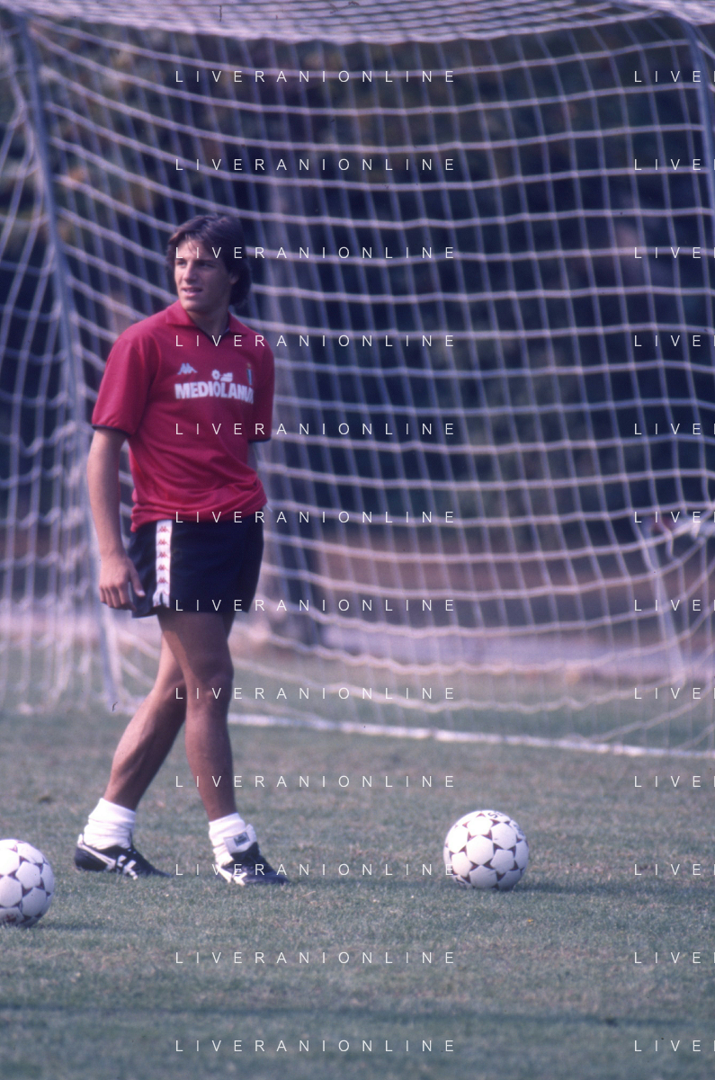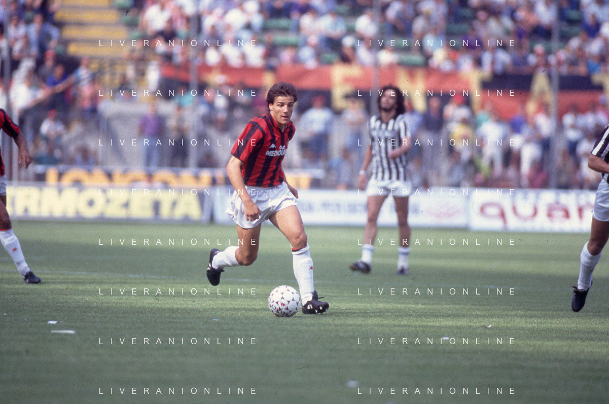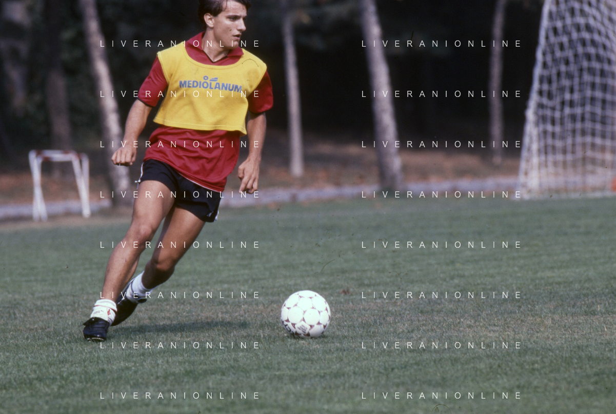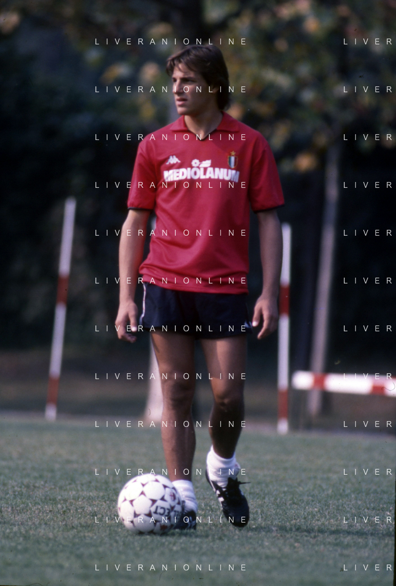 DIAP-RETROSPETTIVA CHRISTIAN LANTIGNOTTI CALCIATORE NELLA FOTO CHRISTIAN LANTIGNOTTI CON LA MAGLIA DEL MILAN NELL'ANNO 1988-1989 E ANGELO COLOMBO AG ALDO LIVERANI SAS