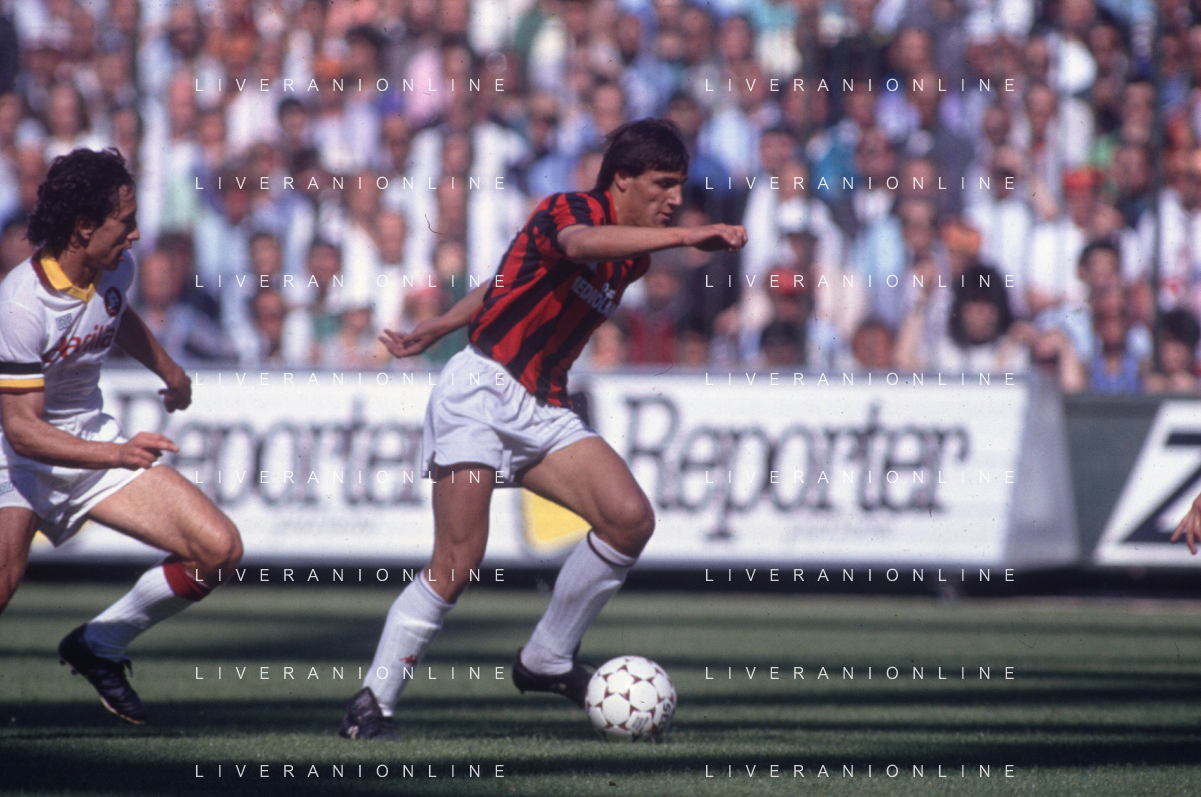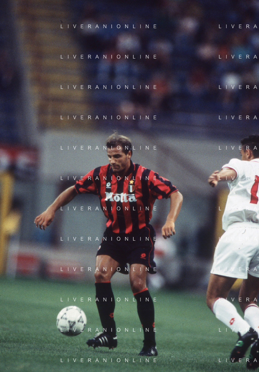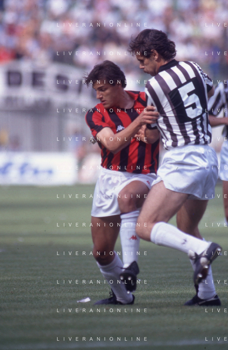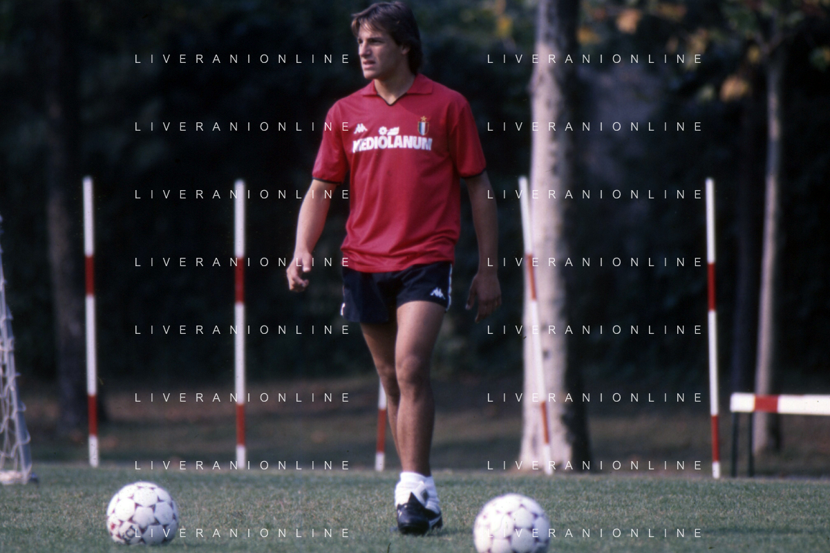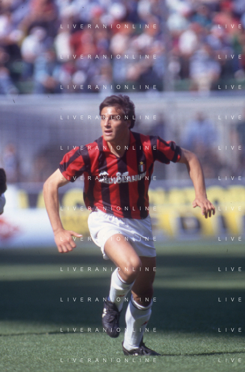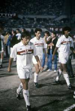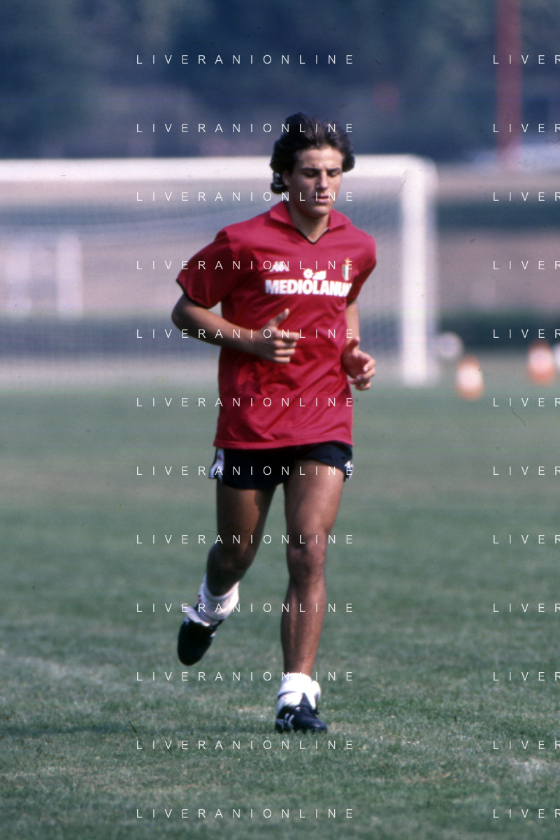 DIAP-RETROSPETTIVA CHRISTIAN LANTIGNOTTI CALCIATORE NELLA FOTO CHRISTIAN LANTIGNOTTI CON LA MAGLIA DEL MILAN NELL'ANNO 1988-1989 E ANGELO COLOMBO AG ALDO LIVERANI SAS