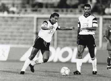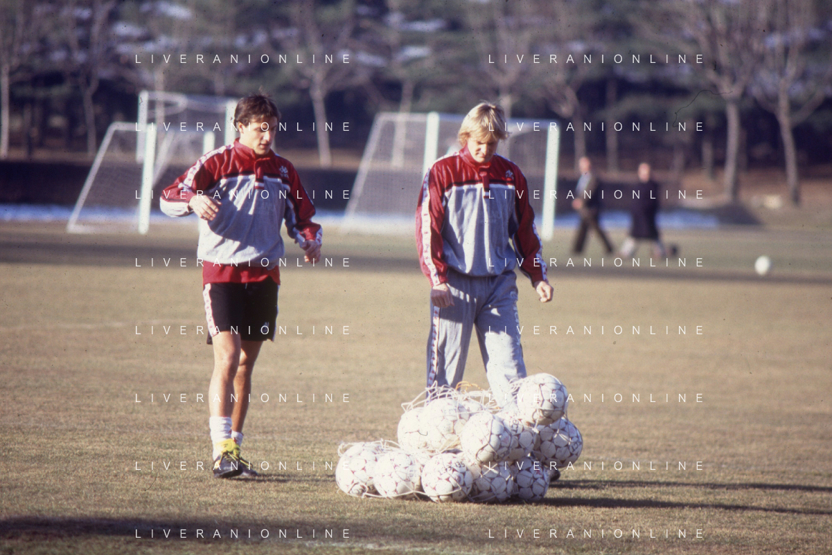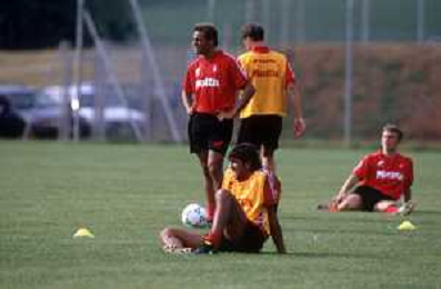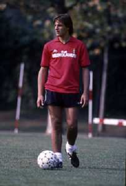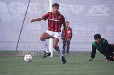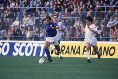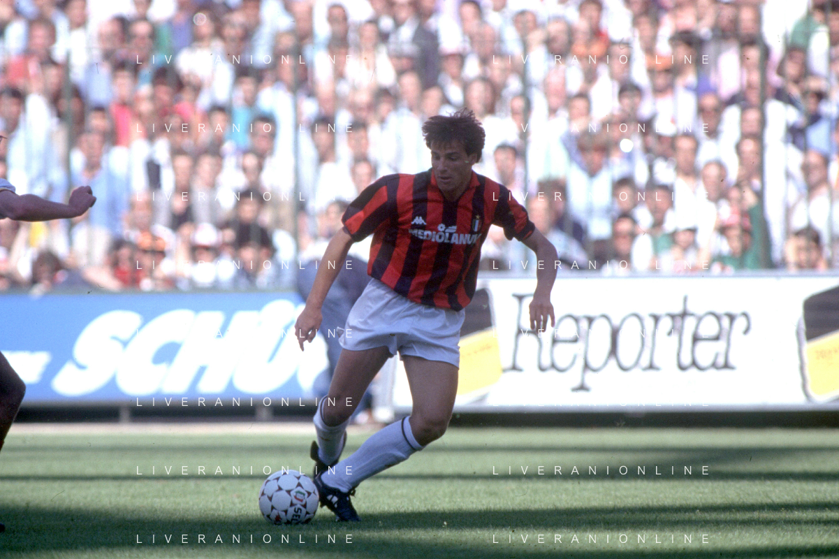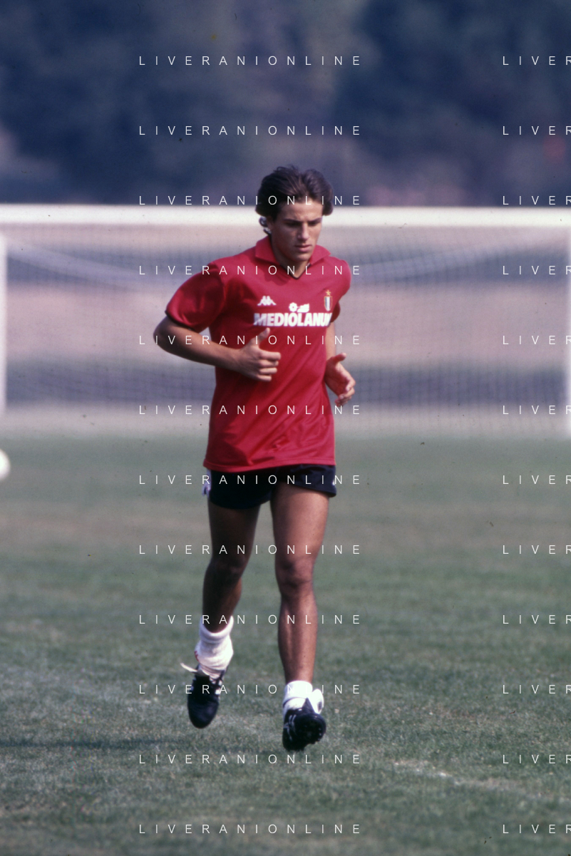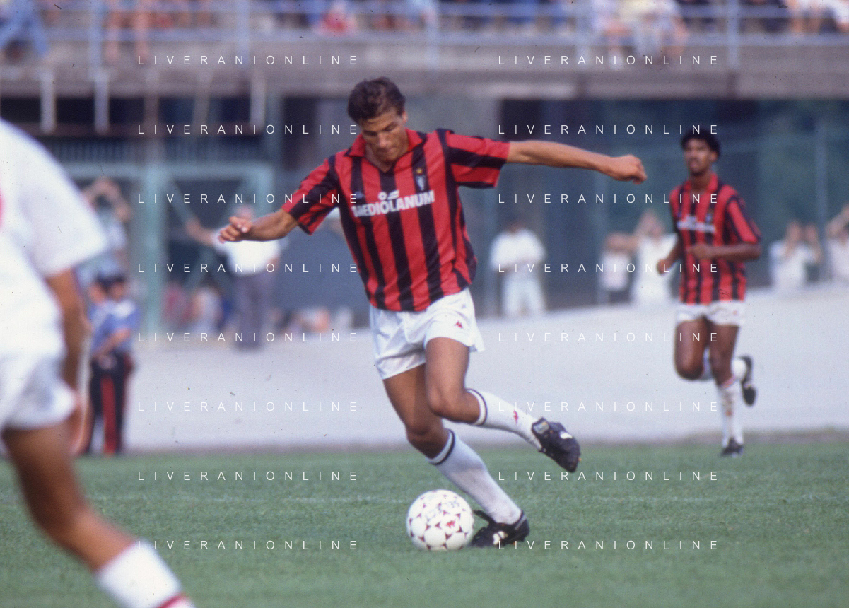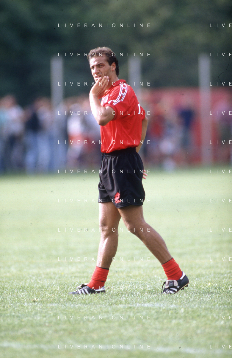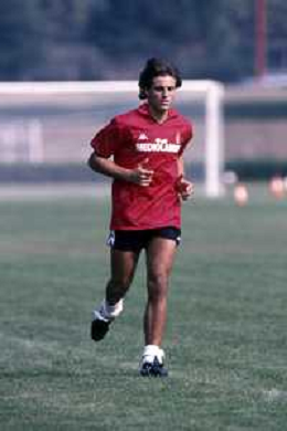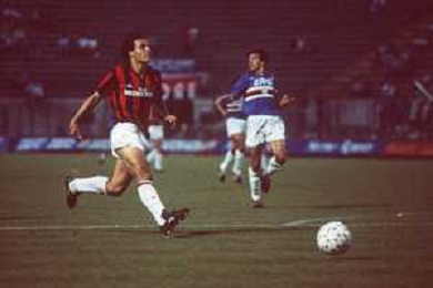 DIAP-RETROSPETTIVA CHRISTIAN LANTIGNOTTI CALCIATORE NELLA FOTO CHRISTIAN LANTIGNOTTI CON LA MAGLIA DEL MILAN NELL'ANNO 1988-1989 E ANGELO COLOMBO AG ALDO LIVERANI SAS