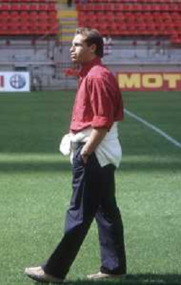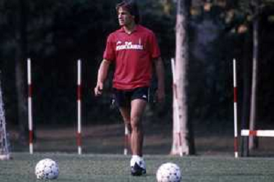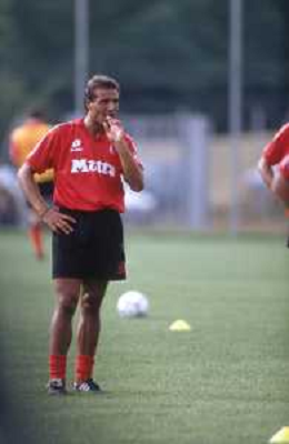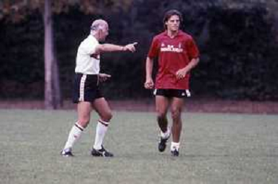 DIAP-RETROSPETTIVA CHRISTIAN LANTIGNOTTI CALCIATORE NELLA FOTO CHRISTIAN LANTIGNOTTI CON LA MAGLIA DEL MILAN NELL'ANNO 1988-1989 E ARRIGO SACCHI AG ALDO LIVERANI SAS