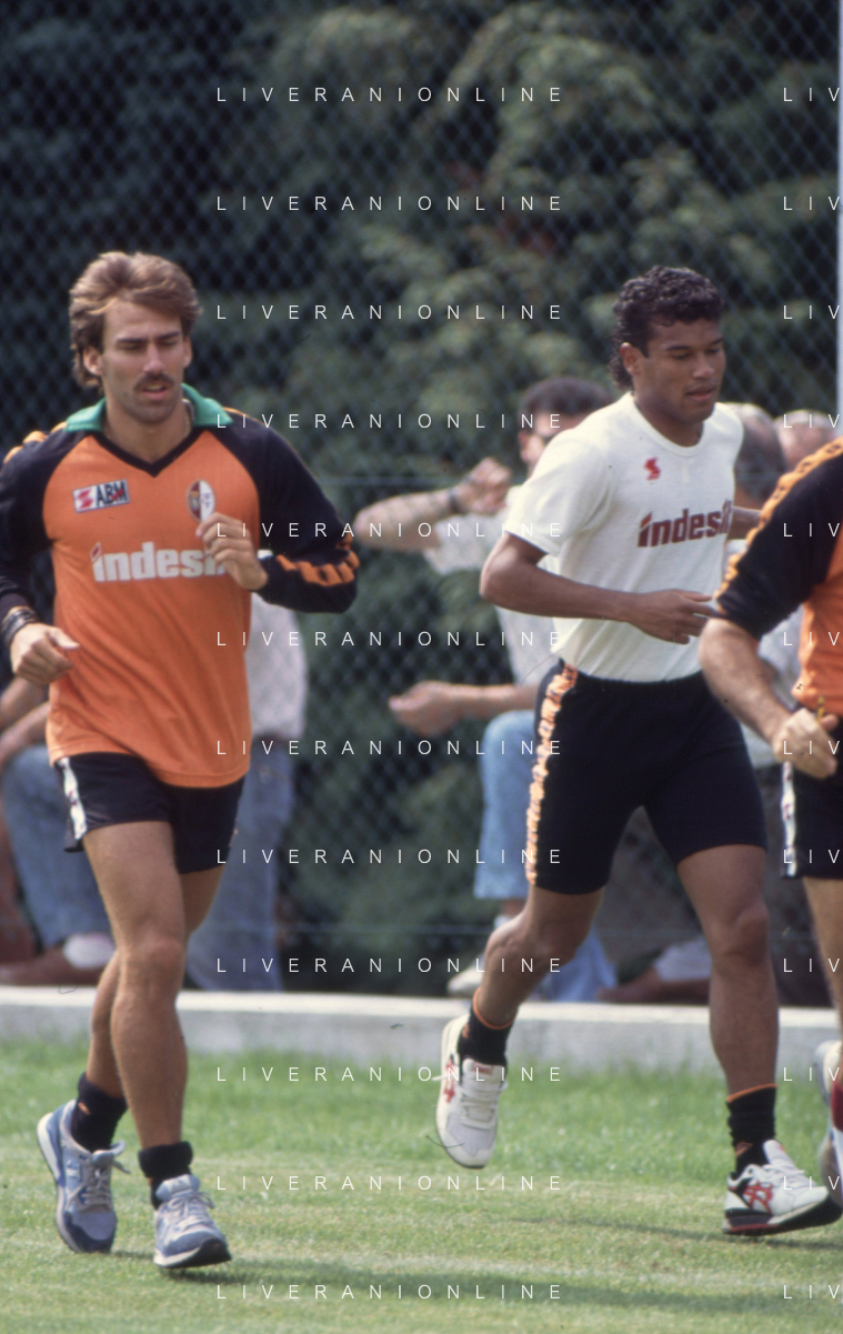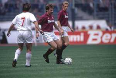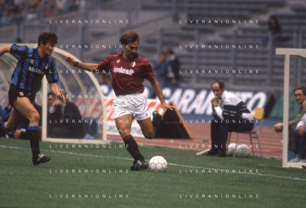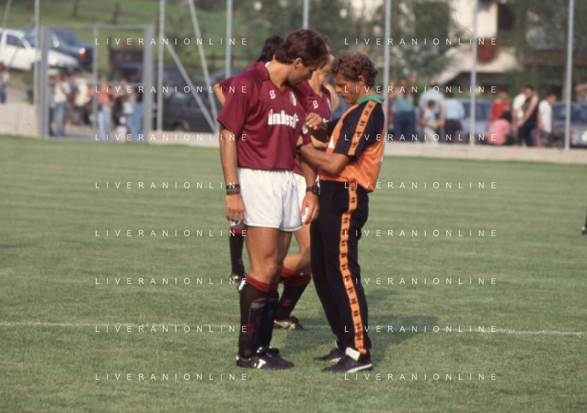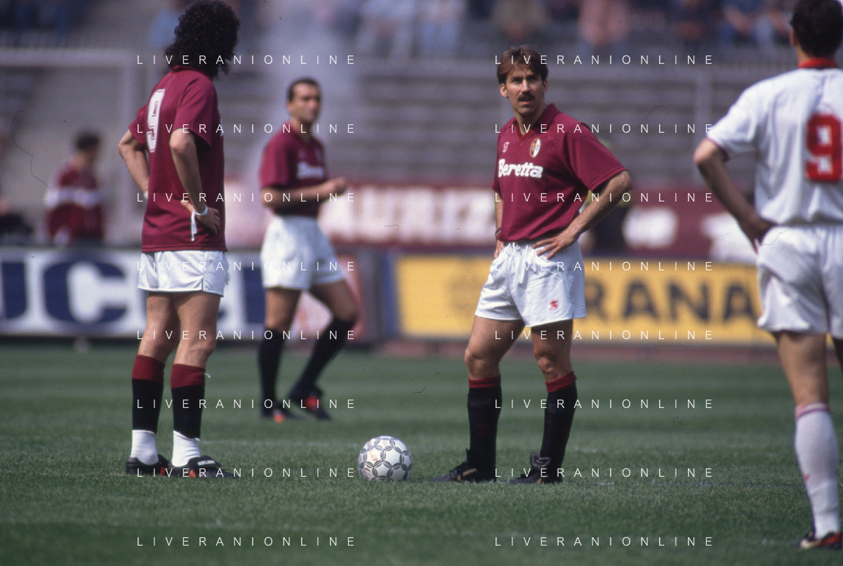DIAP-RETROSPETTIVA MARTIN VASQUEZ CALCIATORE NELLA FOTO MARTIN VASQUEZ CON LA MAGLIA DEL TORINO CALCIO NELL'ANNO 1991-1992 E WALTER CASAGRANDE AG ALDO LIVERANI SAS