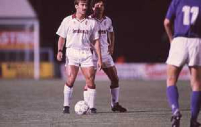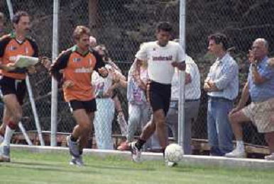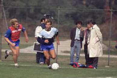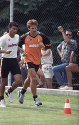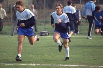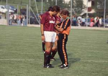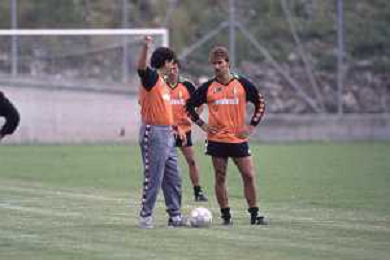 DIAP-RETROSPETTIVA MARTIN VASQUEZ CALCIATORE NELLA FOTO MARTIN VASQUEZ CON LA MAGLIA DEL TORINO CALCIO NELL'ANNO 1990-1991 CON IL MASSAGGIATORE SERGIO GIUNTA AG ALDO LIVERANI SAS