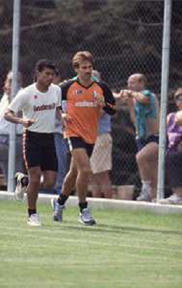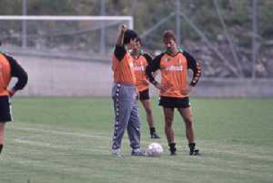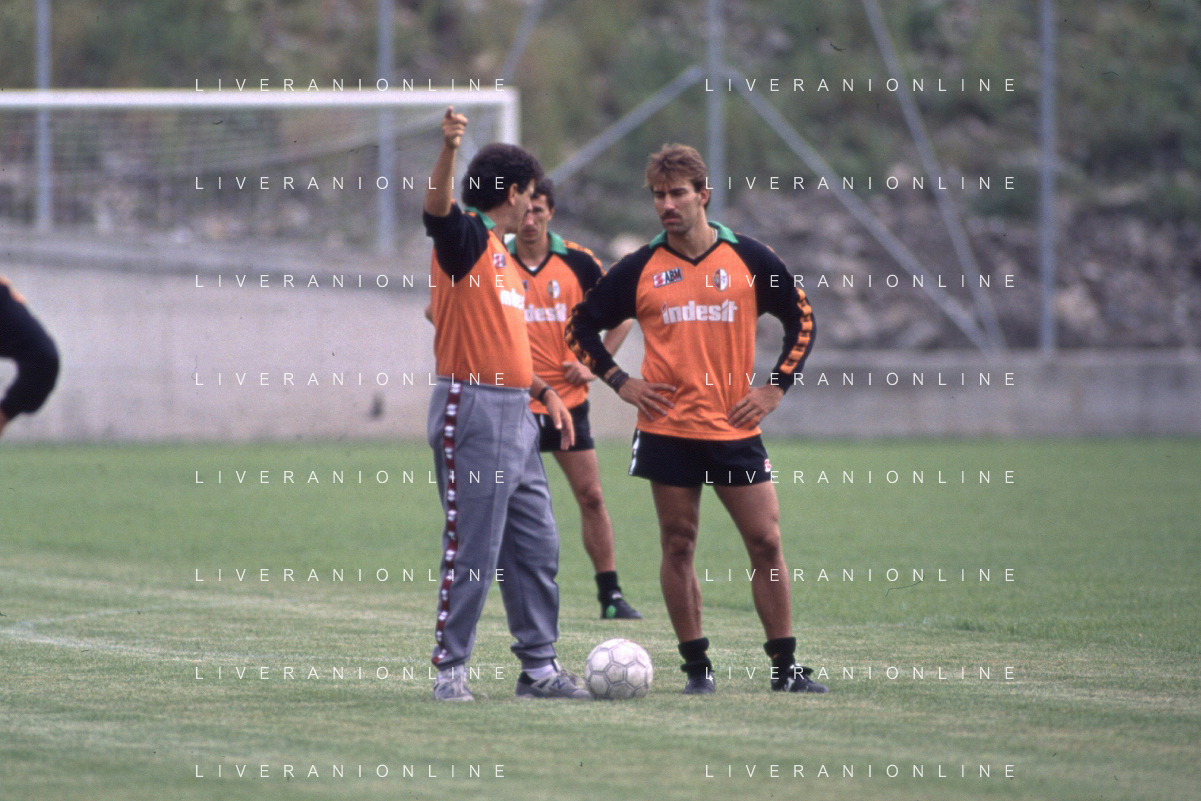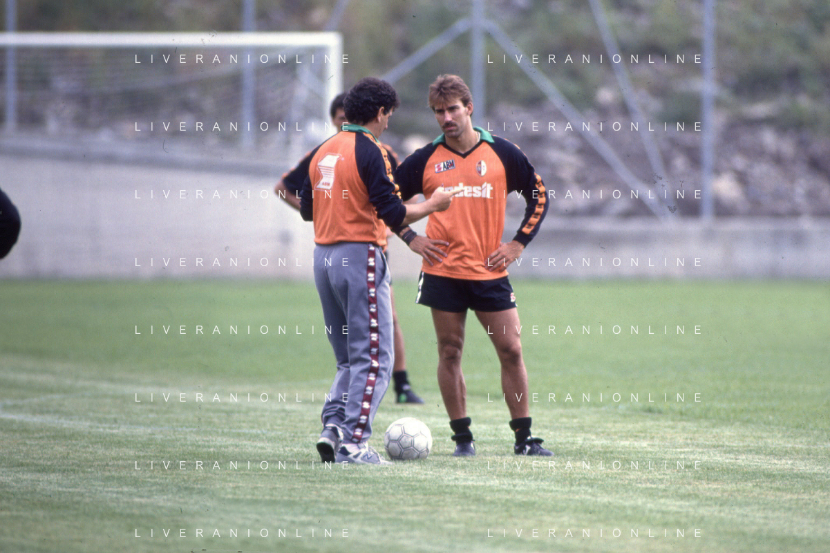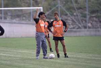 DIAP-RETROSPETTIVA MARTIN VASQUEZ CALCIATORE NELLA FOTO MARTIN VASQUEZ CON LA MAGLIA DEL TORINO CALCIO NELL'ANNO 1990-1991 CON EMILIANO MONDONICO AG ALDO LIVERANI SAS
