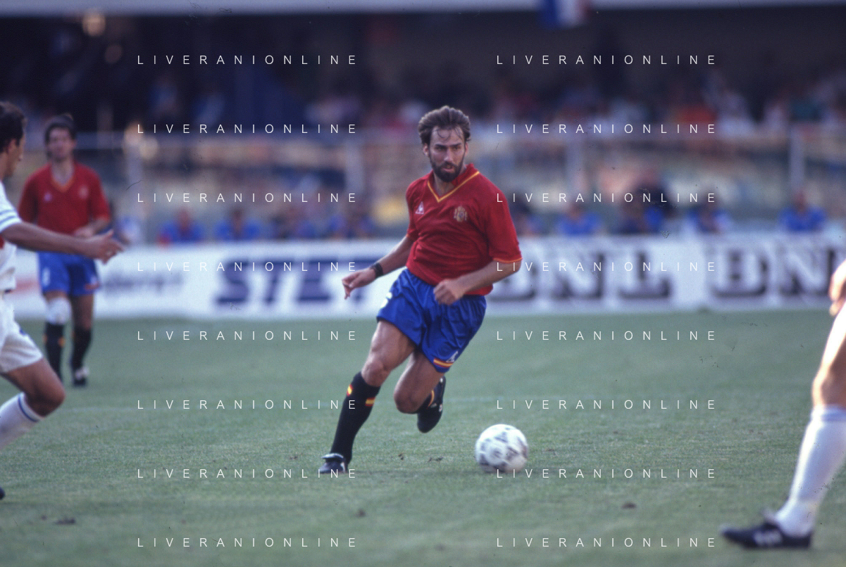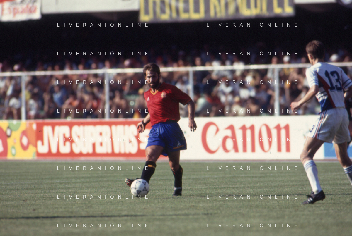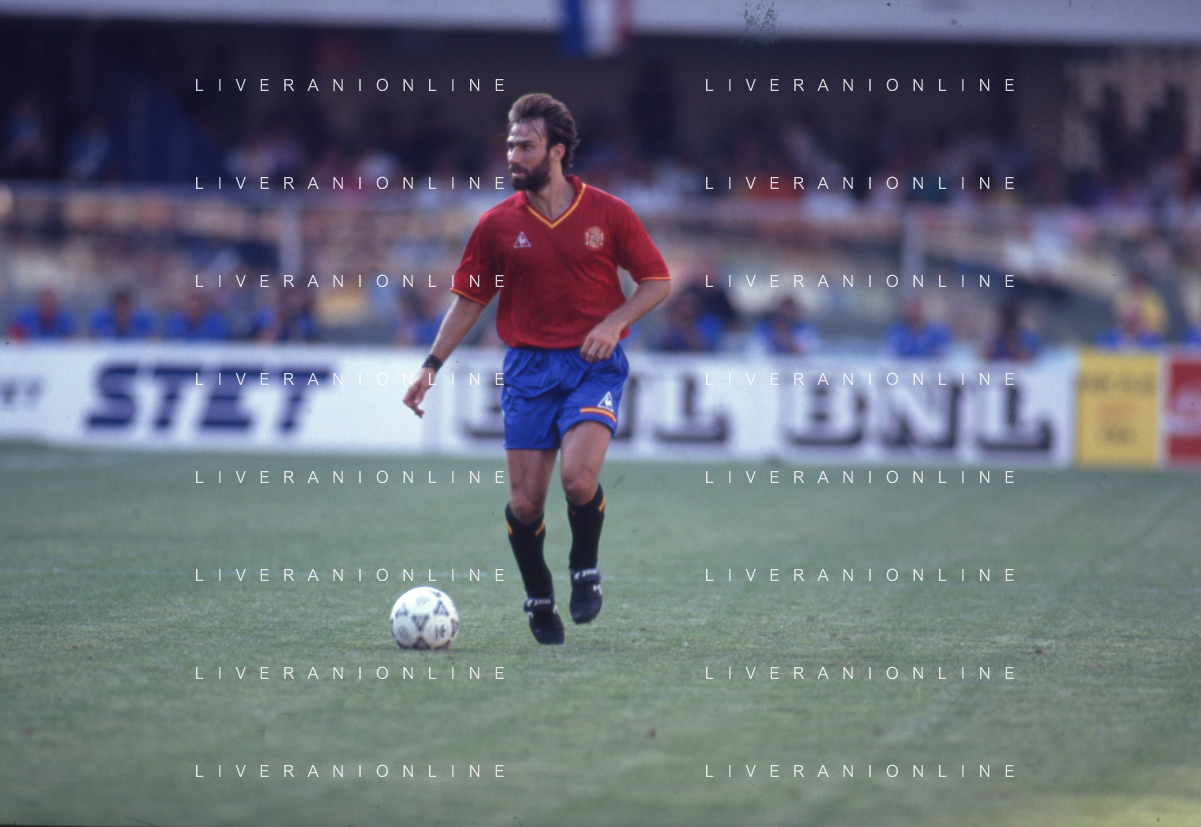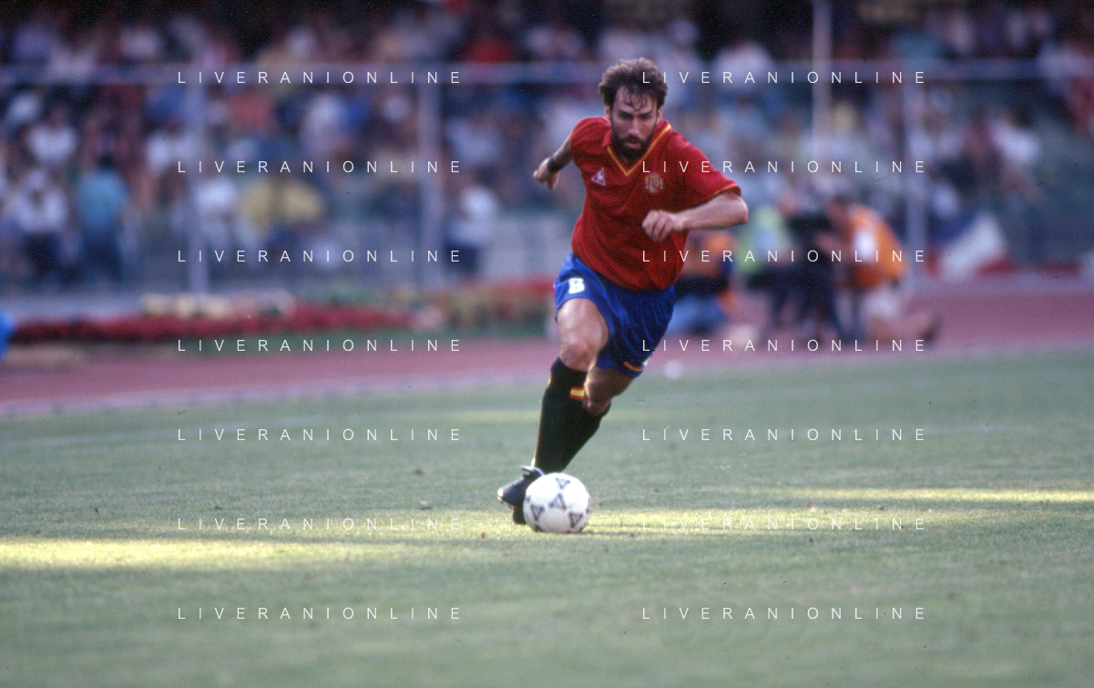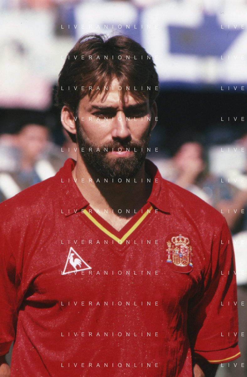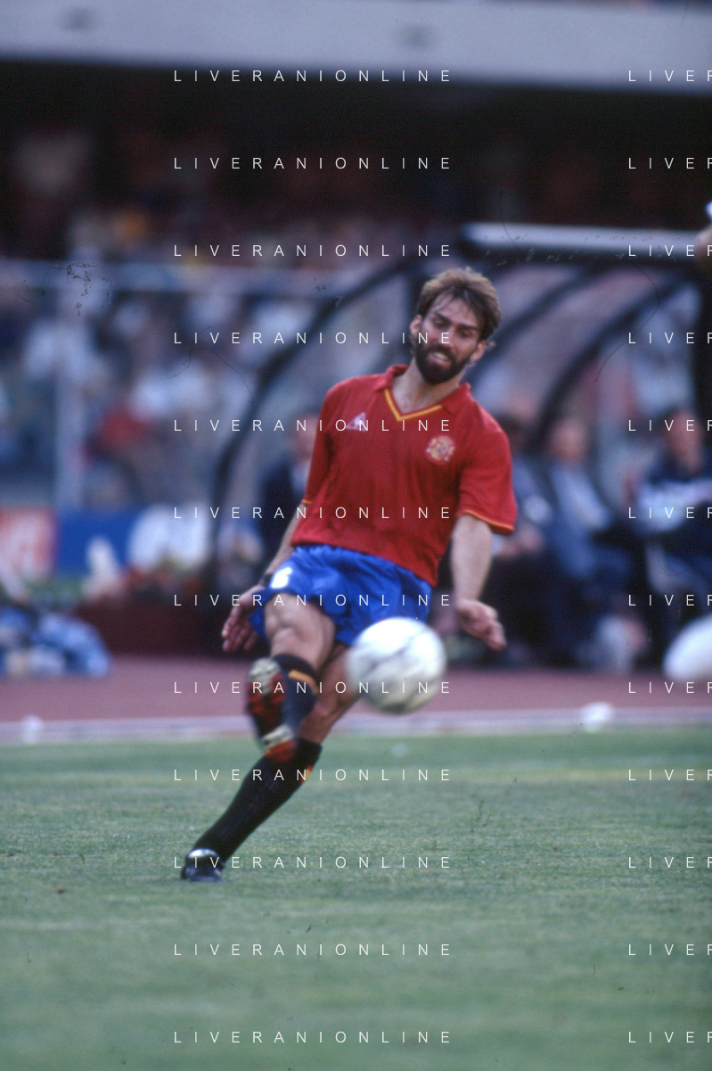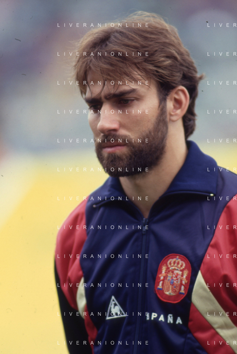 DIAP-RETROSPETTIVA MARTIN VASQUEZ CALCIATORE NELLA FOTO MARTIN VASQUEZ CON LA MAGLIA DELLA NAZIONALE DI CALCIO SPAGNA NELL'ANNO1990 AG ALDO LIVERANI SAS