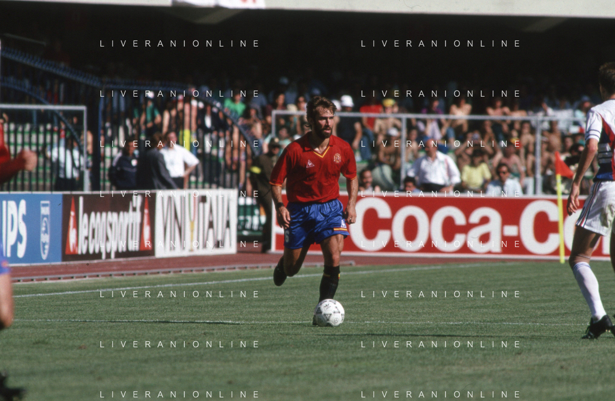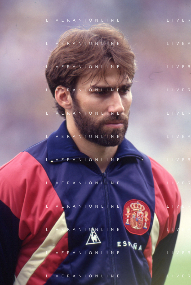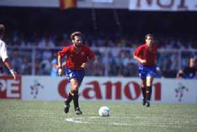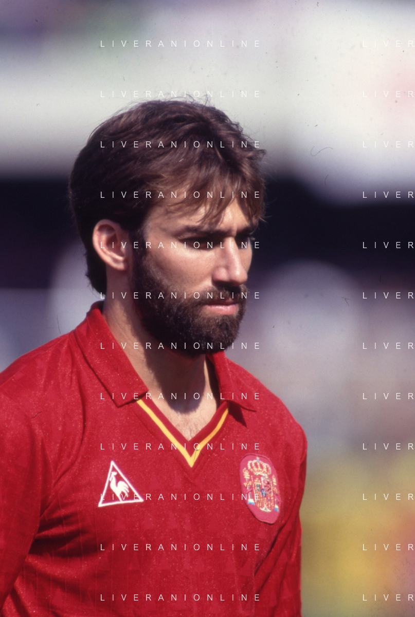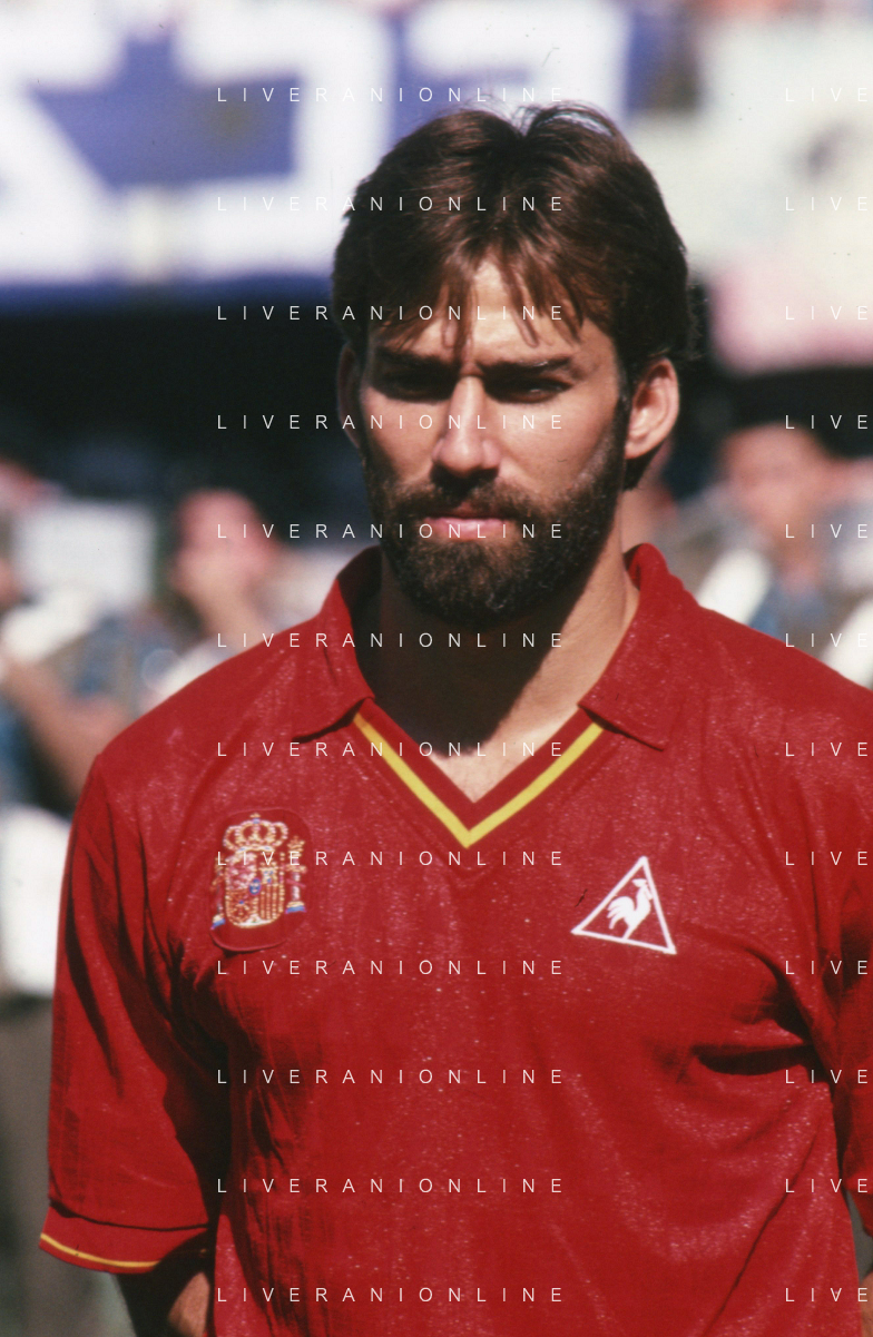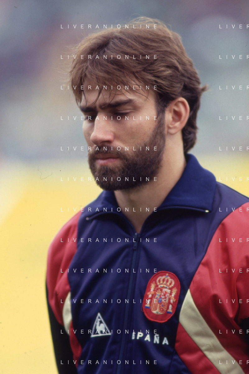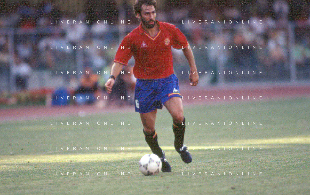 DIAP-RETROSPETTIVA MARTIN VASQUEZ CALCIATORE NELLA FOTO MARTIN VASQUEZ CON LA MAGLIA DELLA NAZIONALE DI CALCIO SPAGNA NELL'ANNO1990 AG ALDO LIVERANI SAS
