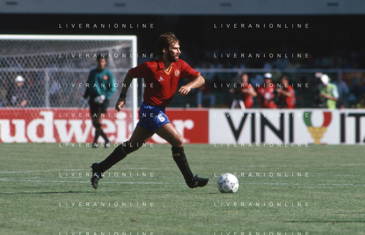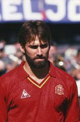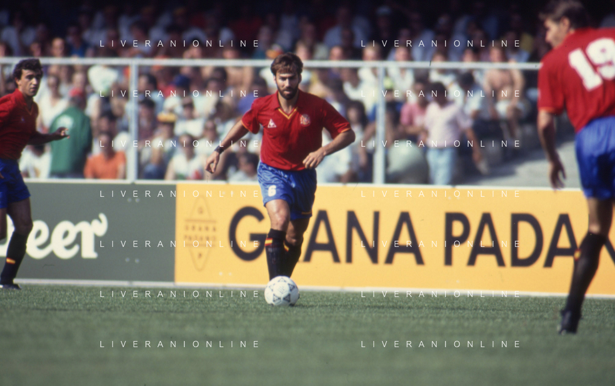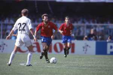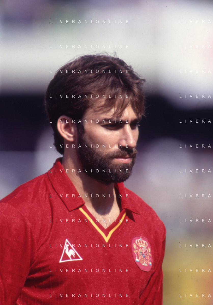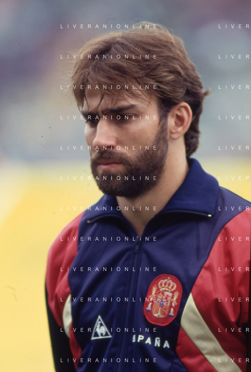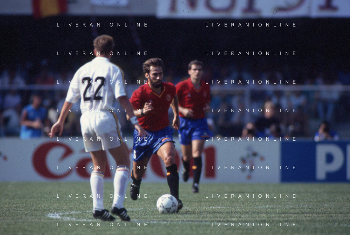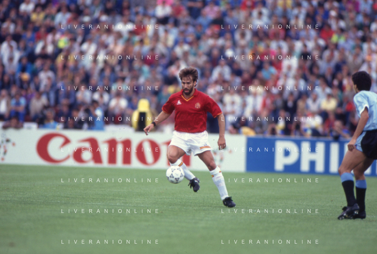 DIAP-RETROSPETTIVA MARTIN VASQUEZ CALCIATORE NELLA FOTO MARTIN VASQUEZ CON LA MAGLIA DELLA NAZIONALE DI CALCIO SPAGNA NELL'ANNO1990 AG ALDO LIVERANI SAS