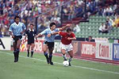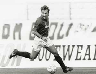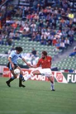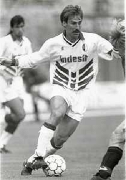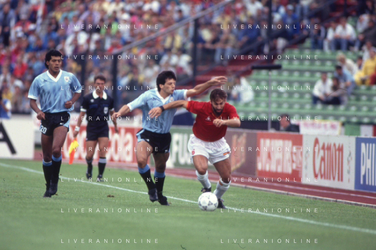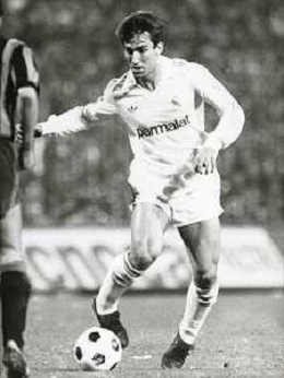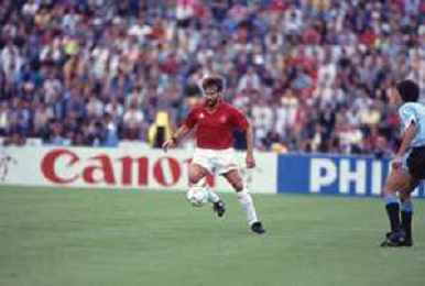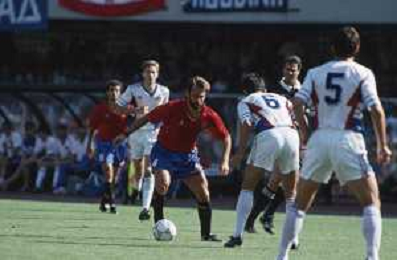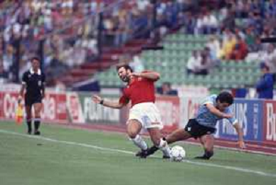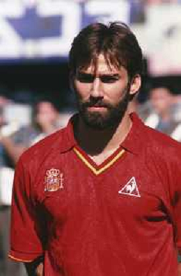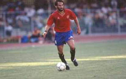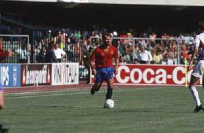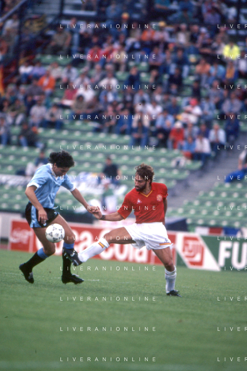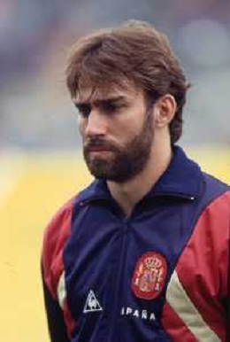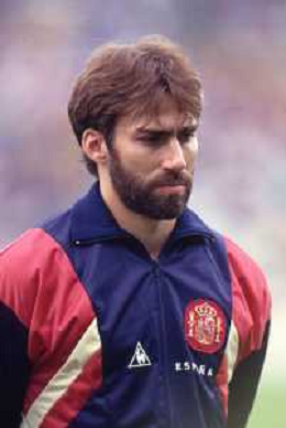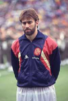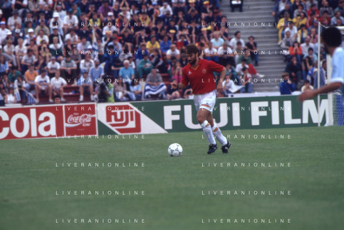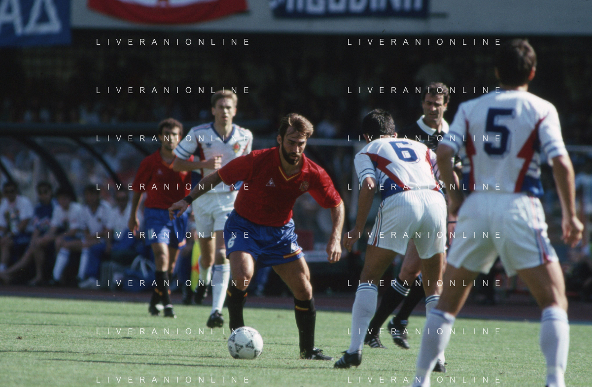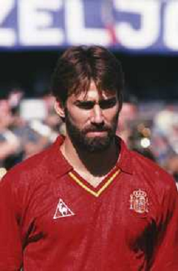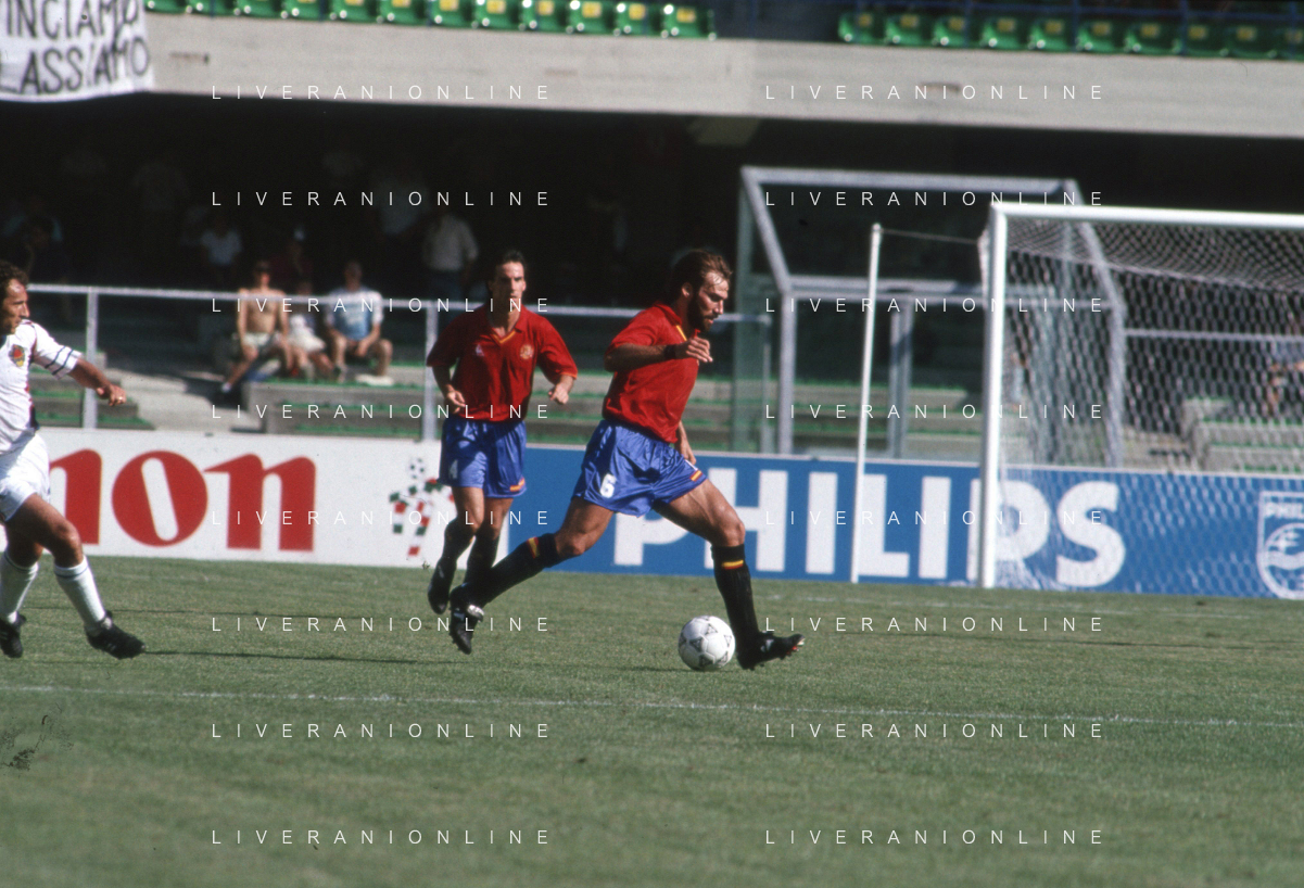 DIAP-RETROSPETTIVA MARTIN VASQUEZ CALCIATORE NELLA FOTO MARTIN VASQUEZ CON LA MAGLIA DELLA NAZIONALE DI CALCIO SPAGNA NELL'ANNO1990 AG ALDO LIVERANI SAS