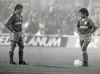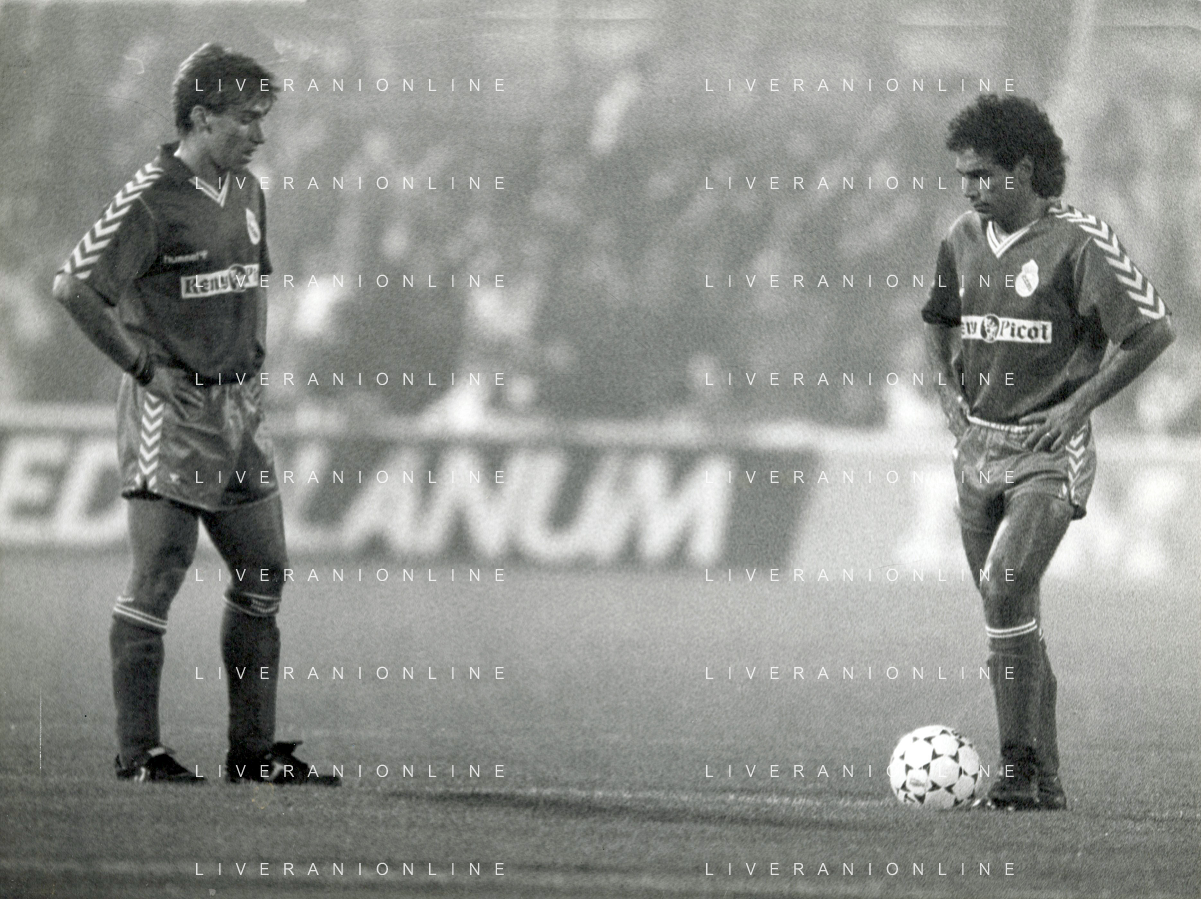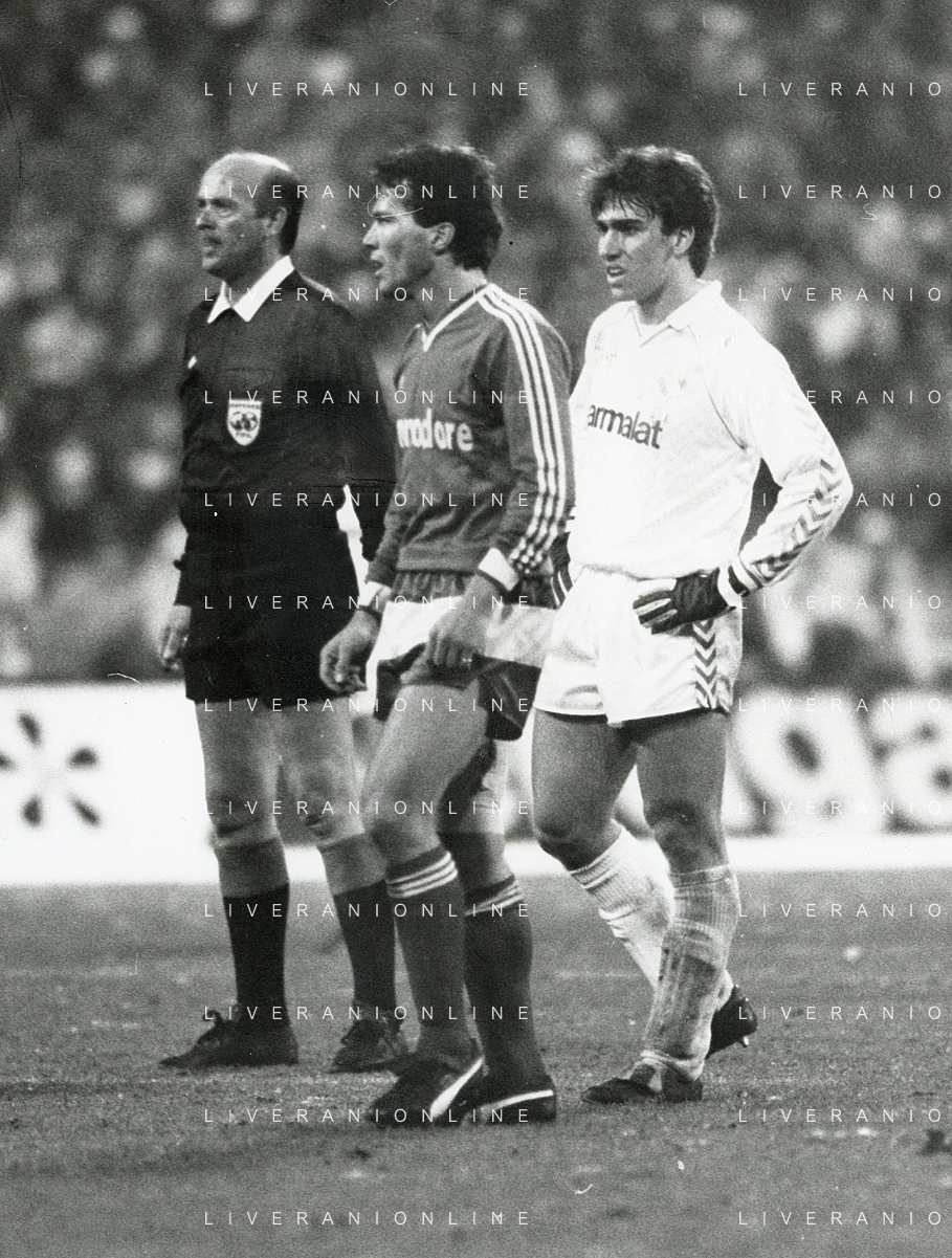 ST-RETROSPETTIVA MARTIN VASQUEZ CALCIATORE NELLA FOTO MARTIN VASQUEZ CON LA MAGLIA DEL REAL MADRID CON L'ARBITRP PAOLO CASARIN E LOTHAR MATTHAUS IN BAYERN MONACO-REAL MADRID AG ALDO LIVERANI SAS