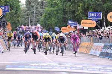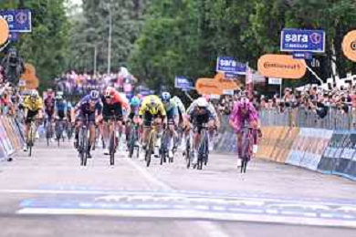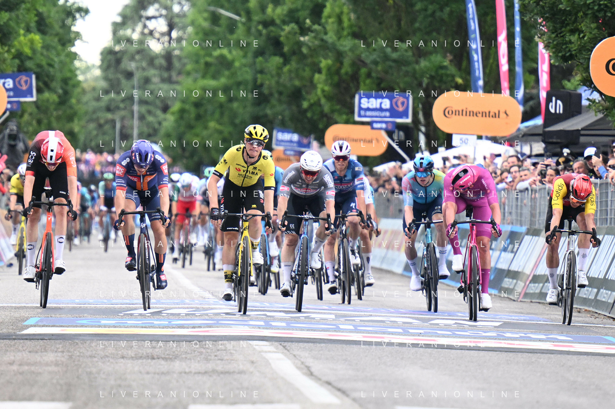 22-05-2025 Giro D'italia; Tappa 12 Modena - Viadana; 2025, Visma - Lease A Bike; 2025, Picnic - Postnl; 2025, Alpecin - Deceuninck; 2025, Lidl - Trek; 2025, Ineos Grenadiers; Kooij, Olav; Van Uden, Casper; Groves, Kaden; Pedersen, Mads; Turner, Ben; Viadana; ©SIROTTI - AGENZIA ALDO LIVERANI SAS