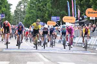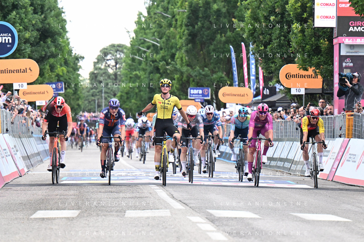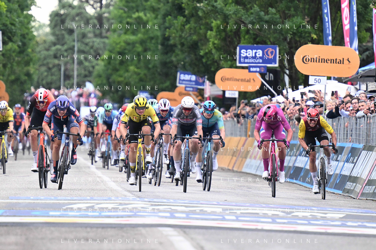 22-05-2025 Giro D'italia; Tappa 12 Modena - Viadana; 2025, Visma - Lease A Bike; 2025, Picnic - Postnl; 2025, Alpecin - Deceuninck; 2025, Lidl - Trek; Kooij, Olav; Van Uden, Casper; Groves, Kaden; Pedersen, Mads; Viadana; ©SIROTTI - AGENZIA ALDO LIVERANI SAS