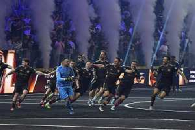 TVMV-Torino 22.05.2025 Inalpi Arena @Manuela Viganti /Ag. Aldo Liverani sas Kings League European Finals 2025 Nella foto: esultanza francesco caputo vincitore con la TRM FC della kings league italia ©TVMV Viganti - AGENZIA ALDO LIVERANI SAS