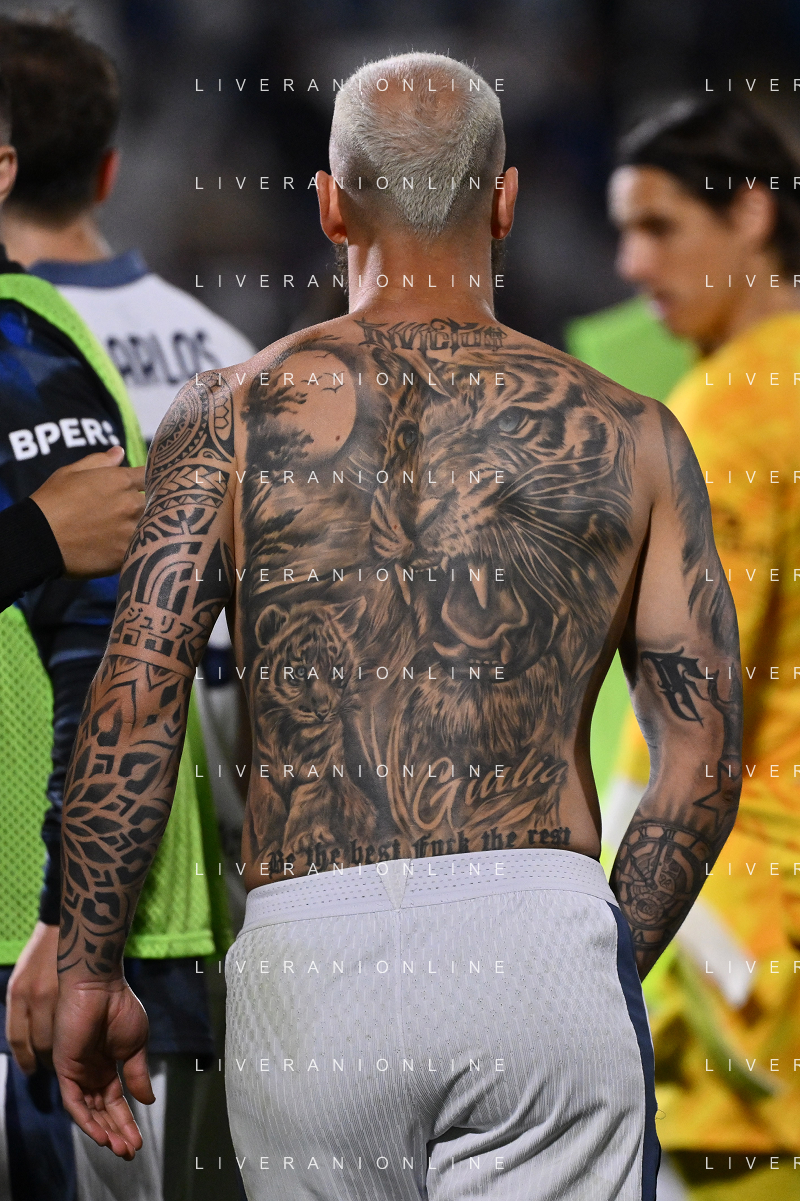Como vs Inter nella foto tatuaggio Federico Dimarco (Inter) Como 23-05-2025 Stadio Giuseppe Sinigaglia Campionato Serie A Enilive - 38a giornata foto Roberto Garavaglia/Agenzia Aldo Liverani sas