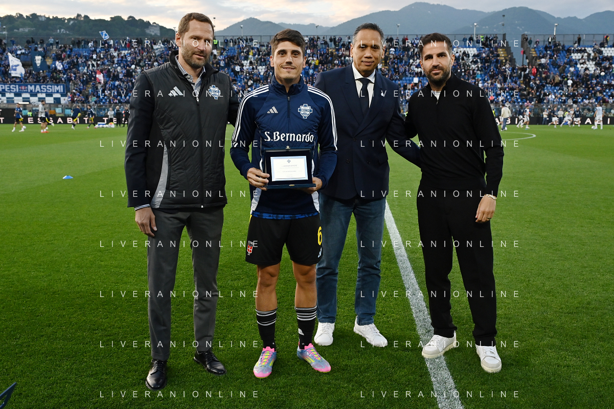 Como vs Inter nella foto da SX Carlalberto Ludi direttore generale e sportivo Como, Alessio Iovine (Como), Mirwan Suwarso presidente Como e Cesc Fabregas allenatore Como Como 23-05-2025 Stadio Giuseppe Sinigaglia Campionato Serie A Enilive - 38a giornata foto Roberto Garavaglia/Agenzia Aldo Liverani sas