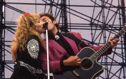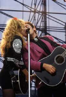 NEG-RETROSPETTIVA BRUCE SPRINGTEEN CANTANTE NELLA FOTO BRUCE SPRINGSTEEN AL CONCERTO DI TORINO IL GIORNO 11-06-1988 CON PATTY SCIALFA AG CONTROLUCE-AG ALDO LIVERANI SAS