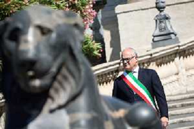 Roma - 25 Maggio 2025 Papa Leone XIV incontra il Sindaco di Roma Roberto Gualtieri ai piedi del Campidoglio Nella Foto: Roberto Gualtieri Andrea Bracaglia - AGENZIA ALDO LIVERANI SAS