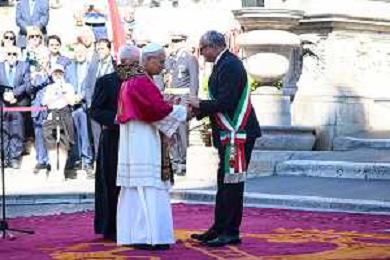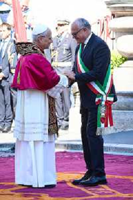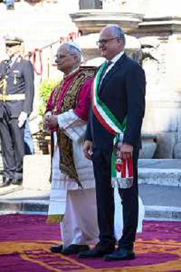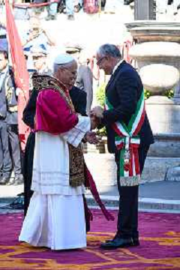 Roma - 25 Maggio 2025 Papa Leone XIV incontra il Sindaco di Roma Roberto Gualtieri ai piedi del Campidoglio Nella Foto: Papa Leone XIV - Roberto Gualtieri Andrea Bracaglia - AGENZIA ALDO LIVERANI SAS