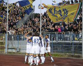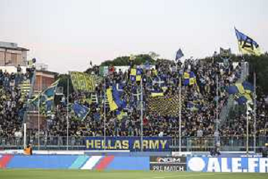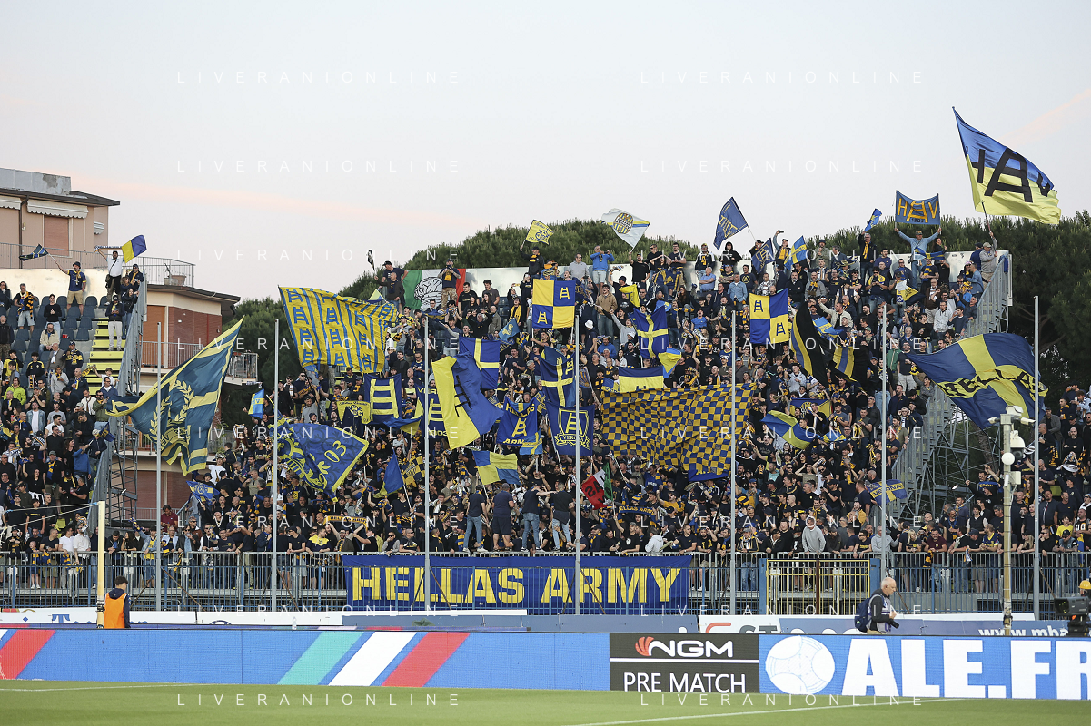Hellas Veorna fans show their support at the end of Empoli FC vs Hellas Verona FC, 38° Serie A Enilive 2024-25 game at Carlo Castellani stadium in Empoli (FI), Italy, on May 25, 2025. (Photo by Davide Casentini) - AGENZIA ALDO LIVERANI SAS