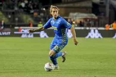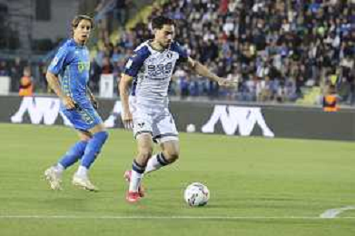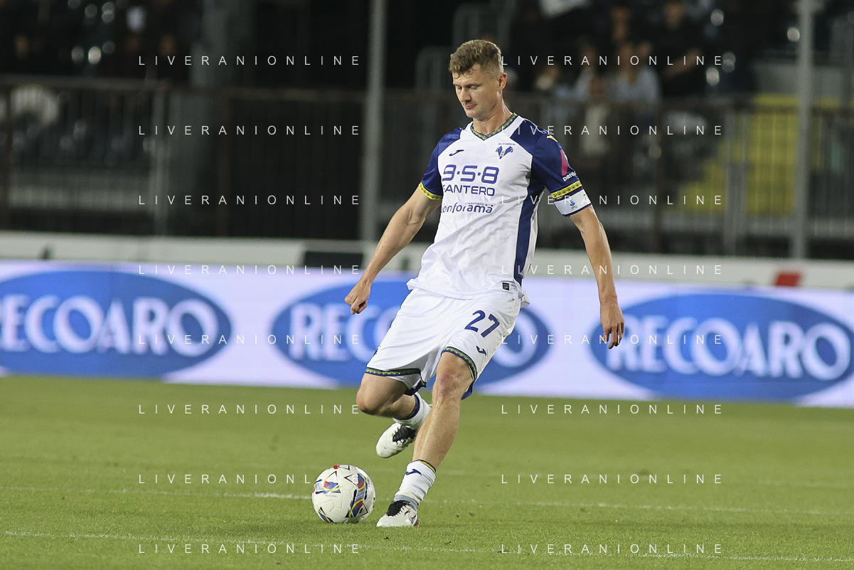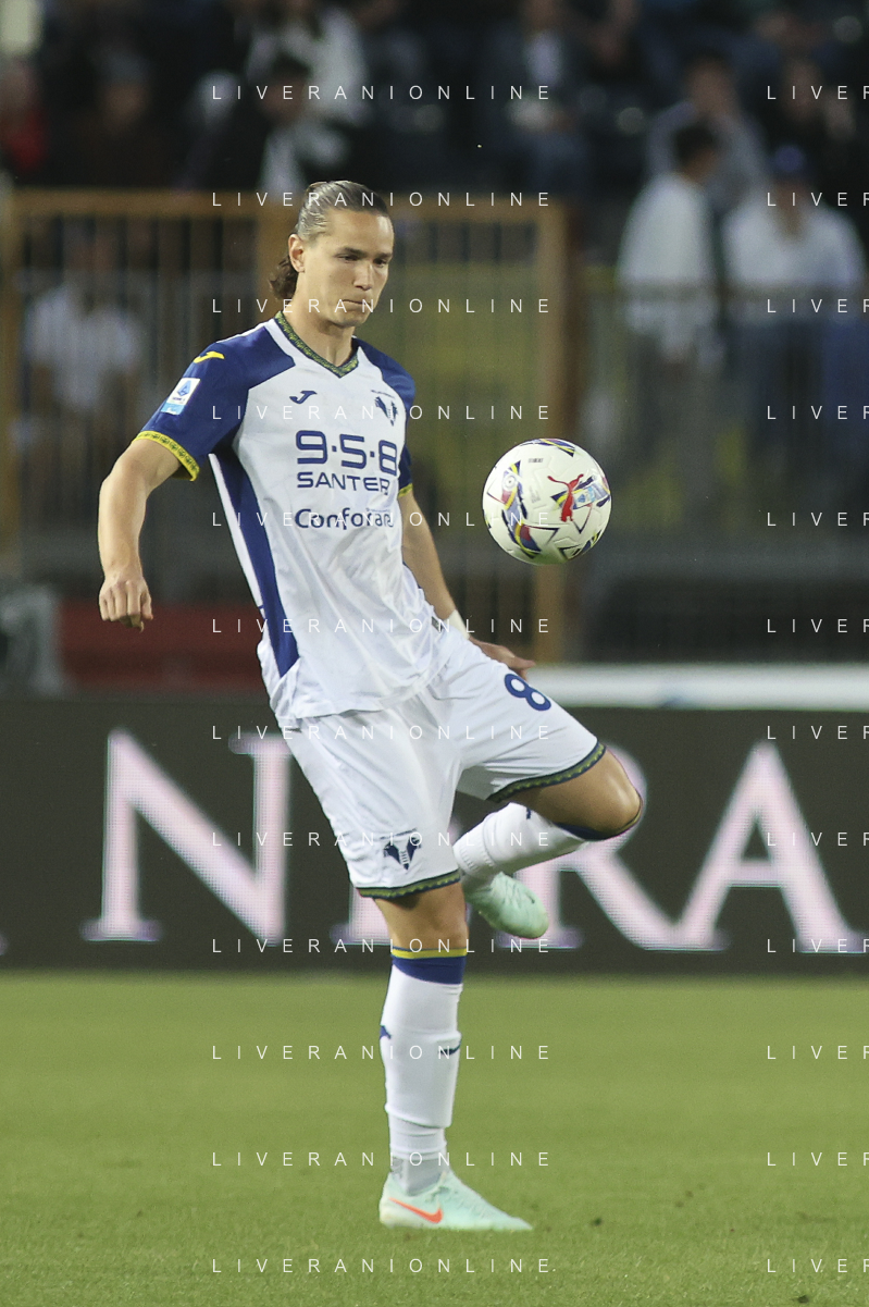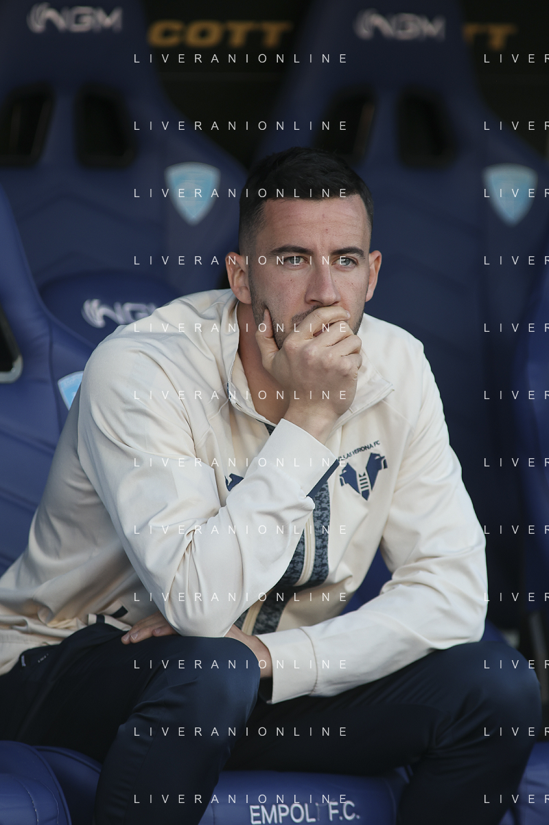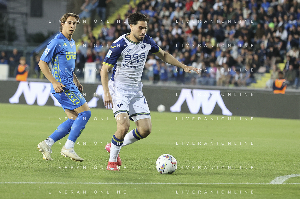 Pawel Dawidowicz of Hellas Verona FC play the ball during Empoli FC vs Hellas Verona FC, 38° Serie A Enilive 2024-25 game at Carlo Castellani stadium in Empoli (FI), Italy, on May 25, 2025. (Photo by Davide Casentini)- AGENZIA ALDO LIVERANI SAS