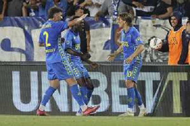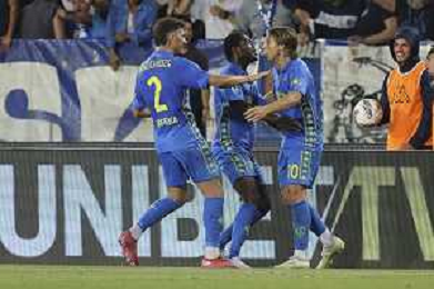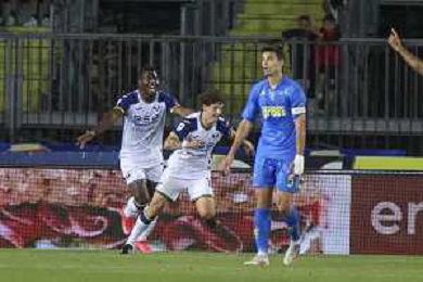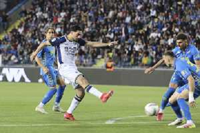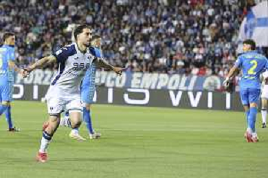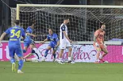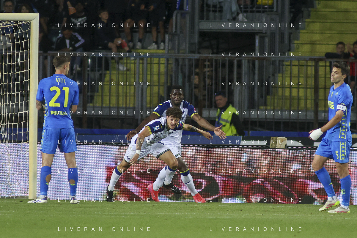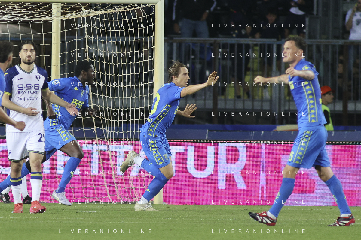 Jacopo Fazzini of Empoli FC scores a goal during Empoli FC vs Hellas Verona FC, 38° Serie A Enilive 2024-25 game at Carlo Castellani stadium in Empoli (FI), Italy, on May 25, 2025. (Photo by Davide Casentini)- AGENZIA ALDO LIVERANI SAS