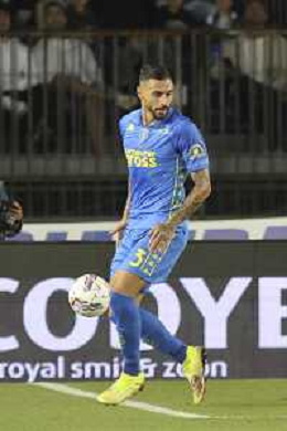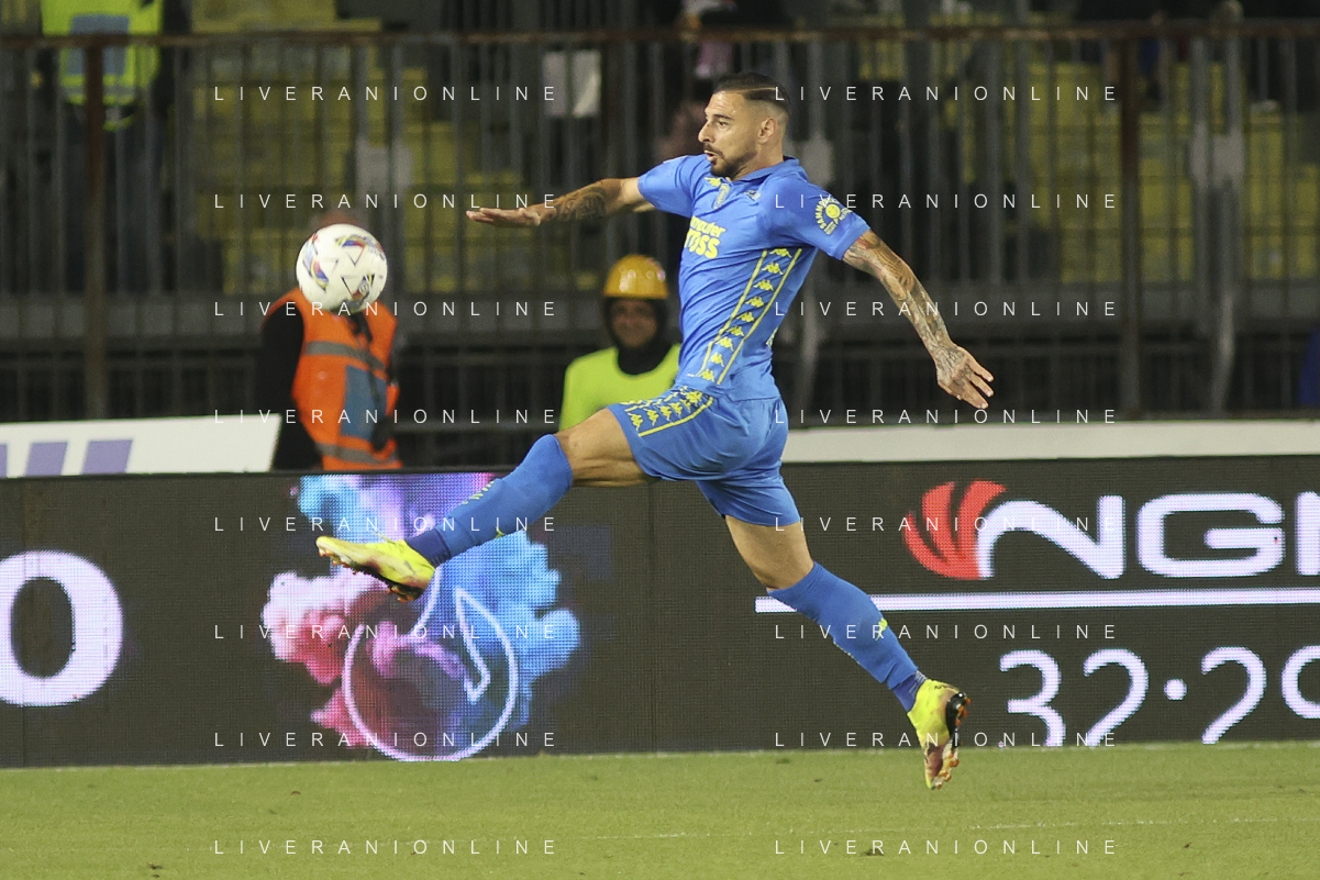 Giuseppe Pezzella of Empoli FC play the ball during Empoli FC vs Hellas Verona FC, 38° Serie A Enilive 2024-25 game at Carlo Castellani stadium in Empoli (FI), Italy, on May 25, 2025. (Photo by Davide Casentini)- AGENZIA ALDO LIVERANI SAS