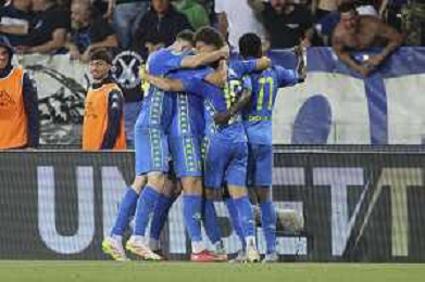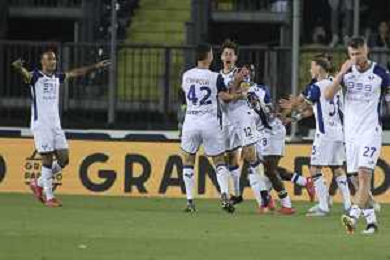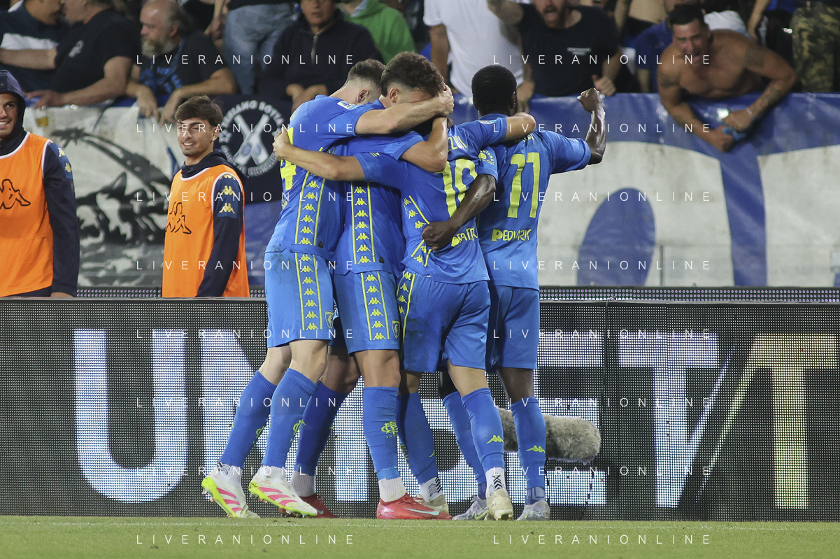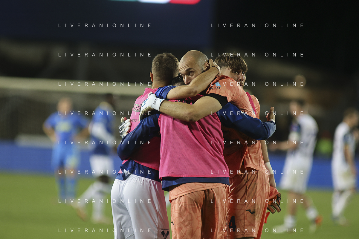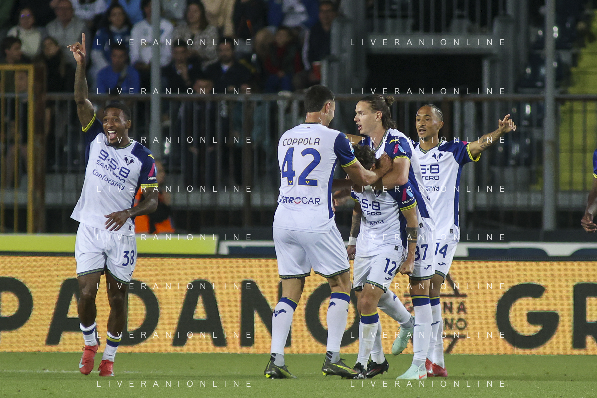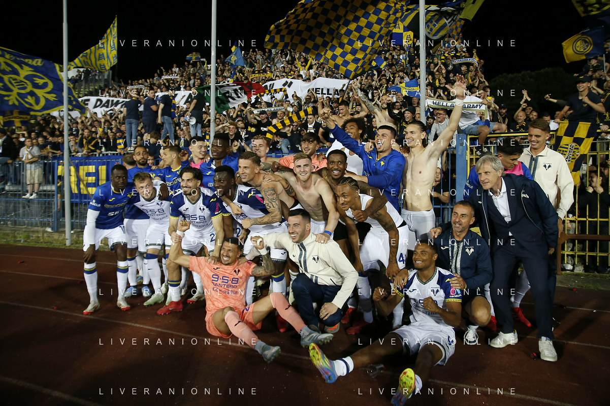 Hellas Veorna players celebrate the victory at the end of Empoli FC vs Hellas Verona FC, 38° Serie A Enilive 2024-25 game at Carlo Castellani stadium in Empoli (FI), Italy, on May 25, 2025. (Photo by Davide Casentini) - AGENZIA ALDO LIVERANI SAS