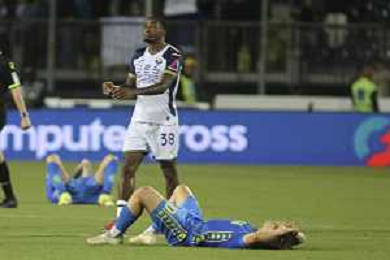 Jacopo Fazzini of Empoli FC expresses disappointment at the end of Empoli FC vs Hellas Verona FC, 38° Serie A Enilive 2024-25 game at Carlo Castellani stadium in Empoli (FI), Italy, on May 25, 2025. (Photo by Davide Casentini) - AGENZIA ALDO LIVERANI SAS