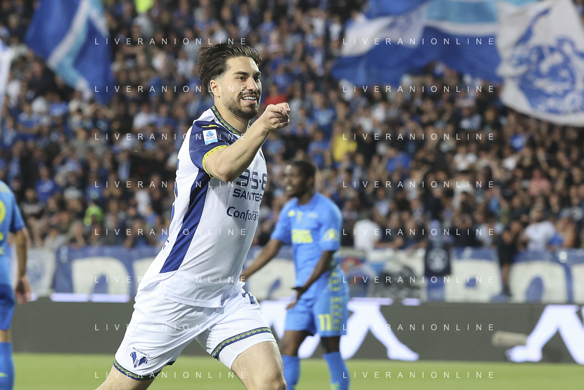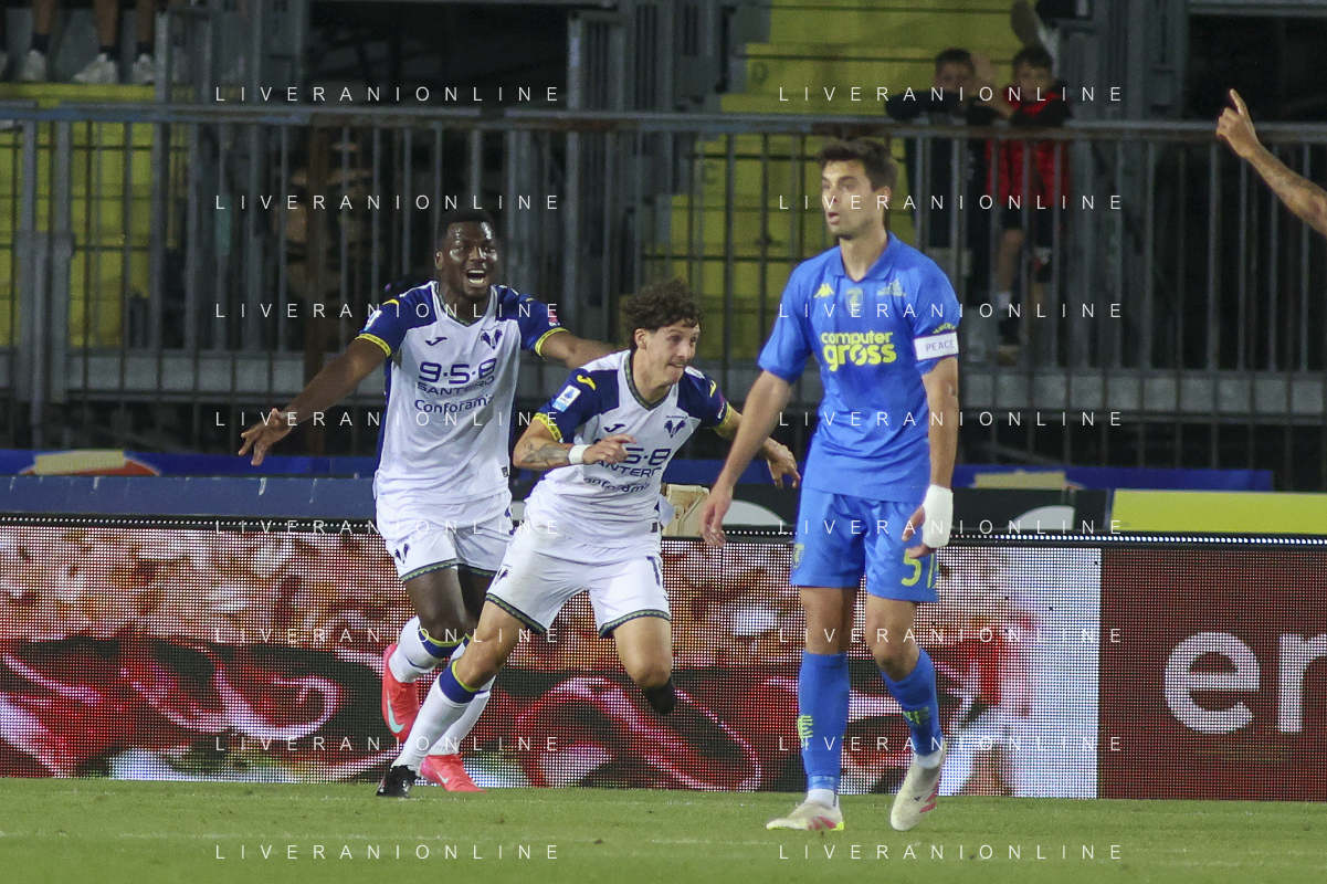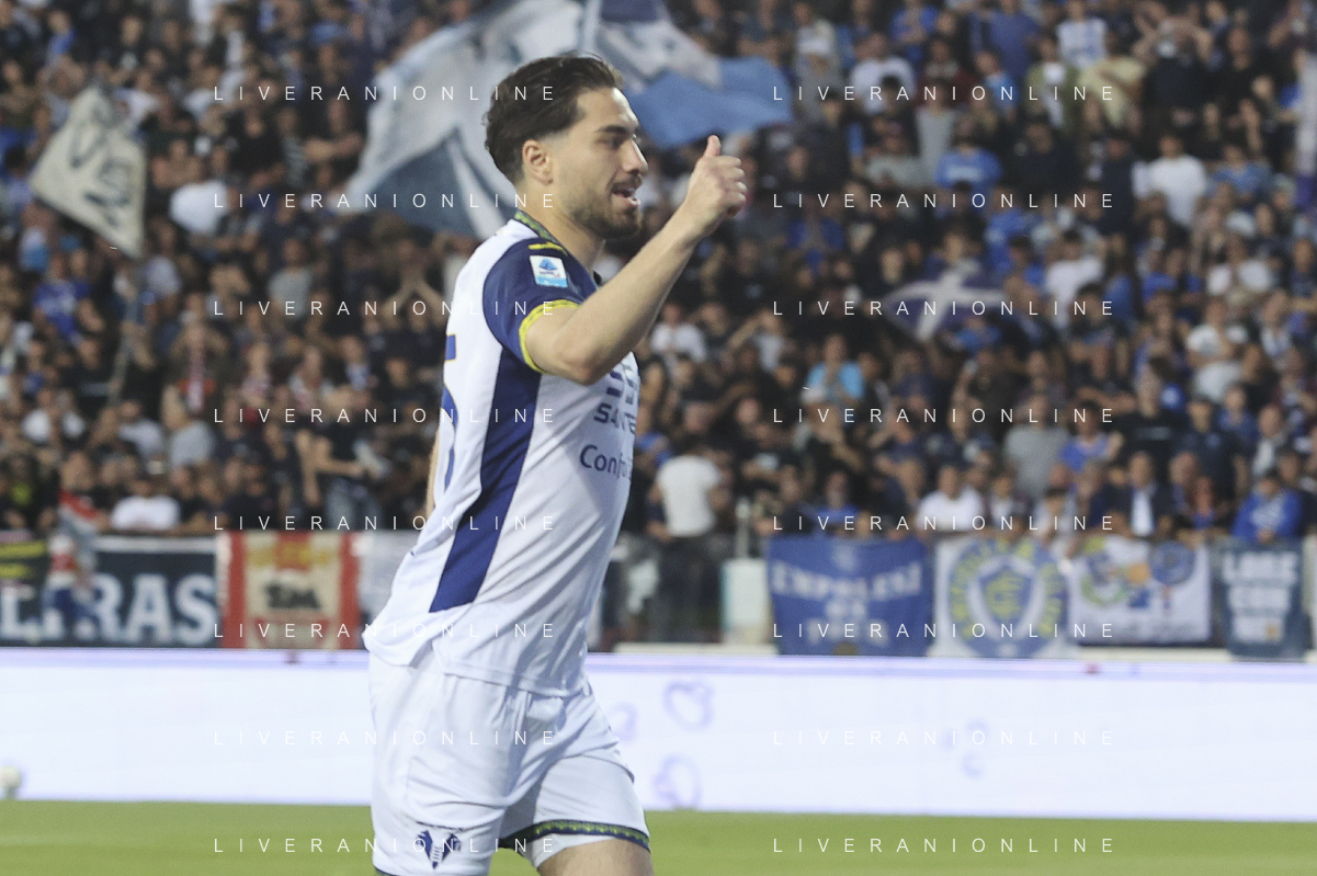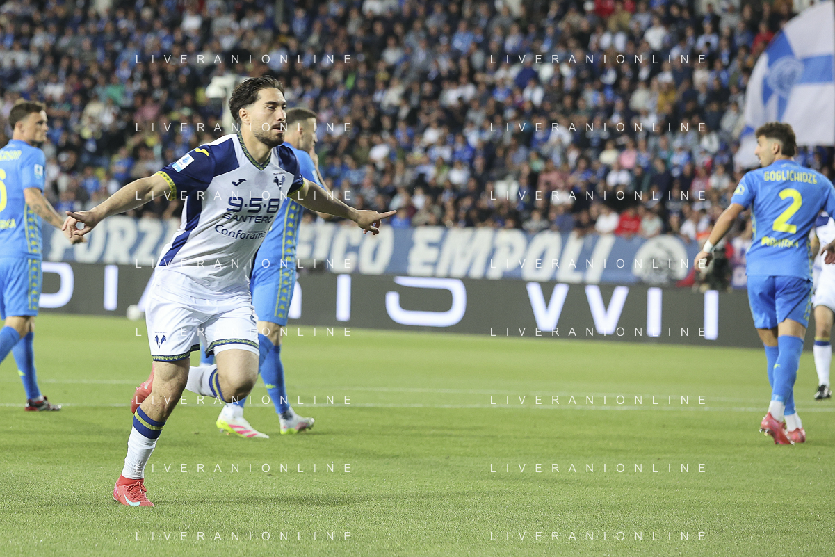 Domagoj Bradaric of Hellas Verona FC celebrates after scoring goal during Empoli FC vs Hellas Verona FC, 38° Serie A Enilive 2024-25 game at Carlo Castellani stadium in Empoli (FI), Italy, on May 25, 2025. (Photo by Davide Casentini) - AGENZIA ALDO LIVERANI SAS